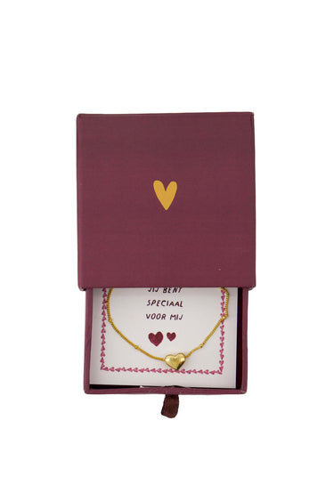 This Zusss bracelet with heart is a subtle gift with a lot of meaning. The fine gold bracelet is packaged in a cool red sliding box, perfect to surprise someone with. The golden heart makes this bracelet extra special and is a soft accent to any look. The luxurious look and the special box provide a warm presentation. With this Zusss bracelet with heart you give a basic but unique jewelry that can be worn stylishly.