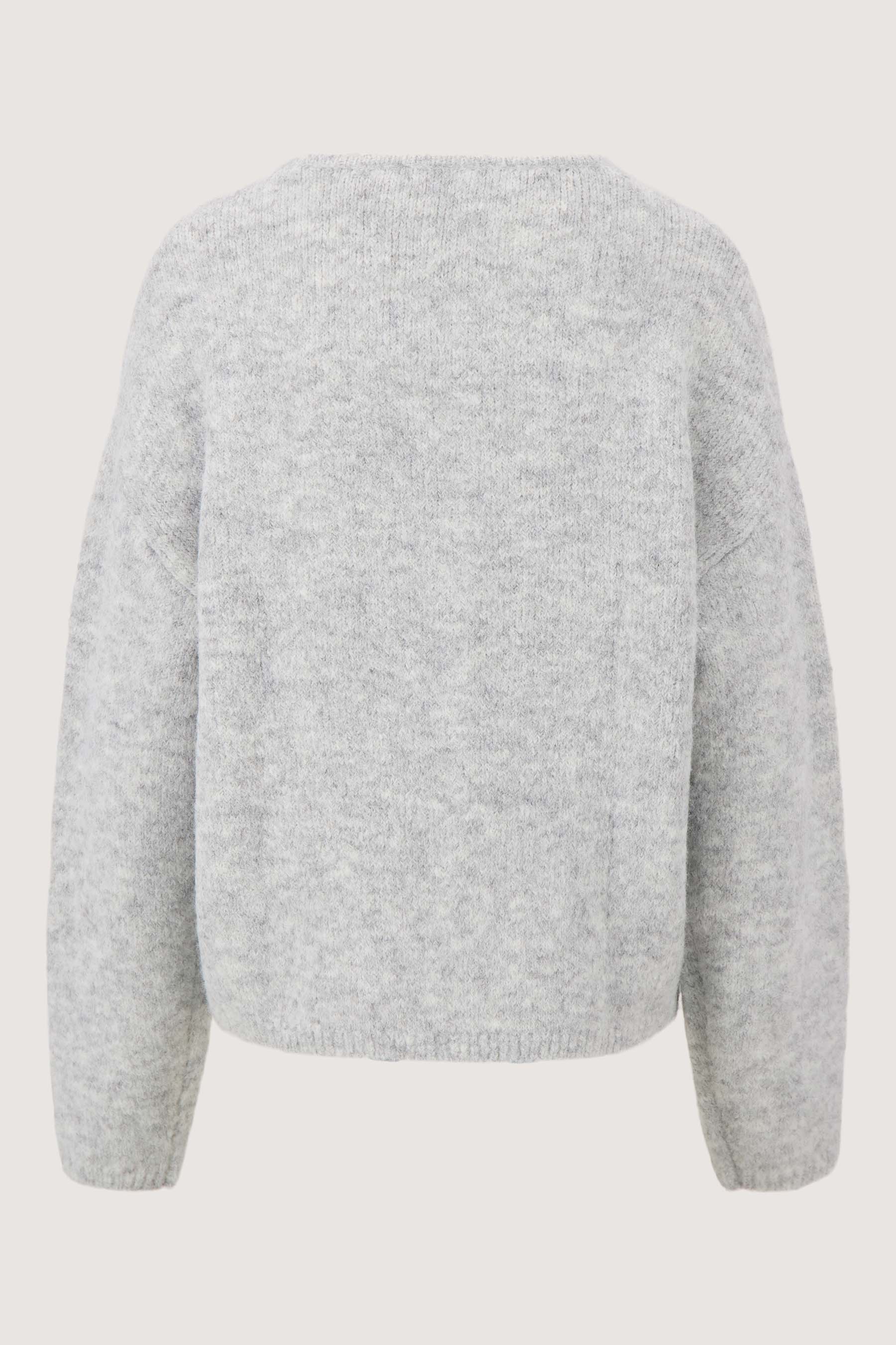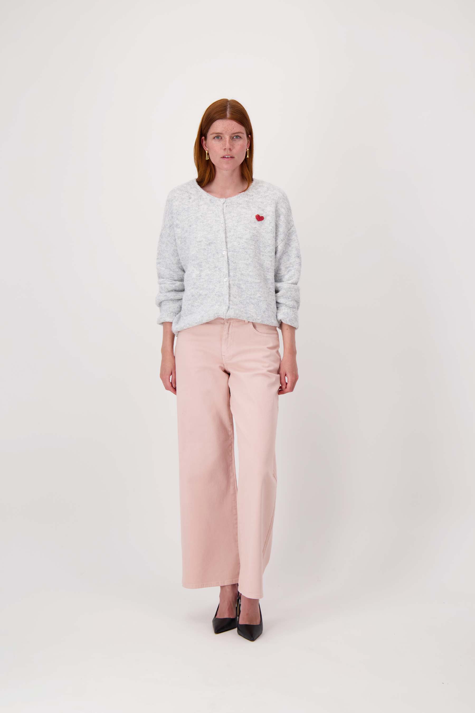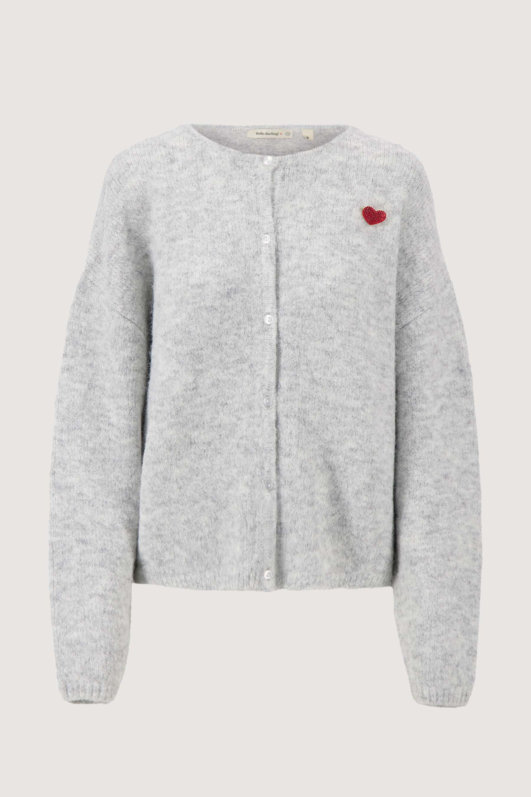 The Zusss basic long-sleeved cardigan is a perfect addition to your wardrobe. This long-sleeved cardigan is comfortable and has a soft, gray melange color. With a subtle button closure and a playful brooch, this cardigan adds that little bit of extra style. The basic long-sleeved cardigan from Zusss provides warmth and comfort on chilly days, without compromising on design. A versatile garment that you will enjoy wearing! Pair the cardigan with jeans to complete the outfit.