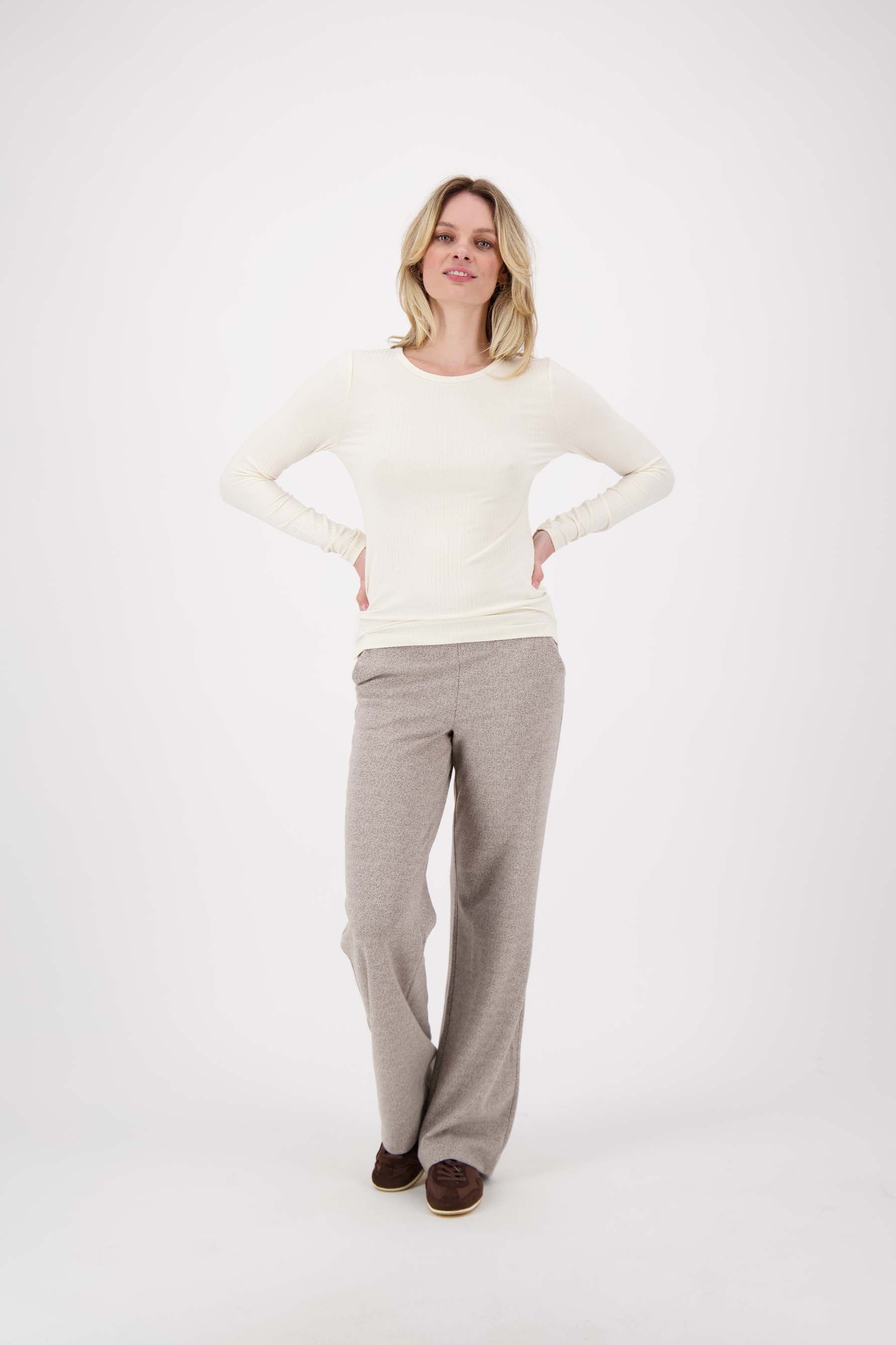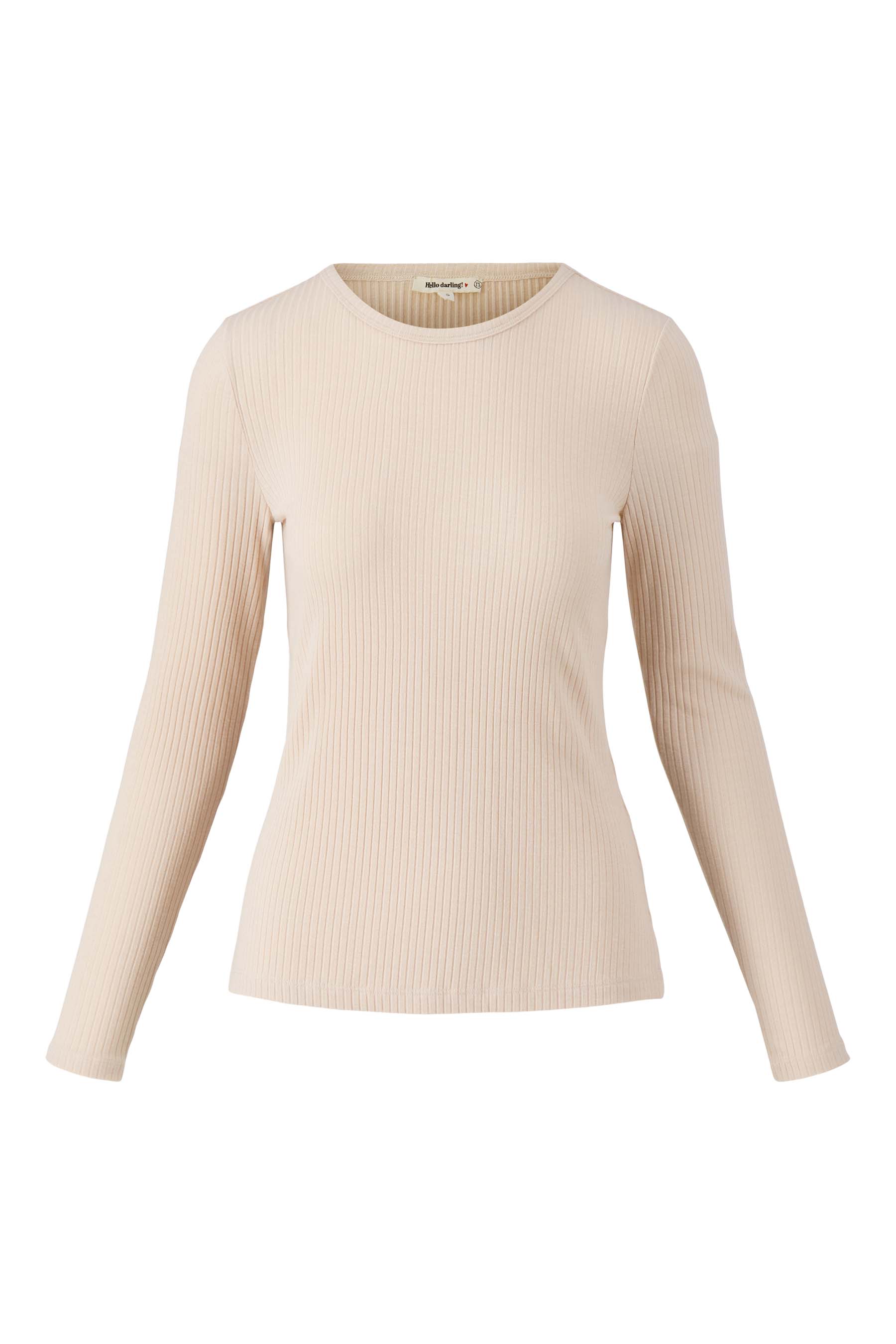 This basic rib top in modal from Zusss is perfect as a soft base in your wardrobe. The rib structure provides a subtle texture, while the beige color is easy to combine. Thank you to the fine fabric, the basic rib top of modal feels comfortable and natural on the skin. A top that you will enjoy for years and that you can style again and again with other Zusss items.