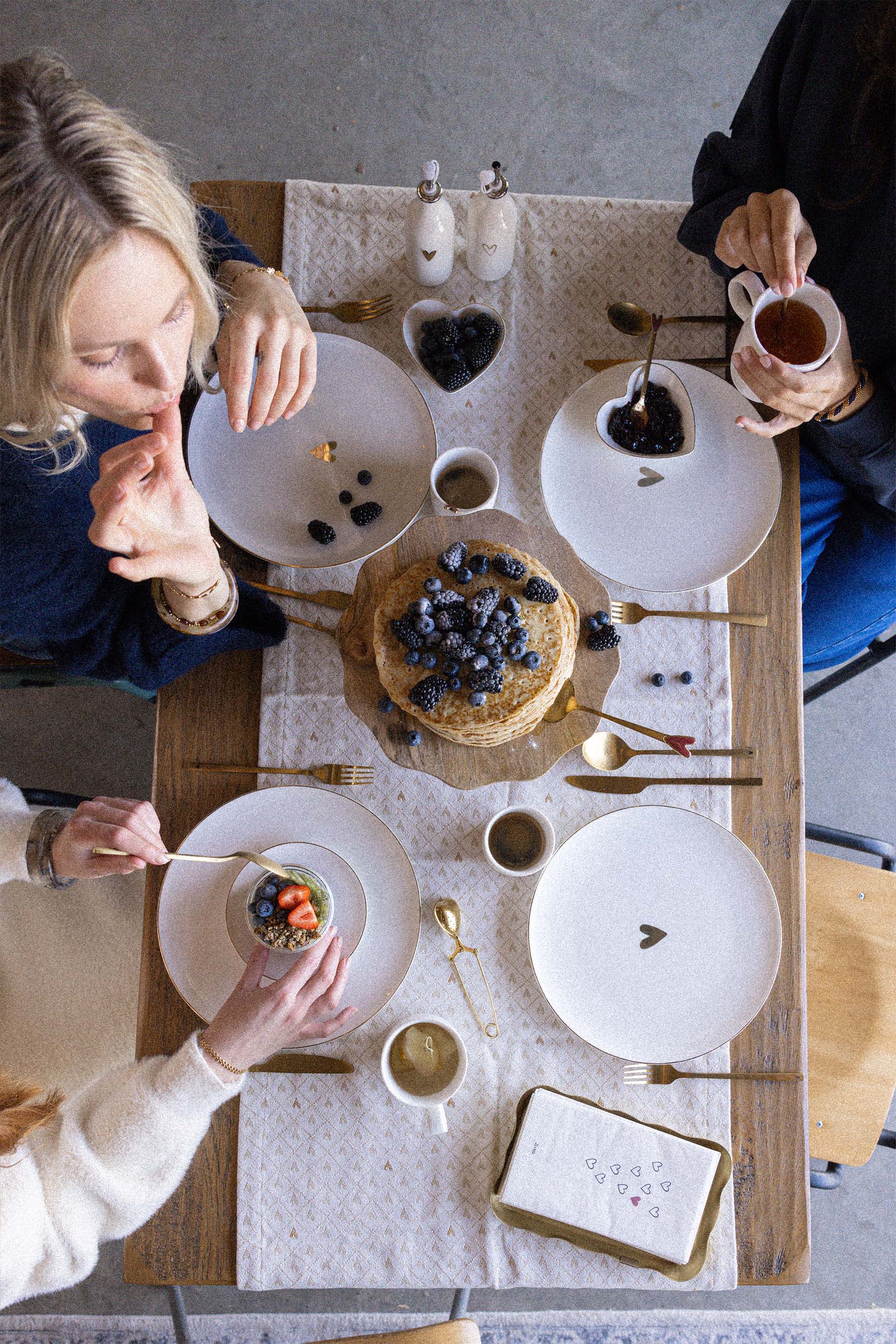 Look how cute. A 3-piece cutlery set from Zusss! This set includes a gold knife, spoon, and fork. The items are 21.5 cm long. A nice detail is the black heart at the bottom of the cutlery. Also great as a gift! The items are made of metal. Take a look at the Zusss tableware too!