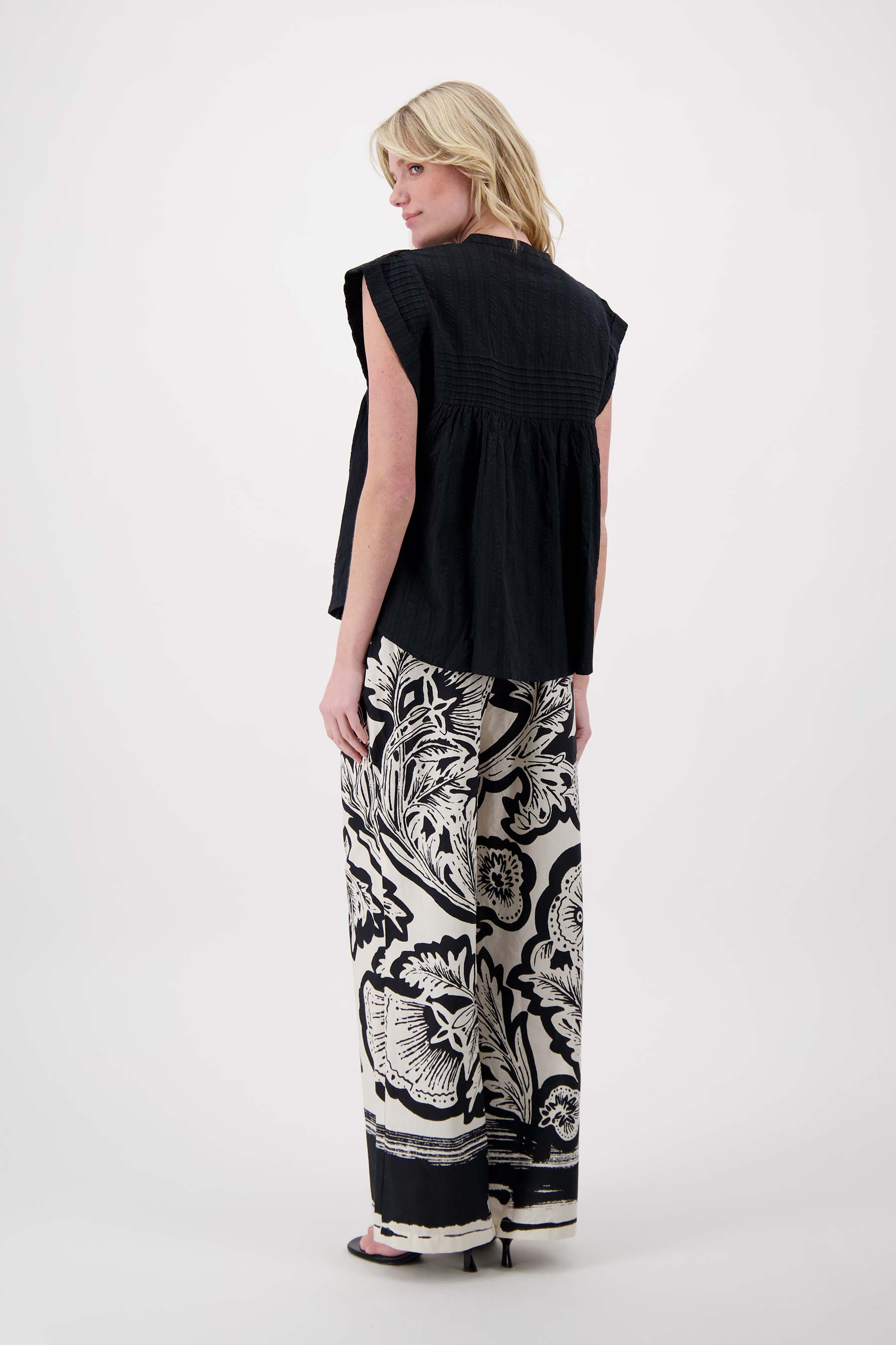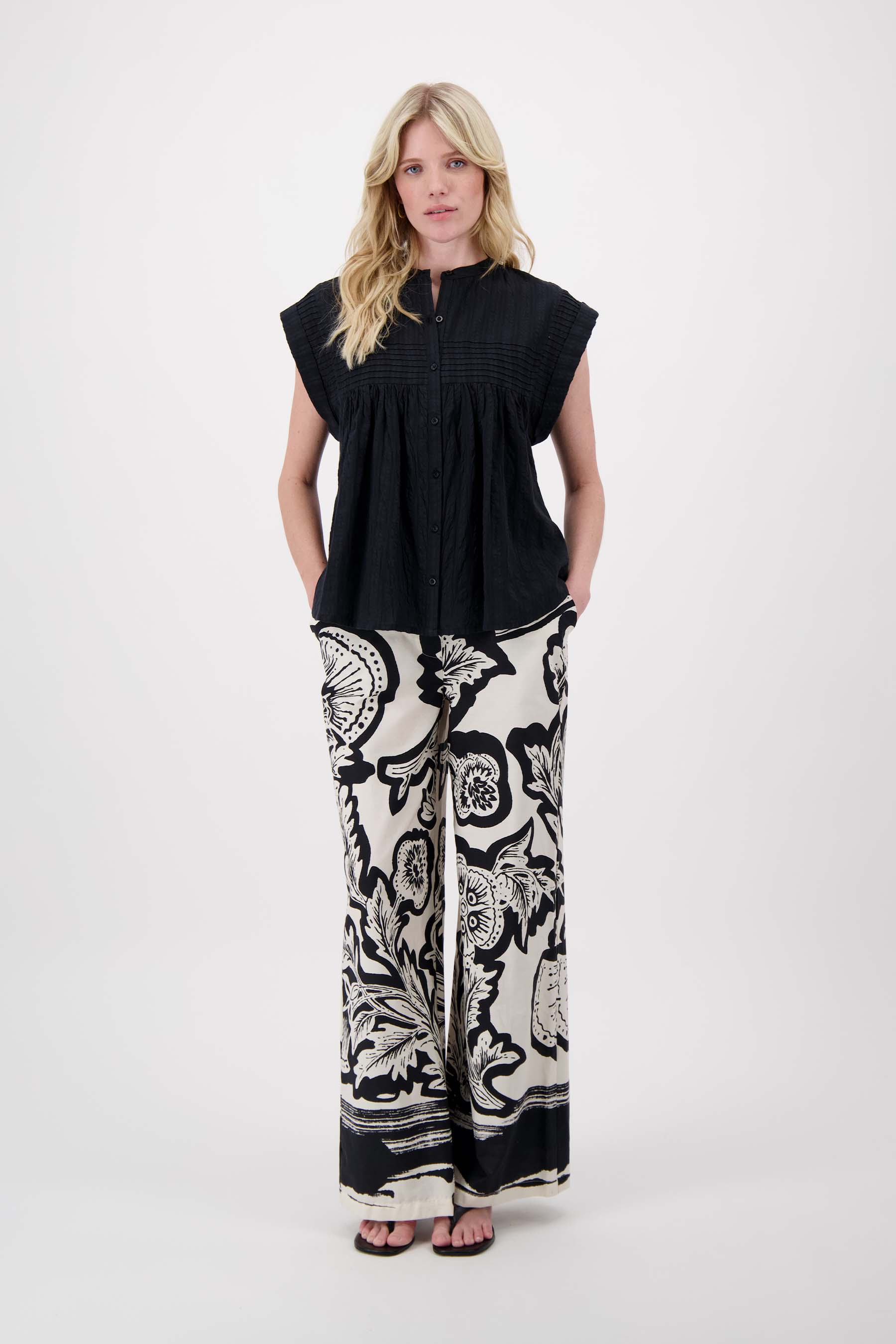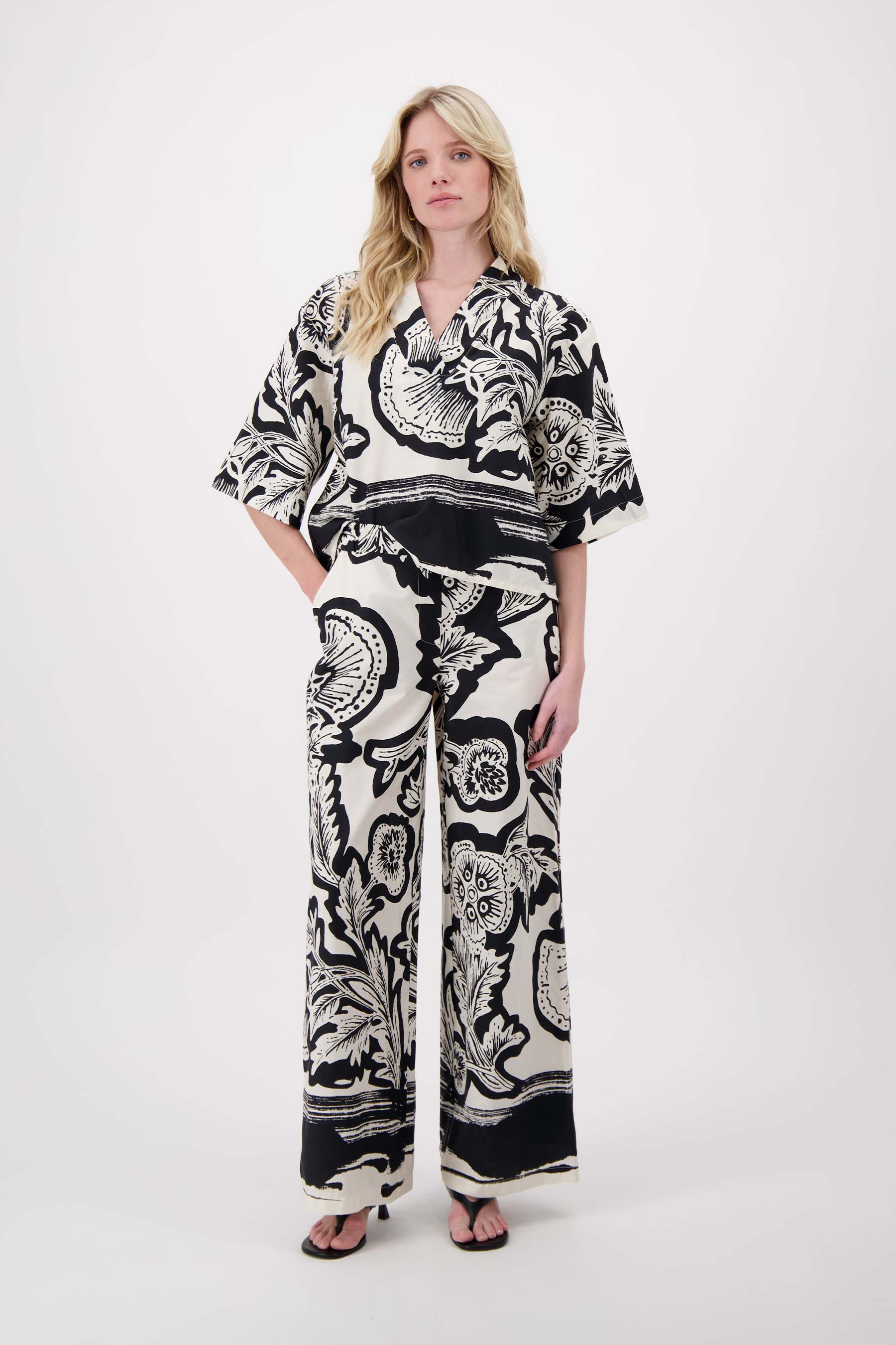 De Zusss broek met borderprint brengt unieke elegantie in je garderobe met een opvallend zwart-wit dessin. Deze broek met borderprint is ideaal voor wie houdt van een elegante, maar comfortabele uitstraling. Door de ruime pasvorm en het zachte materiaal beweegt de broek makkelijk mee, perfect voor zowel thuis als op kantoor. Het zwart-wit dessin geeft het geheel een moderne twist, waardoor combineren eenvoudig is. Maak jouw outfit compleet met deze bijzondere broek met borderprint voor een frisse uitstraling die net even anders is.