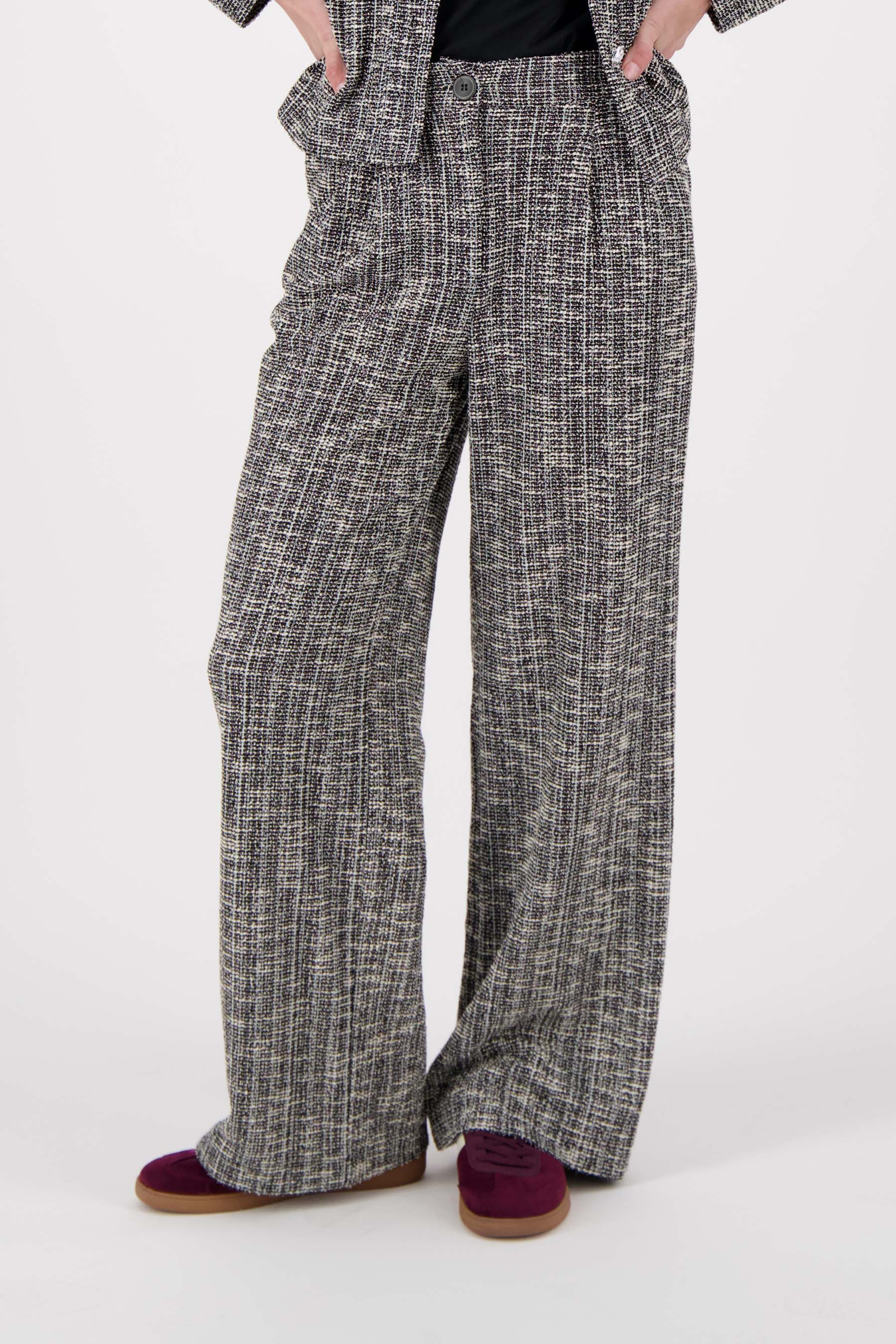 The Zusss pants made of tweed fabric are perfect for those who love a quiet, yet characterful style. These pants have a fine structure and a beautiful mid-gray color that is easy to combine. The roomy fit allows you to experience great comfort, while the subtle details add a quirky touch to your outfit. The tweed fabric pants are a versatile addition to your wardrobe that can be worn both casual and chic.