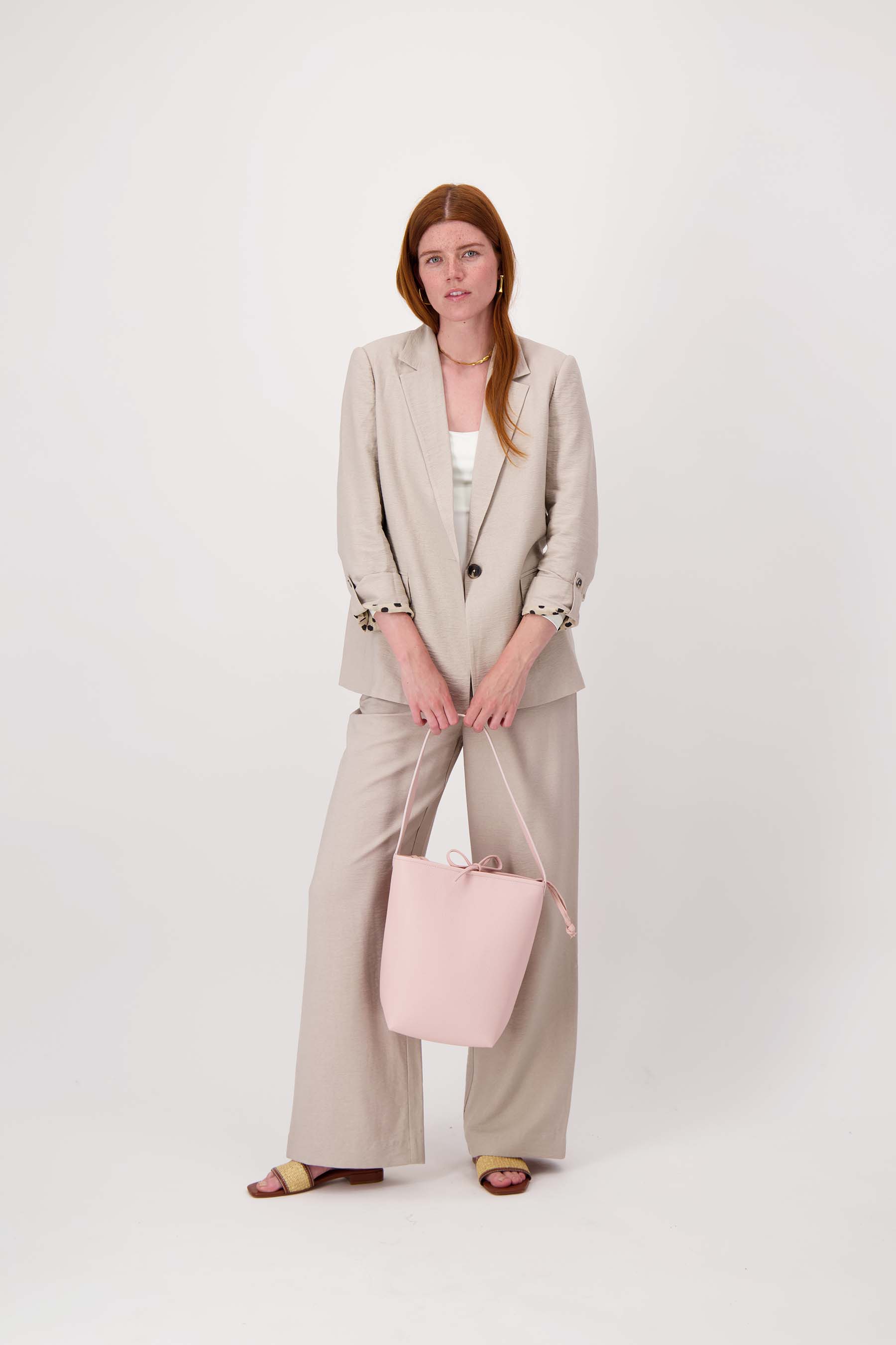 The Zusss bucket bag is a must-have for anyone looking for a stylish bucket bag. This bucket bag has a soft light pink color that looks subtle and fresh. The sleek design with a fine shoulder strap makes the bucket bag perfect for everyday use. Thanks to its spacious interior, the bucket bag offers enough room for all your essentials. Pair this bucket bag with your favorite casual pants or sweater to complete your look.