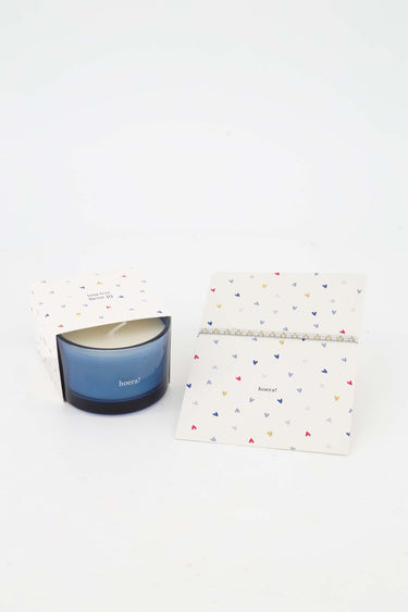 Deze geurkaars met ansichtkaart hoera van Zusss is een vrolijke cadeauset voor een feestelijk moment. De blauwe geurkaars zit in een stijlvol glazen potje met de tekst ‘hoera!’ en wordt gecombineerd met een bijpassende ansichtkaart met subtiele hartjesprint. Perfect om iemand mee te verrassen. De geurkaars met ansichtkaart hoera is ideaal voor een verjaardag, mijlpaal of andere bijzondere gelegenheid. Schrijf een persoonlijke boodschap op de kaart en maak het cadeau extra speciaal. Een kleine attentie met een groots gebaar. Combineer met items uit onze gifts collectie voor een compleet pakket.