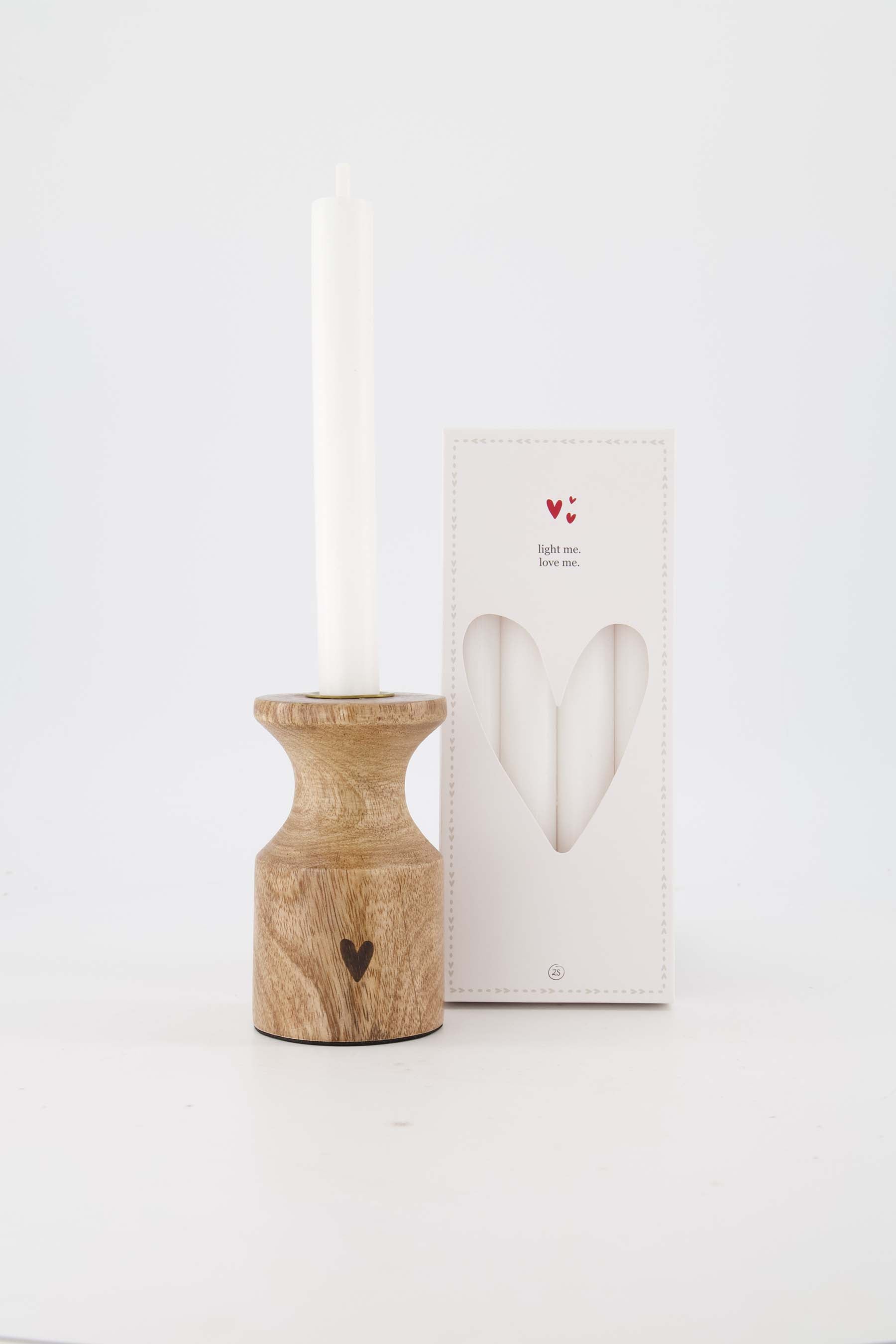 Kandelaar hout van Zusss zorgt voor een warme, natuurlijke sfeer in huis. Deze kandelaar hout is gemaakt van licht hout en heeft een subtiel hartje aan de voorzijde. De set wordt geleverd met een witte dinerkaars in een verpakking met de tekst “light me. love me.”, waardoor deze kandelaar hout ook perfect is om cadeau te geven. Zet de kandelaar hout op tafel, in de vensterbank of combineer met items uit onze home decor en wind lights & candles collectie.