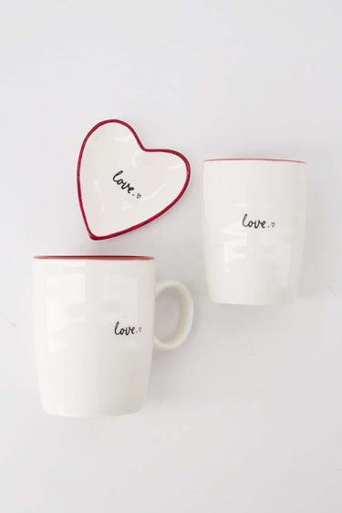 The Zusss gift set love stands out with its contemporary design and loving details. This gift set love consists of two white mugs and a heart-shaped dish with a playful red border and the word 'love' subtly placed. Perfect to start your morning feeling warm or to give as a gift to someone special. The combination of white and red makes this gift set love extra special and timeless. Add a touch of Zusss style to your daily ritual and check out our other beautiful dinnerware collections.