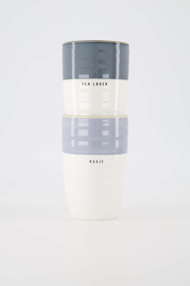 Deze set van 2 mokken L tea lover kusje van Zusss is perfect voor wie houdt van een extra grote kop thee of koffie. De ene mok L heeft de tekst tea lover, de andere kusje. De combinatie van wit met zachte blauwtinten geeft de mokken een frisse en rustige uitstraling die in ieder interieur past. De set van 2 mokken L tea lover kusje is ideaal voor lange theemomenten of een royale cappuccino. Dankzij het grotere formaat geniet je nog langer van je favoriete warme drank. De subtiele kleurverschillen zorgen voor een speels maar harmonieus duo. Ook leuk om cadeau te geven. Combineer met items uit onze kitchen & dining room collectie voor een complete tafelsetting.