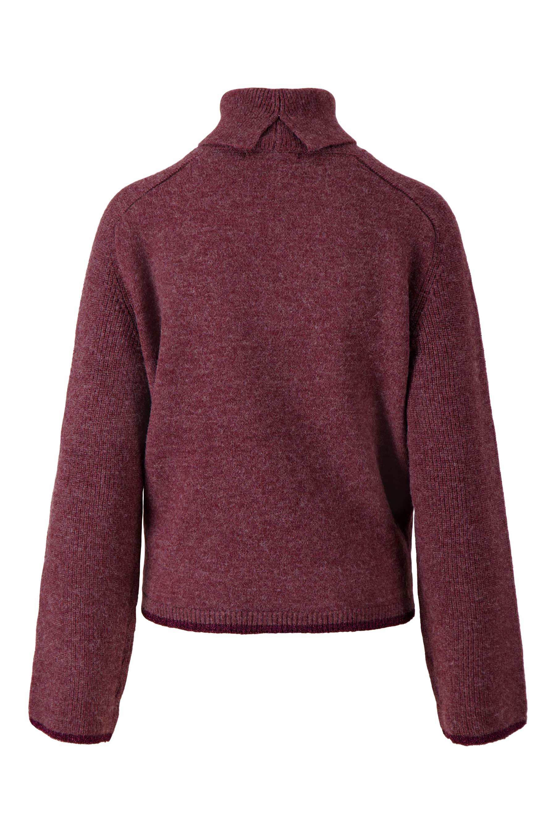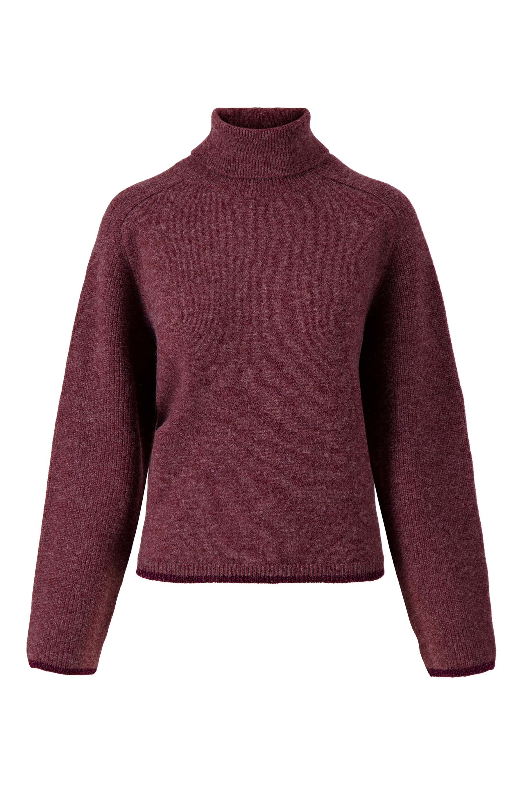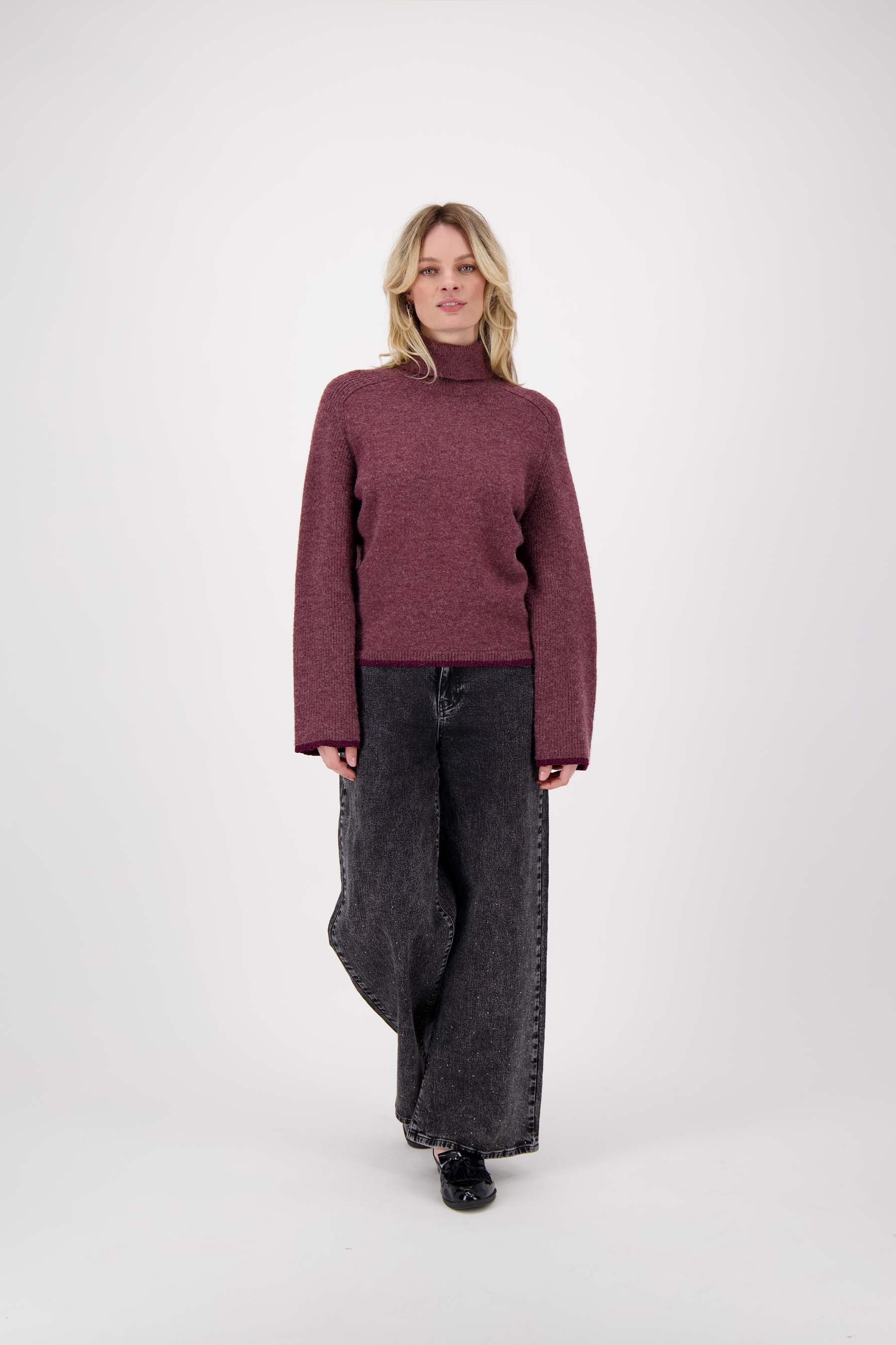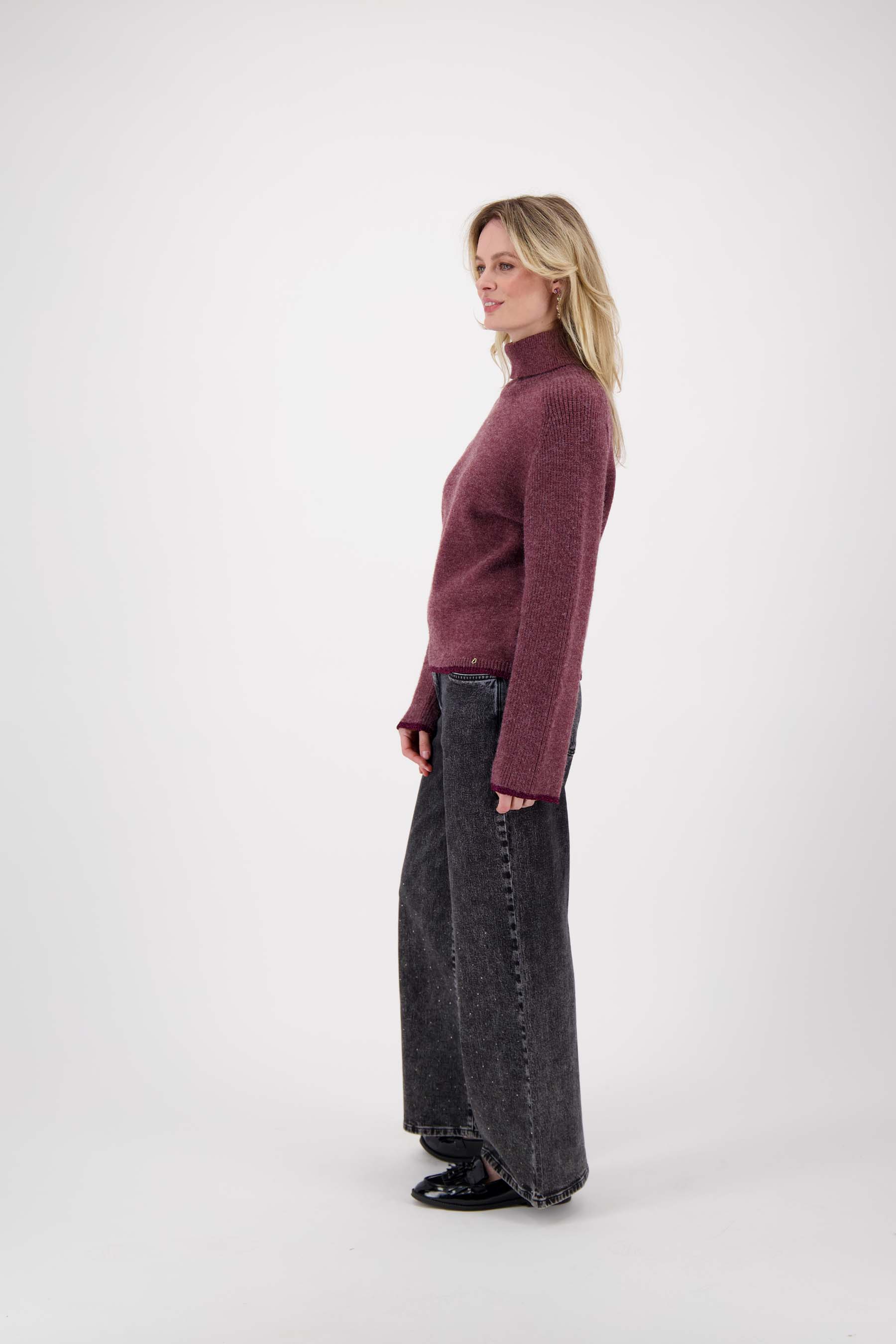This Zusss turtleneck with colored border is ideal for those seeking warmth and comfort. The turtleneck comes in a soft eggplant shade, which is easy to combine with your favorite jackets and pants. The subtle colored border makes this sweater a little different from the rest. With a fine fit and a soft fabric, this turtleneck is a fine base in your wardrobe this fall and winter.