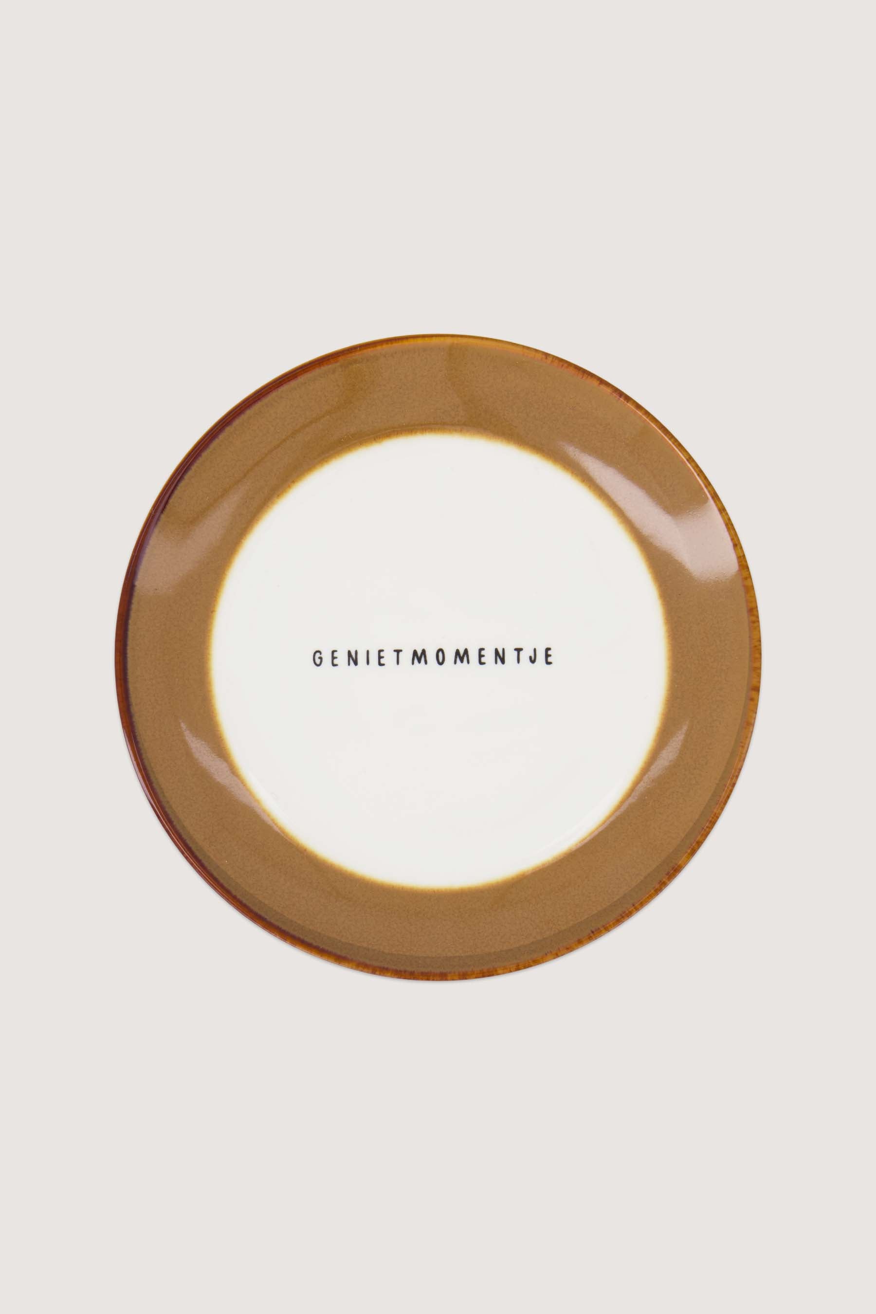 Het Zusss gebaksbordje genietmomentje brengt warmte aan je tafel met zijn natuurlijke look. Dit gebaksbordje, met een zachte witte binnenkant en een warme bruine rand, nodigt uit tot een rustmomentje met iets lekkers. Het bordje is ideaal voor wie bewust even stopt om te genieten. Dankzij de simpele, maar stijlvolle tekst ‘genietmomentje’ op het bord, is het elke keer een kleine reminder. Perfect voor thuis, bij een kopje koffie of thee. Een subtiel en charmant gebaksbordje dat net dat beetje extra sfeer toevoegt aan je genietmomentje.