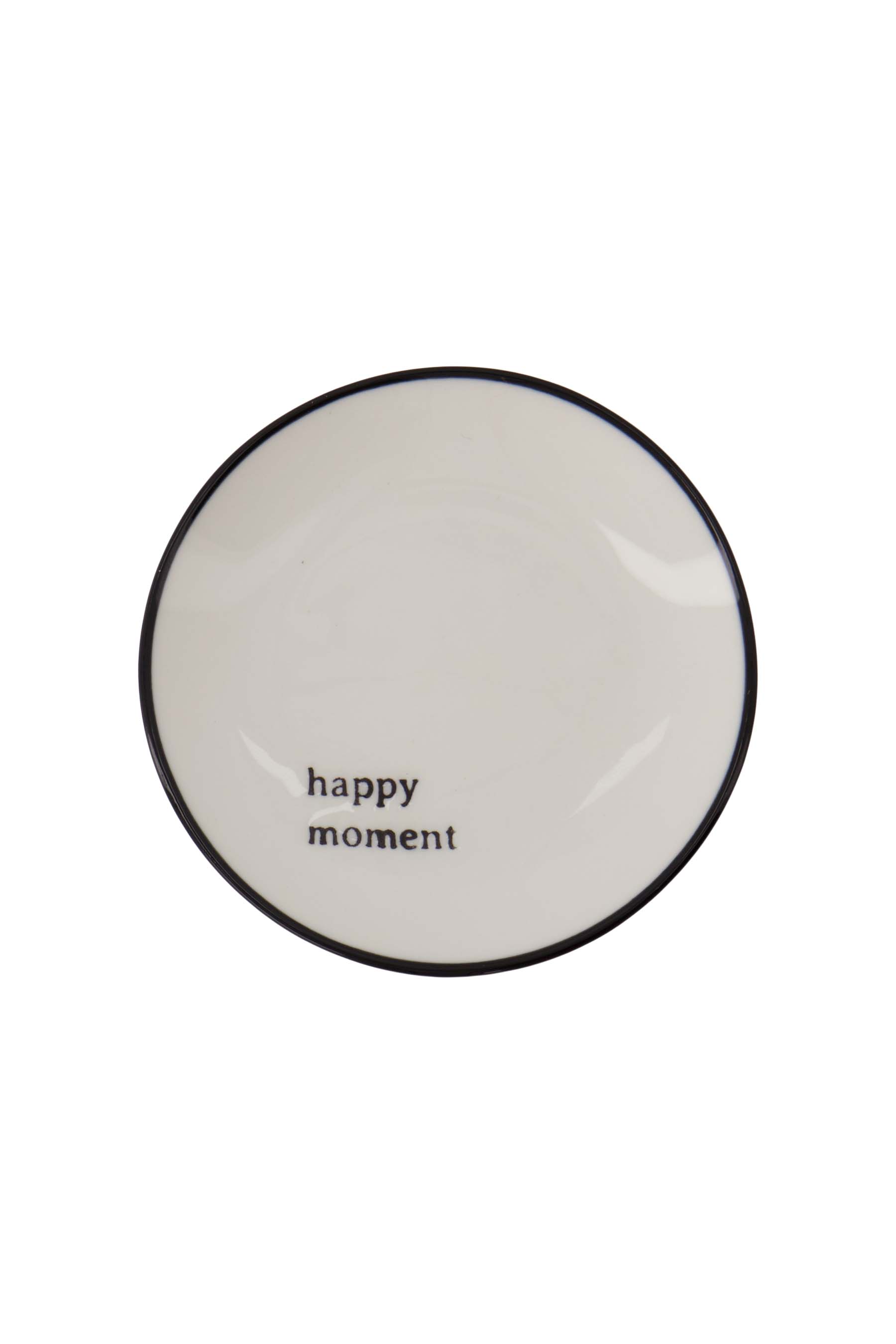 This Zusss ceramic cake plate is perfect for your happy moments. The cake plate, made of sturdy ceramic, has a nice size of ø16 cm. The white color with a subtle black rim and the text 'happy moment' makes every coffee break special. Enjoy your snack on this charming cake plate, which has been carefully designed for the best Zusss moments. Combine the cake plate with one of our glassware cutlery items.