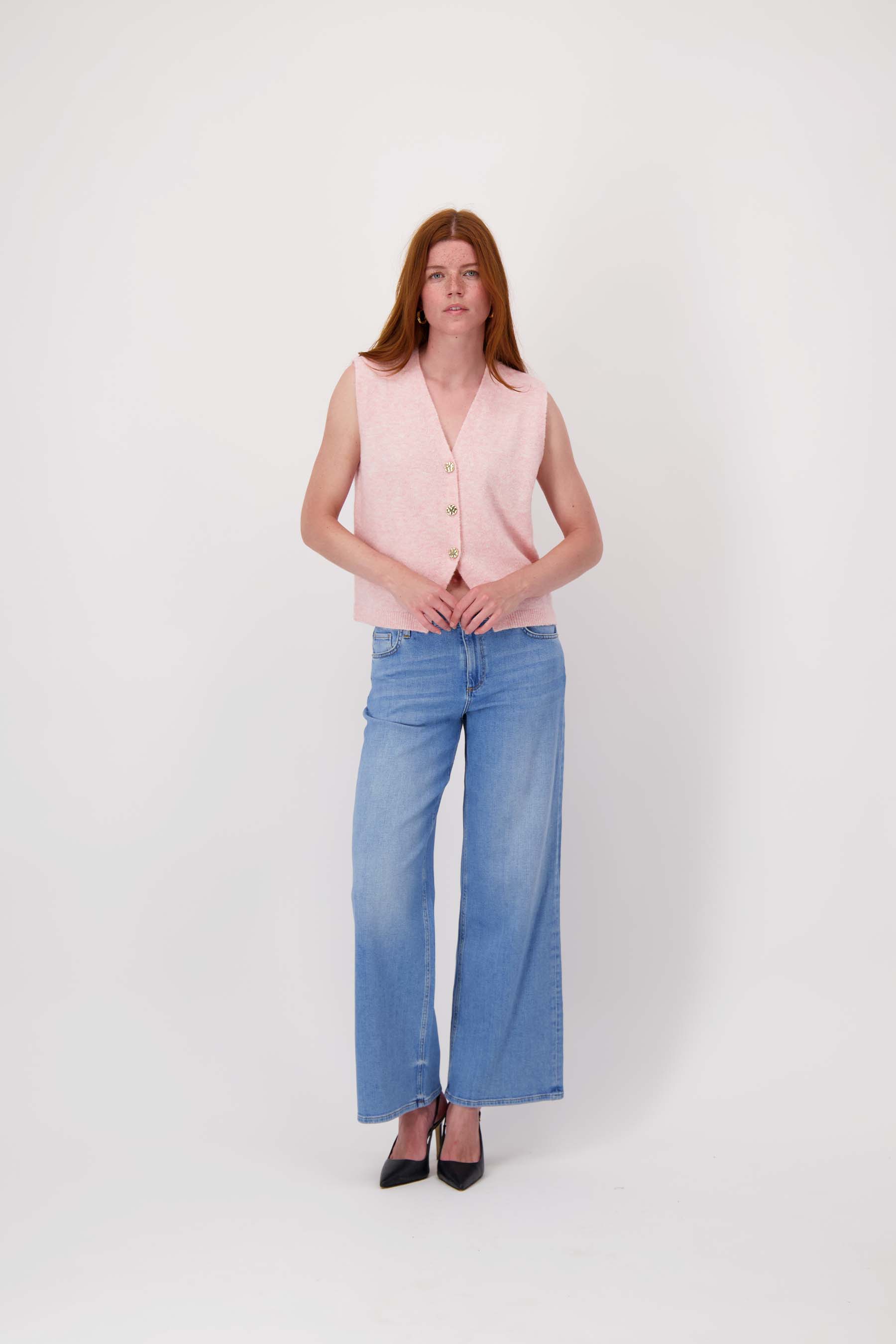 The Zusss knitted cardigan with buttons is the perfect addition to your wardrobe. This knitted cardigan combines comfort and style thanks to its soft, pink material and fun, eye-catching buttons. The cardigan falls just above the waist and has a beautiful V-neck, making it a versatile garment. Wear the cardigan over a blouse or T-shirt for a playful and trendy look.