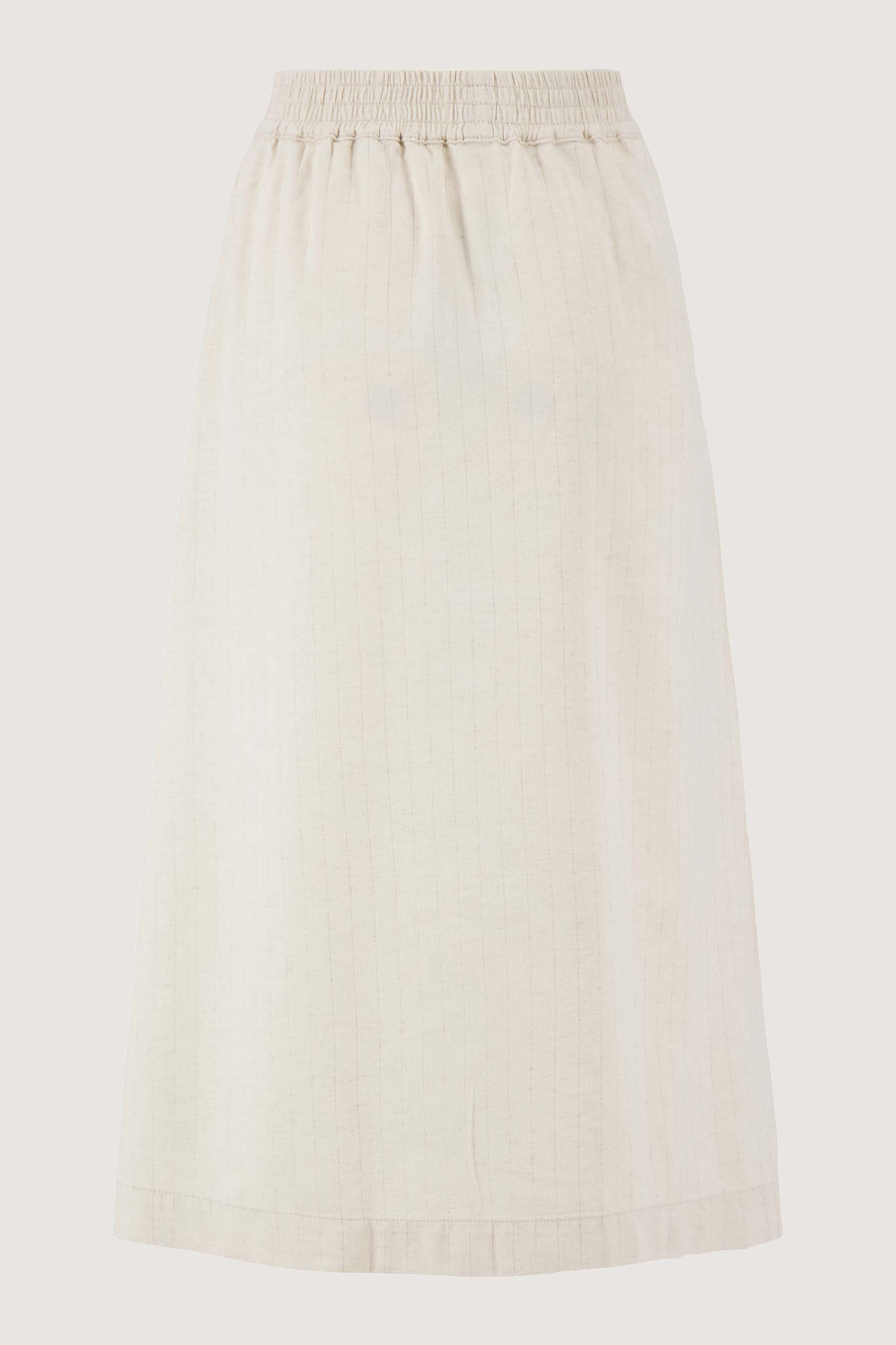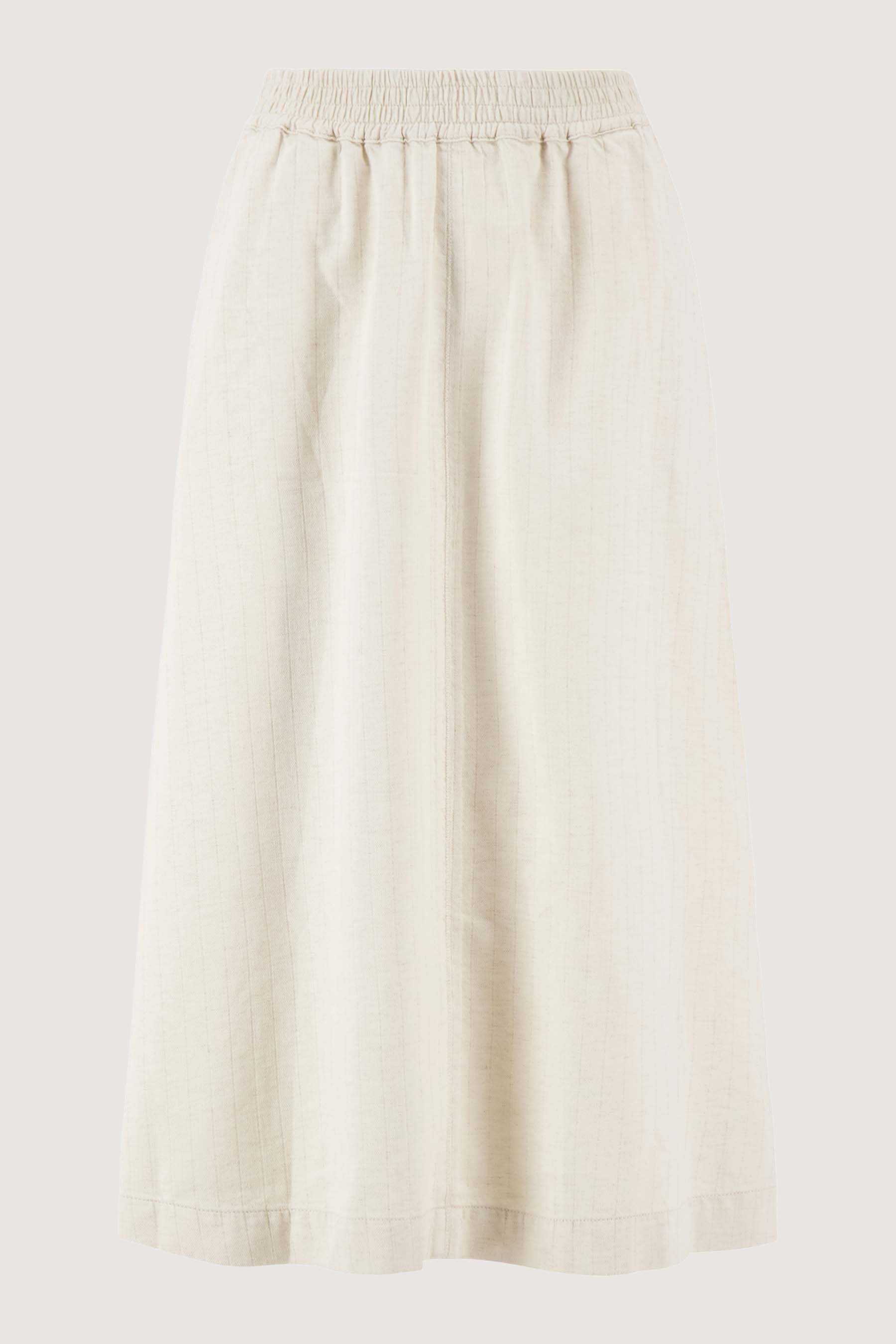 De Zusss wijde rok is een perfecte toevoeging aan je lente- en zomergarderobe. Deze rok heeft een subtiele gestreepte print die elegant en rustig oogt. Met een zachte kitkleur past de rok eenvoudig bij diverse tops en accessoires. De elastische taille zorgt voor een comfortabele pasvorm, terwijl de wijde snit vrijer draagt voor een luchtige look. Draag deze rok met een basic t-shirt of een fijne trui voor een complete, casual outfit vol gemak en stijl.