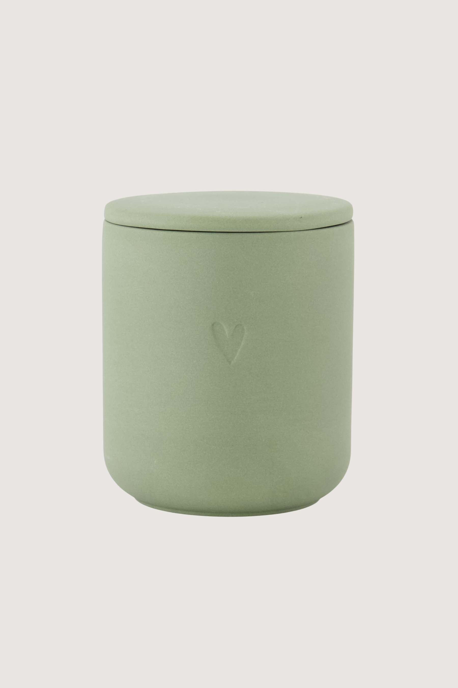 De Zusss geurkaars keramiek brengt met haar zachte groene kleur een warme sfeer in huis. Deze geurkaars is verpakt in een mat keramieken potje met een subtiel hartje als detail, wat het een charmant en stijlvol accessoire maakt. De Zusss geurkaars keramiek geeft niet alleen een aangename geur af, maar ook een sfeervol licht dat perfect is voor ontspanning of een gezellig moment. Doordat de kaars in keramiek zit, blijft de geur langer behouden en is het een duurzame keuze voor fijne avonden thuis.