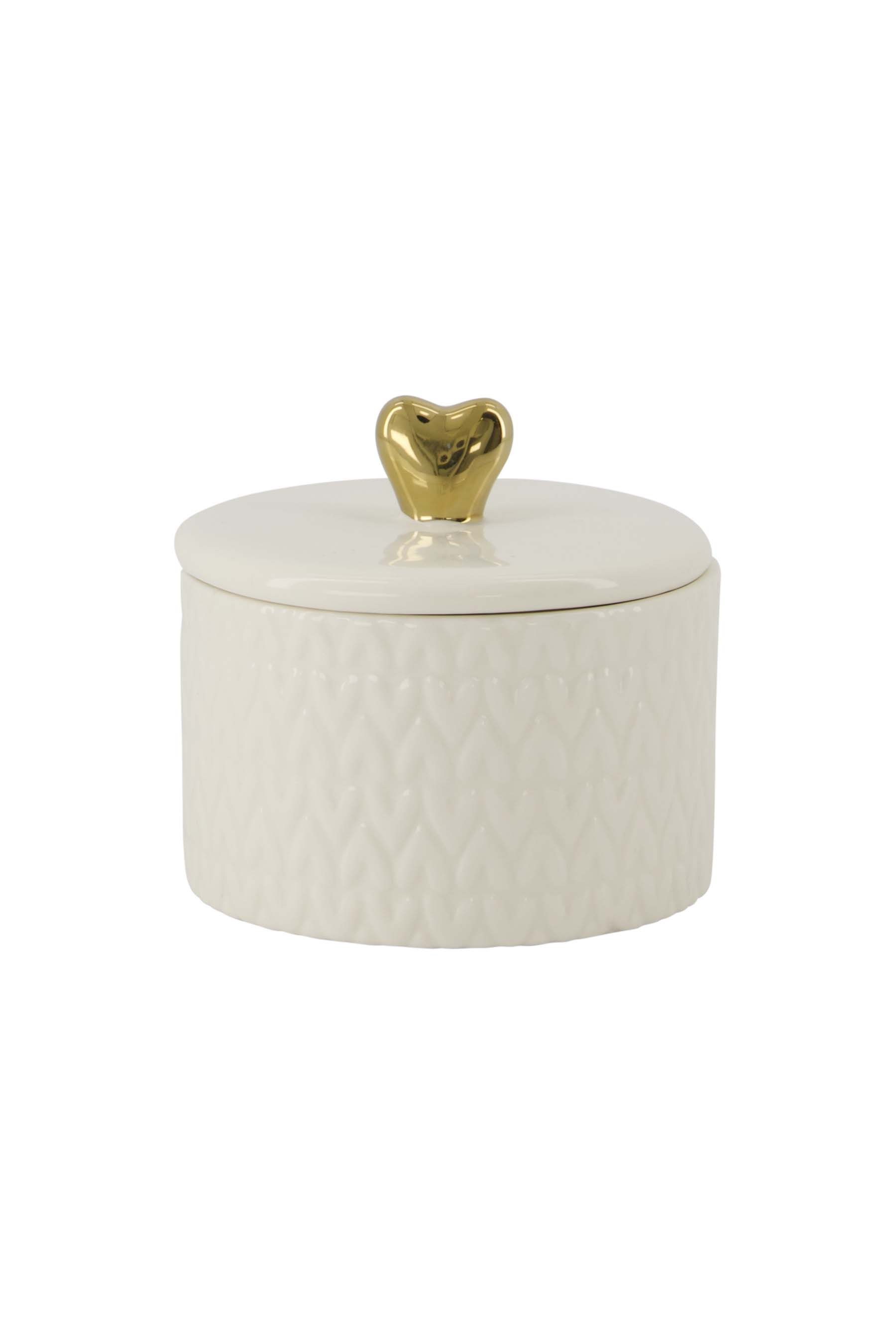scented candle ceramic with lid heart S white/gold