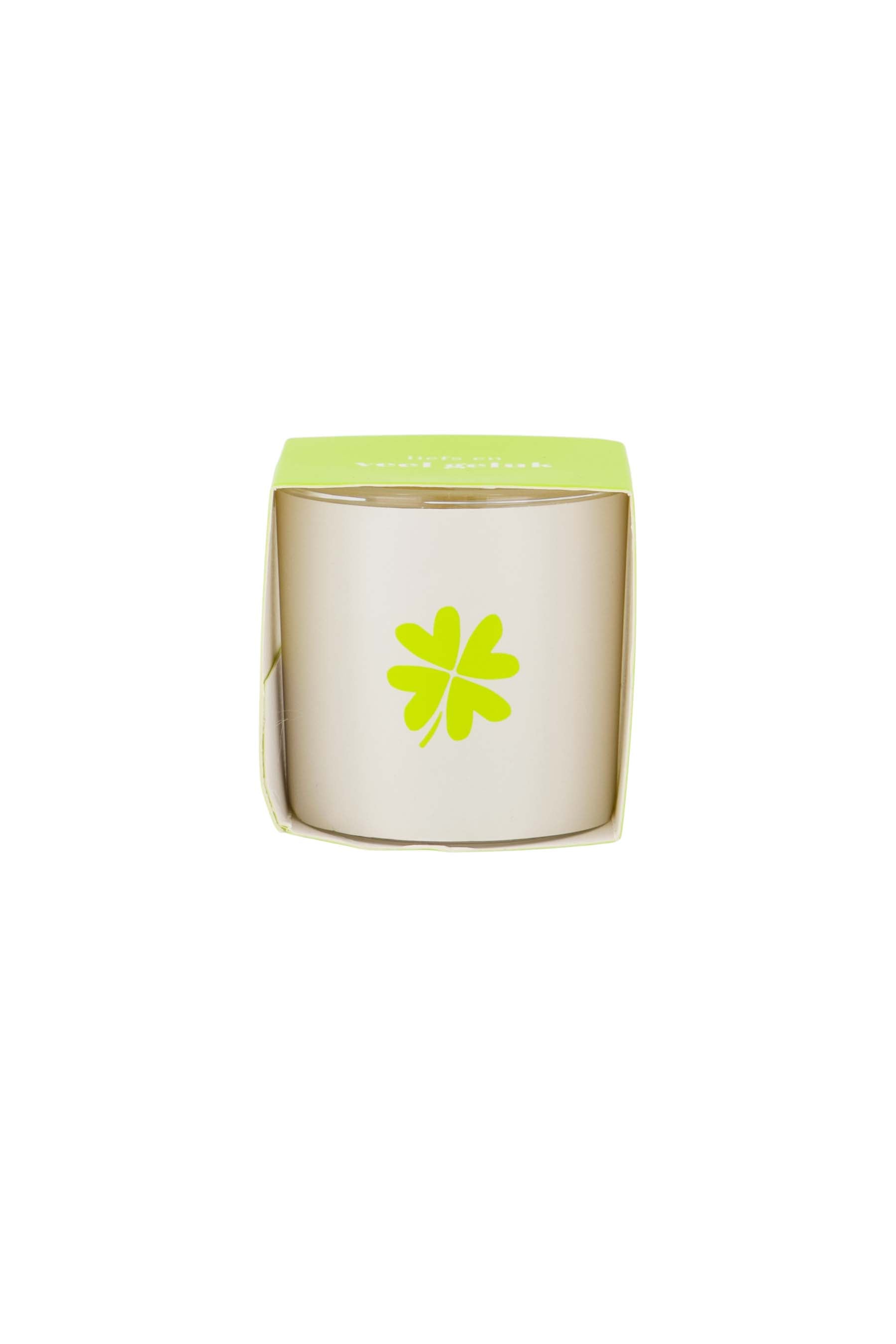 The Zusss scented candle brings warmth and happiness to your living room. This scented candle exudes simplicity with a white glass decorated with a fresh green clover. The scented candle fits perfectly in the category of scented candles and creates a cozy, calming atmosphere. With this Zusss scented candle you create a moment of relaxation and happiness in your home, ideal for any living space.