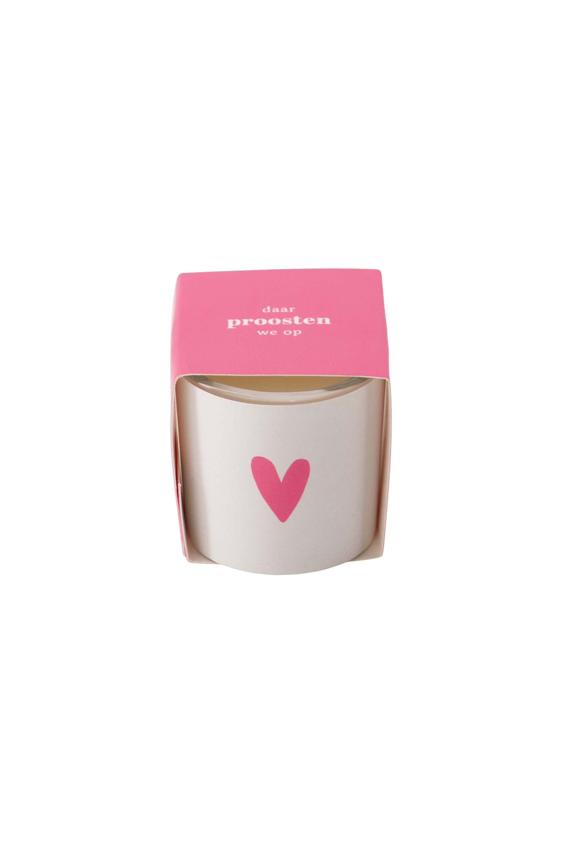 The Zusss scented candle brings warmth and coziness to any space. This scented candle has a stylish white packaging with a playful pink heart and a cheerful wrapper that says "toasting". It is made to make moments extra special, for example during a relaxing evening or a special occasion. The color white and pink creates a soft look that fits well in a home atmosphere. With the Zusss scented candle you can easily create a wonderful scent and atmosphere in your home.