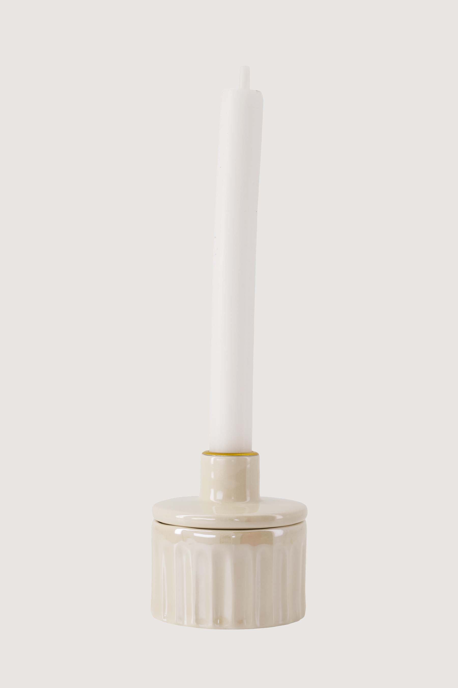 The Zusss ceramic mother-of-pearl ribbed candle holder with lid is a stylish eye-catcher for any interior. This candle holder is made of high-quality ceramic with a mother-of-pearl finish in a soft sand color. The ribbed design combined with a subtle gold rim gives it a unique and elegant look. With its compact size, this candle holder fits perfectly on tables and sideboards. Combine the ceramic candle holder with one of our candles to complete the look.