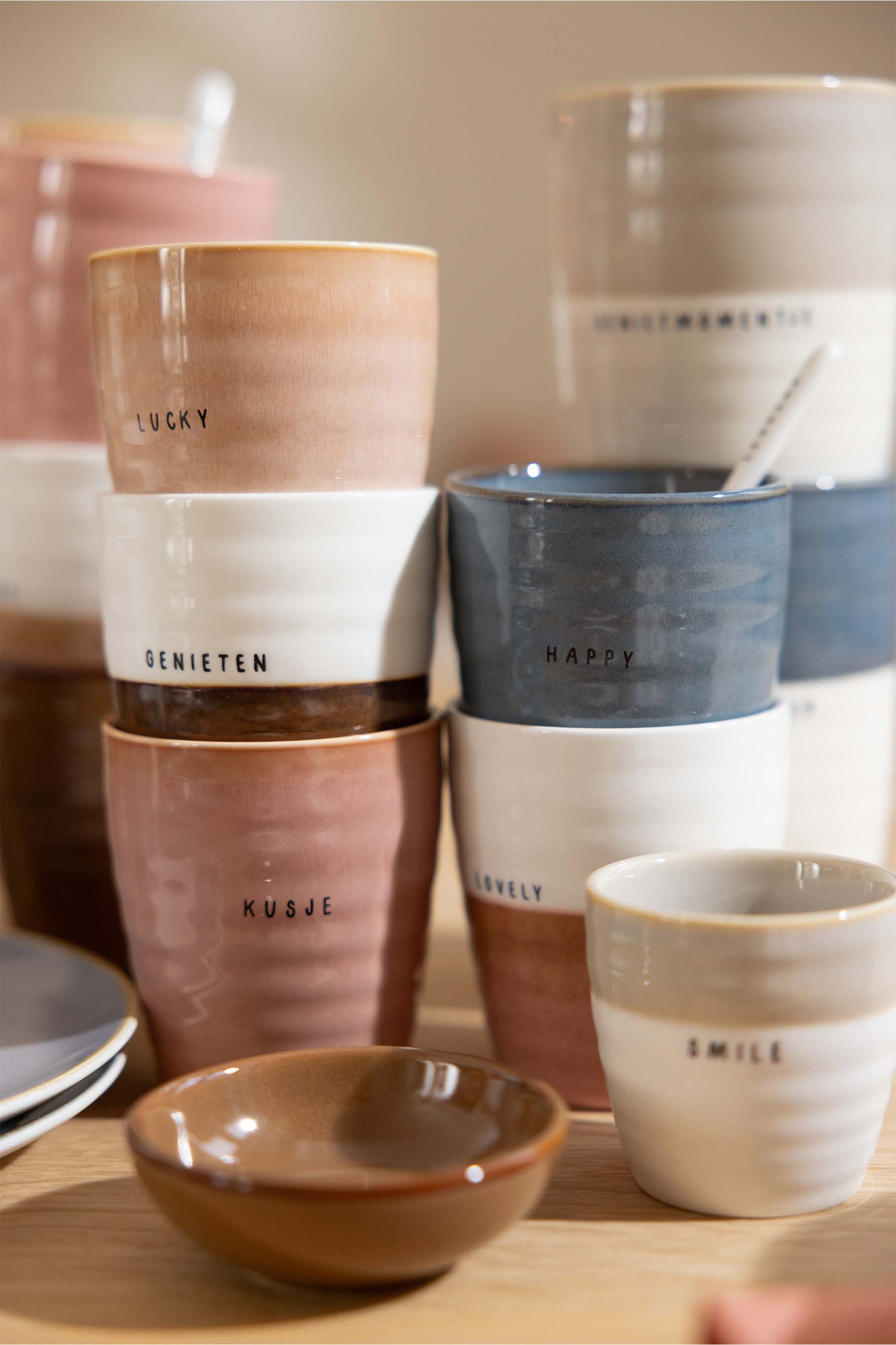 The Zusss pink coffee mug is a must-have for anyone who enjoys a nice coffee break. This coffee mug combines functionality with a warm, soft pink color and is made of high-quality ceramic. With a capacity of 250 ml, this coffee mug is perfect for a cup of coffee or tea. The mug has a subtle wavy design and features the text "LUCKY" for a cheerful touch. Discover more in our plates and bowls collectionand complete your tableware set.