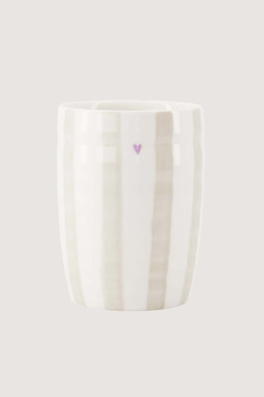 The Zusss coffee mug is perfect for those who love a stylish coffee mug. This coffee mug with stripes and a heart combines contemporary design with functionality. Made of ceramic, the mug shines in a beautiful white color with sand-colored stripes and a subtle lilac-colored heart. With a compact size of 8x7 cm, it fits comfortably in your hand and goes well with the rest of your Zusss tableware. Discover more matching items in our kitchen textile collection and enjoy your favorite coffee with this special Zusss coffee mug.