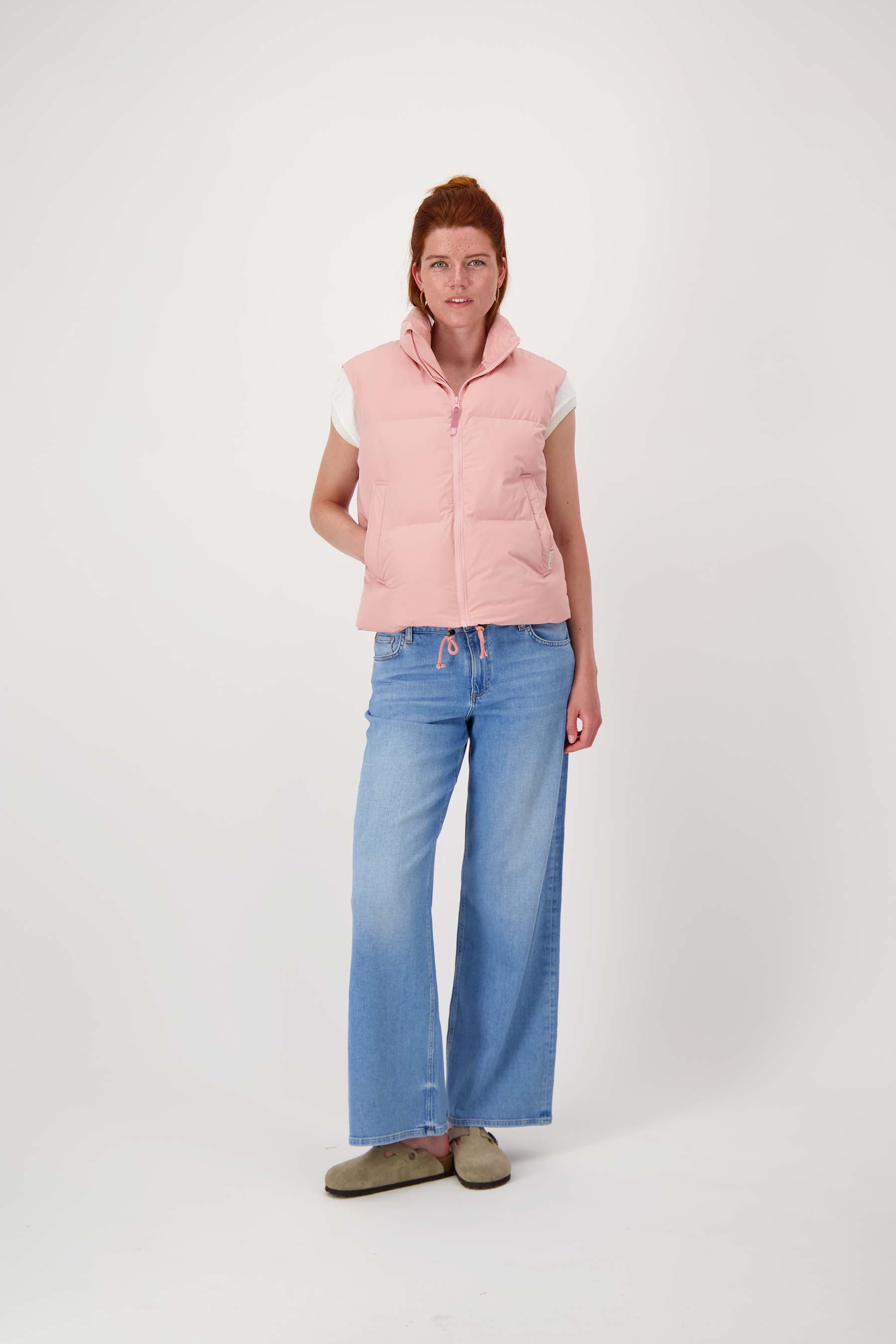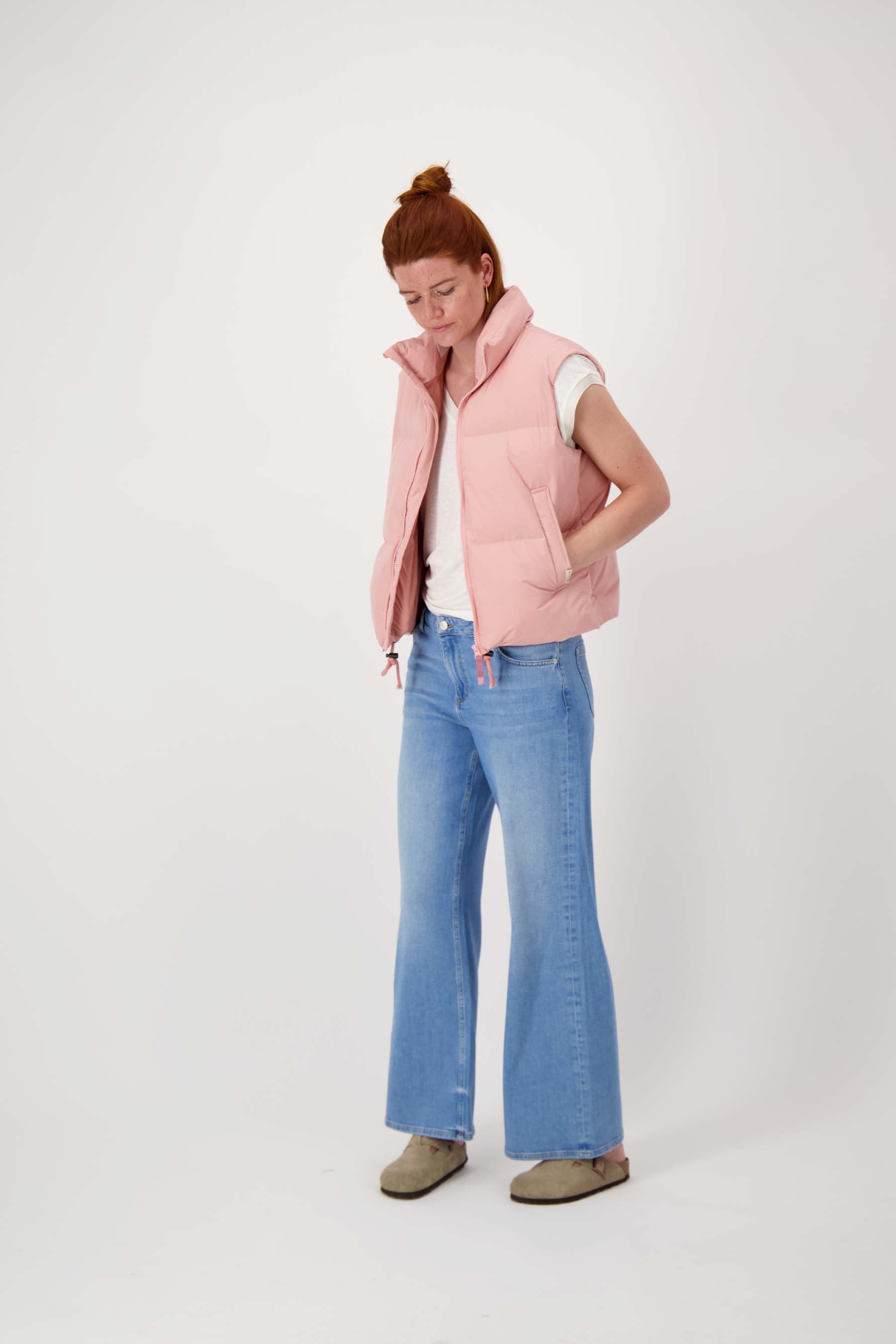 The Zusss short body warmer is a must-have for chilly days. This body warmer, in a soft light pink color, combines comfort with a fashionable look. Thanks to its thick, crinkled padding, the short body warmer provides wonderful warmth without feeling too heavy. With a feminine fit and handy pockets, this body warmer is ideal for completing your layered look. Easily combine it with your favoritecoats for a stylish, warm look. Add this light but warm body warmer from Zusss to your wardrobe for a casual and trendy season!