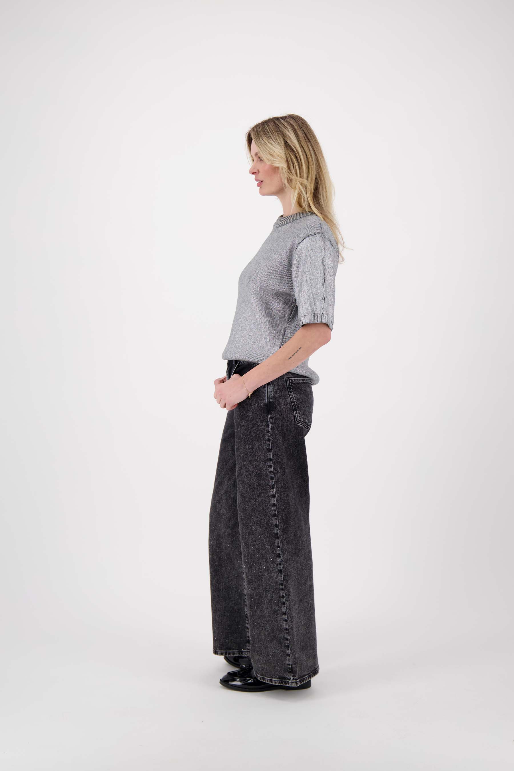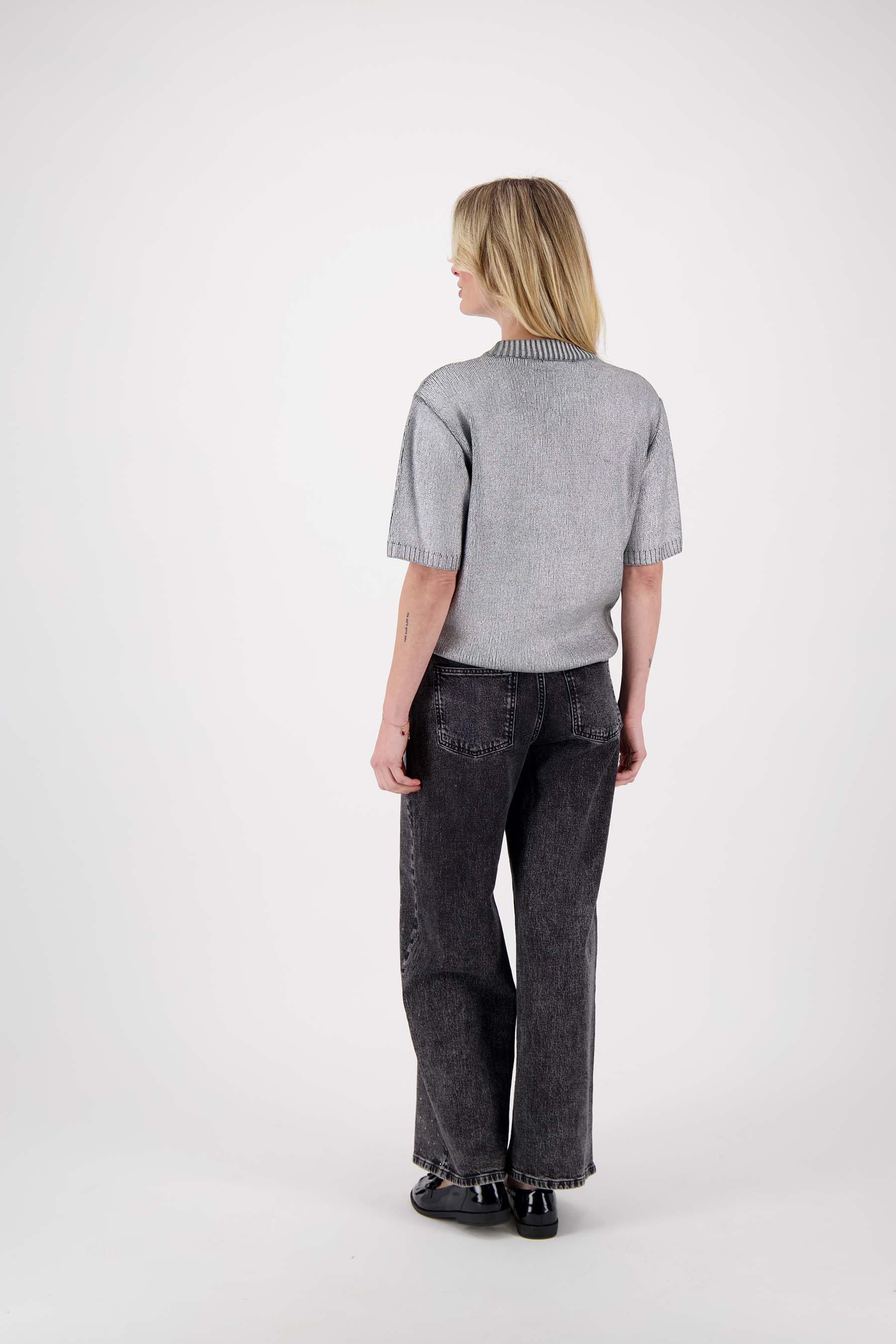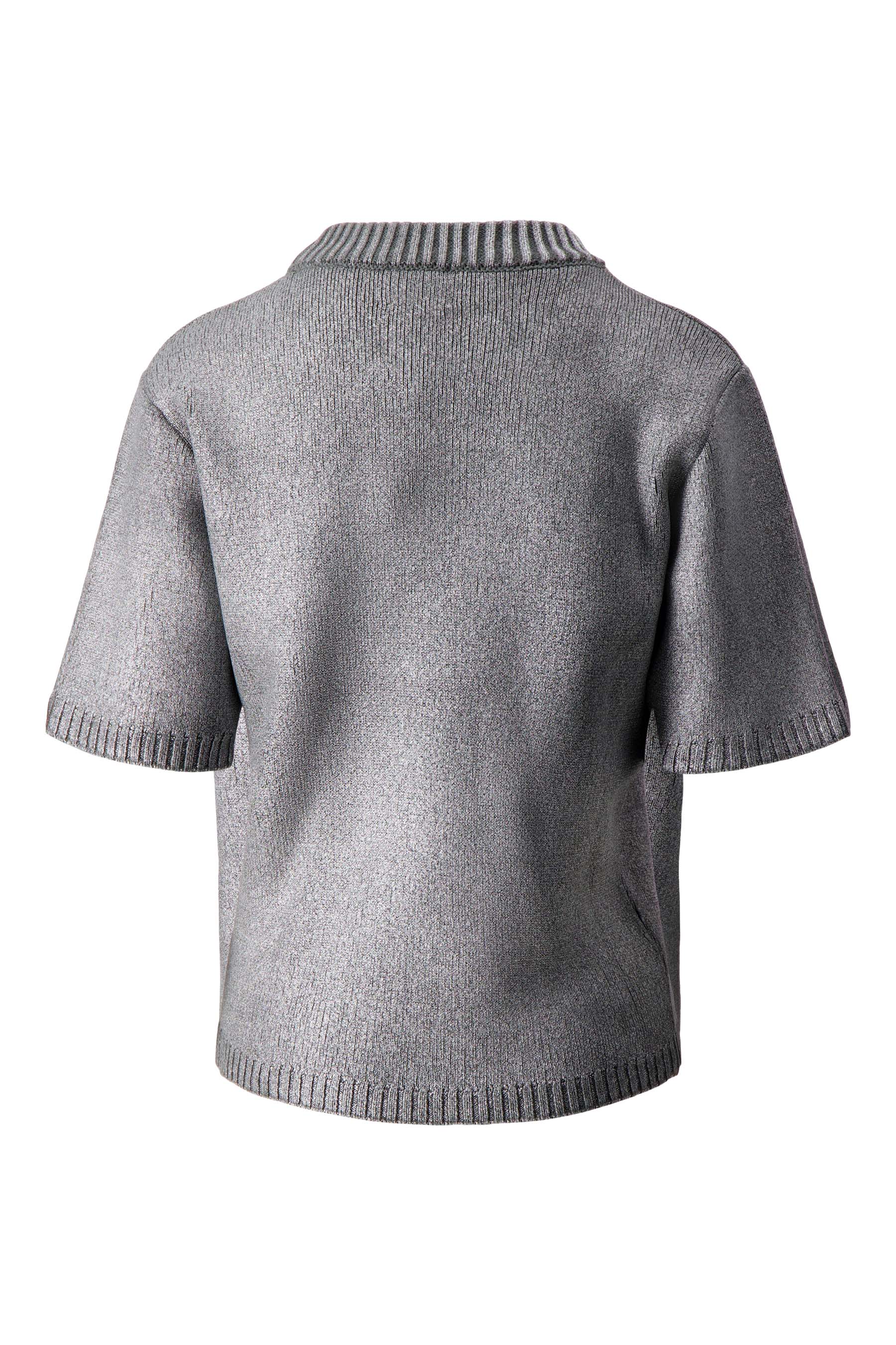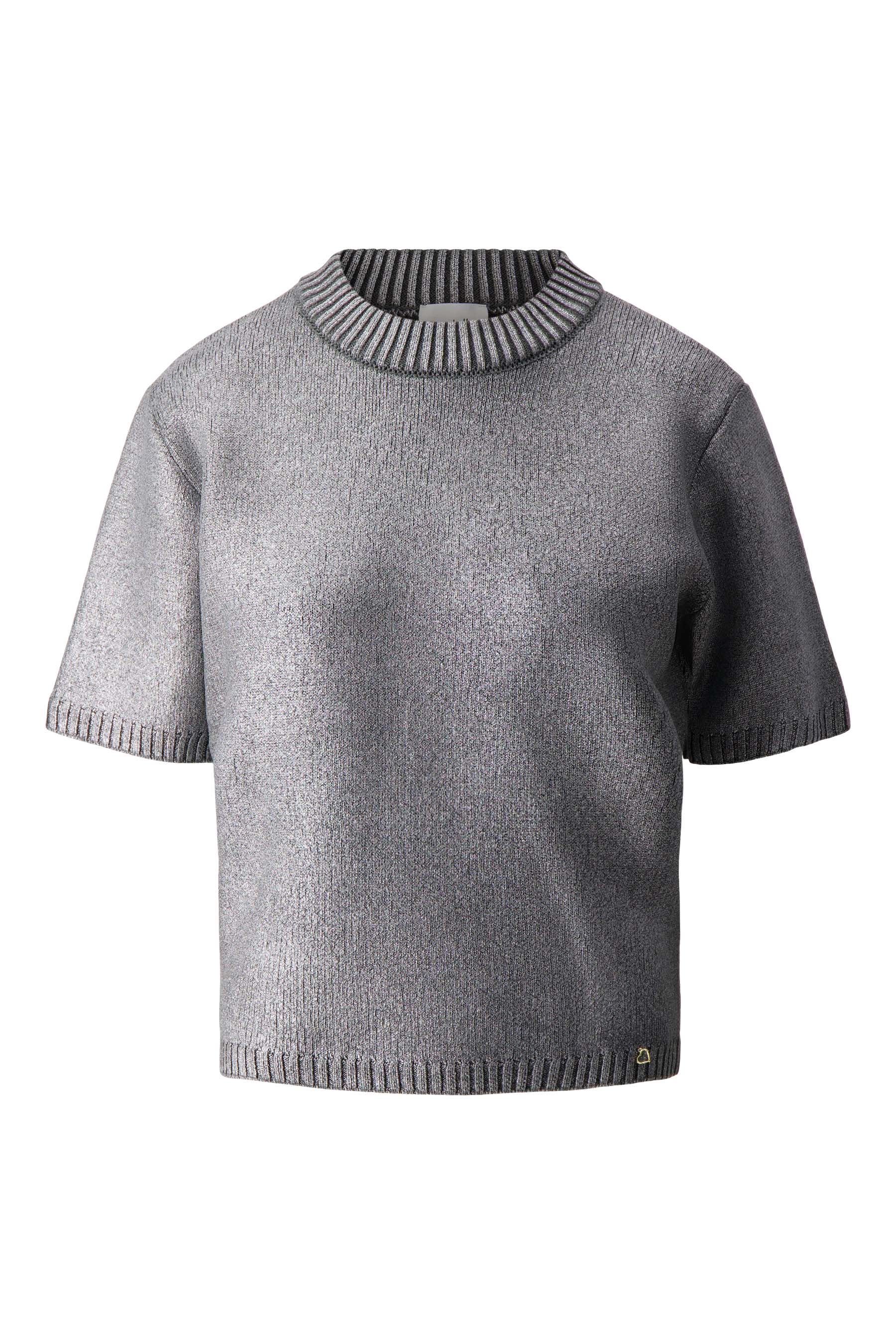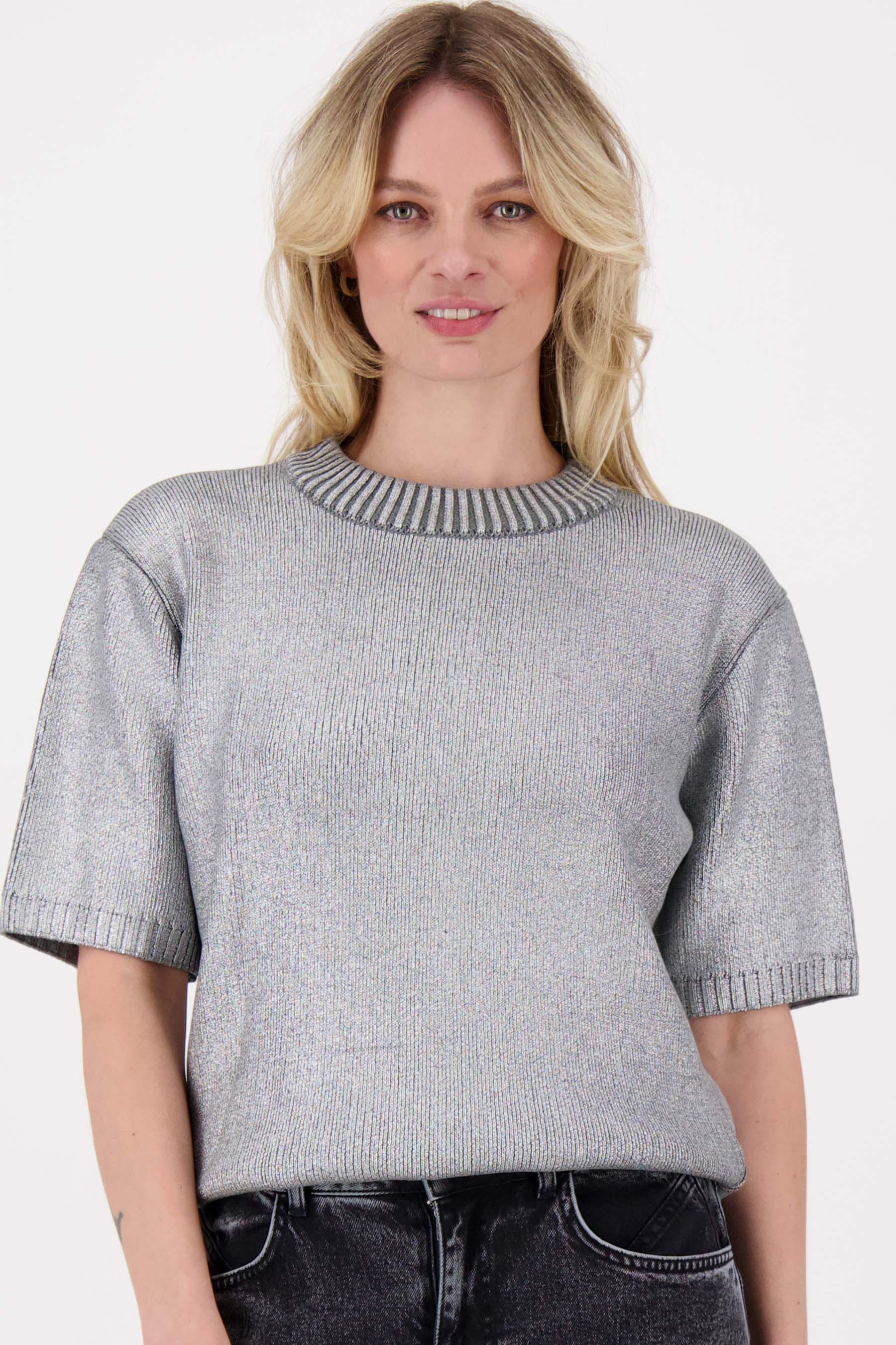 The Zusss short sleeve sweater is a fine addition to your wardrobe with its soft silver color and simple, yet stylish ribbing at the neck and sleeves. This short sleeve sweater combines comfort with a touch of glamour through the subtle sheen in the fabric. Perfect for a casual day or just a neater look, this sweater will always suit you. The silver hue creates a sparkling effect that does not overpower, but rather blends nicely with different outfits.