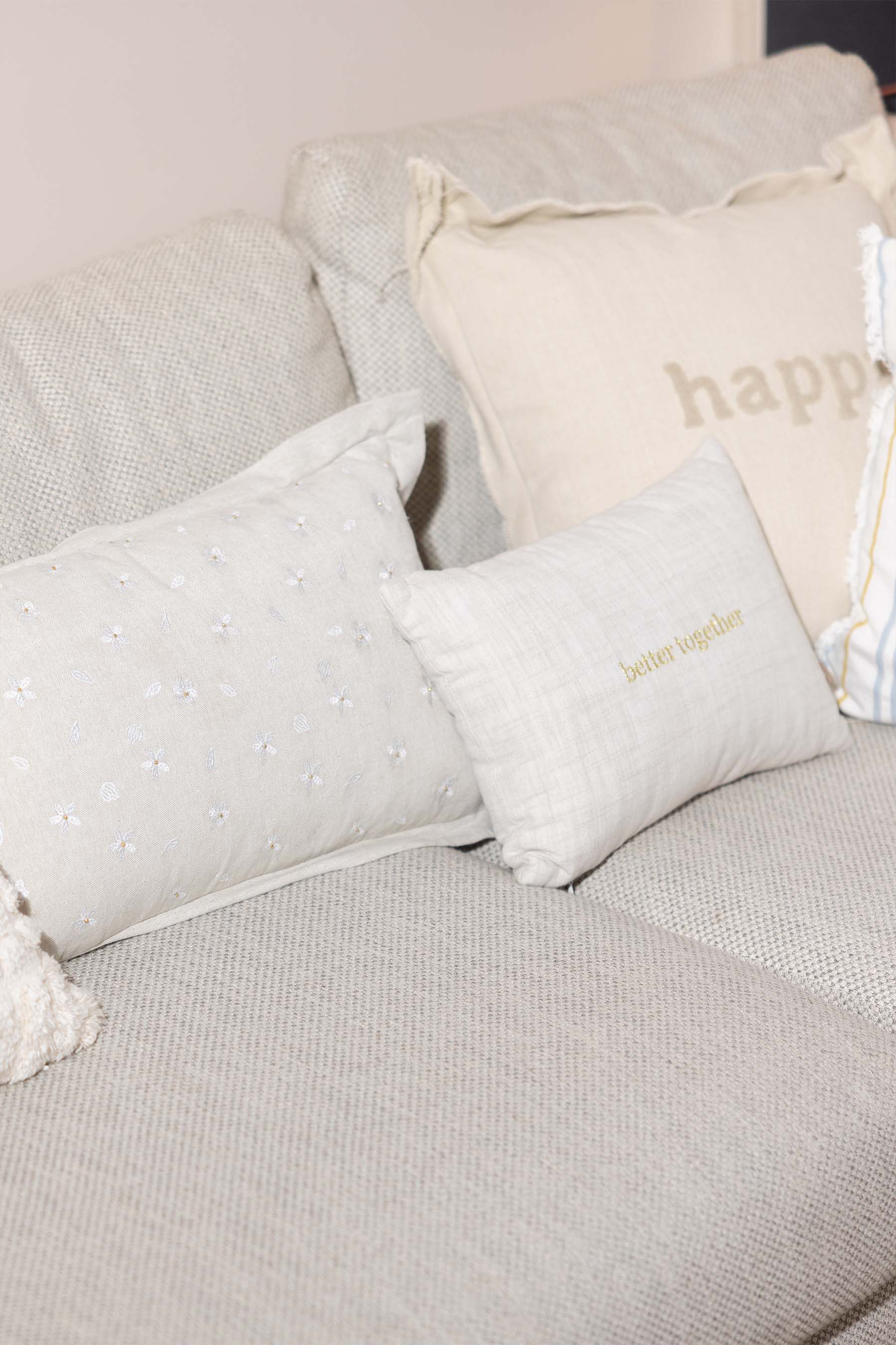This Zusss Better Together cushion is the perfect way to add atmosphere to your interior. The Better Together cushion has a soft off-white color with subtle gold lettering and is made from fine cotton for optimal comfort. Measuring 35x25 cm, this Better Together cushion fits perfectly on any sofa or chair. The Better Together cushion adds warmth to your living room and is ideal to combine with one of the other gifts for your friends.