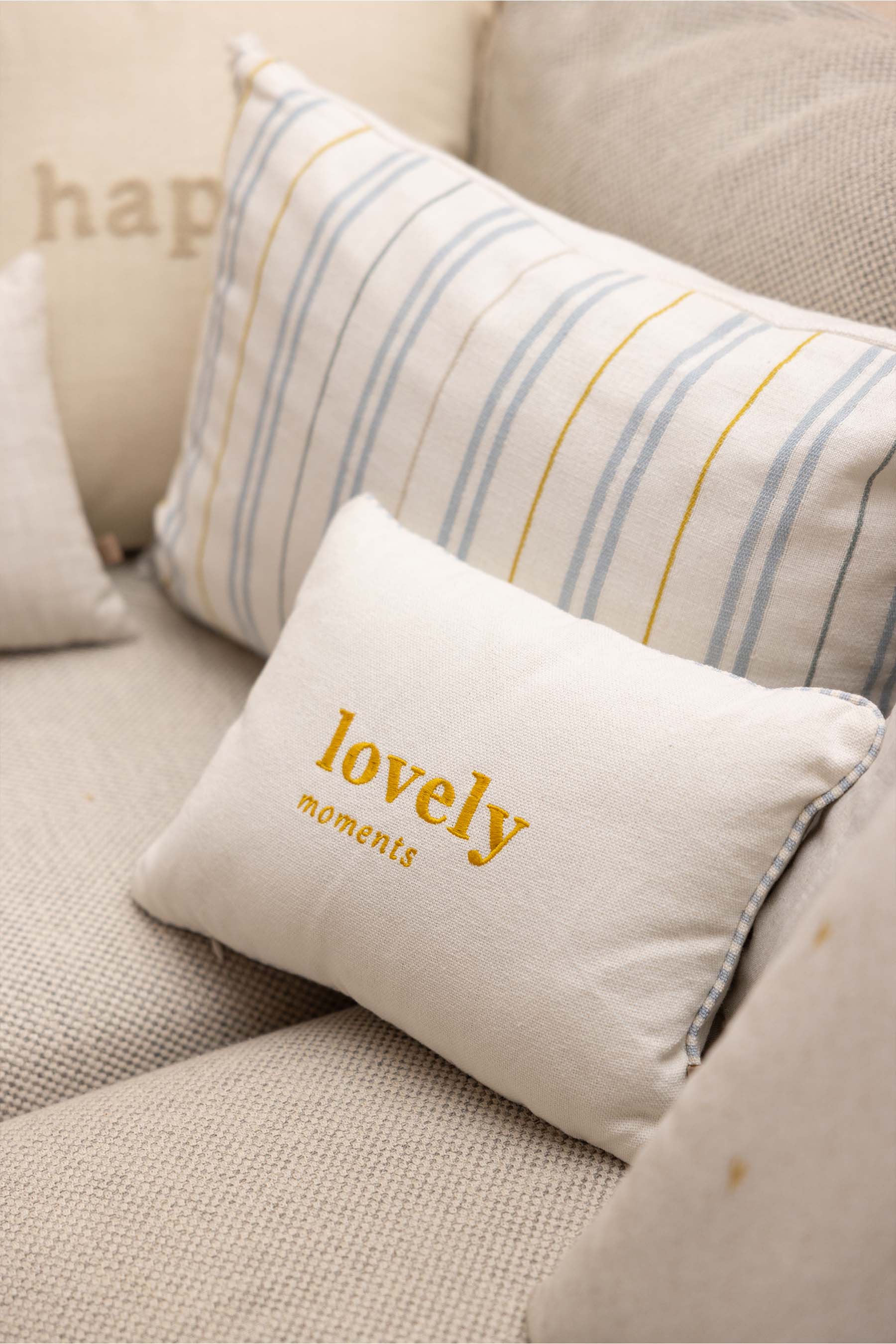 cushion lovely moments colored piping 35x25cm