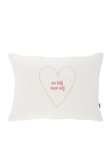 Dit sierkussen van Zusss brengt warmte en charme met de zin zo blij met wij subtiel in het hartje geborduurd. Het kussen is ideaal als zachte eyecatcher op de bank of stoel. Met een afmeting van 35x25 cm maakt het kussen een intieme sfeer voelbaar in elke ruimte. De kleur peper en zout met roze borduursel zorgt voor een rustige maar vrolijke uitstraling. Het Zusss sierkussen met lieve tekst geeft je interieur nét dat beetje extra, perfect om geluk en verbinding in huis te dragen.