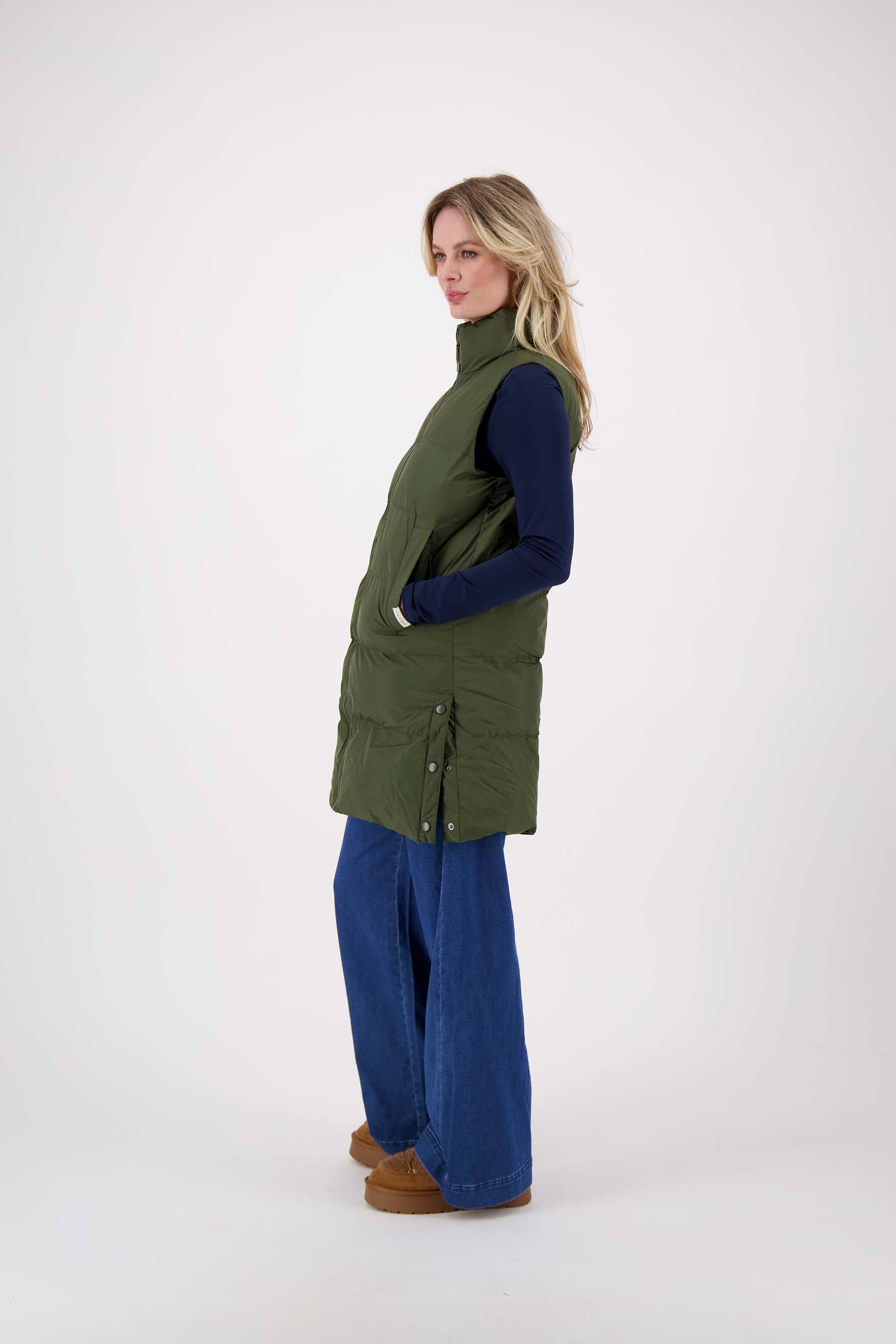 The Zusss long bodywarmer is a fine addition to your closet. This dark green bodywarmer combines comfort with a tough look and keeps you nice and warm during chilly days. Thank you to the practical design and the longer length this bodywarmer protects you well against cold, ideal for traveling or in the city. With this bodywarmer in your collection you choose a basic, yet unique garment that can easily be combined with other jackets and blazers.