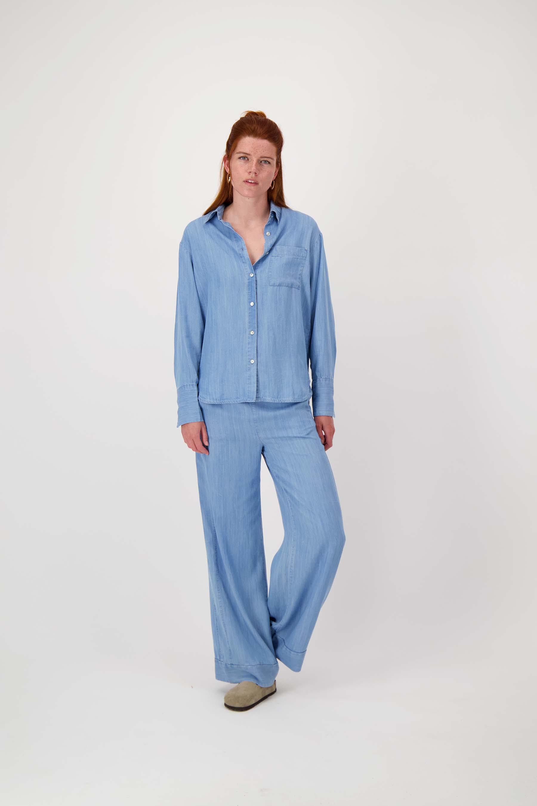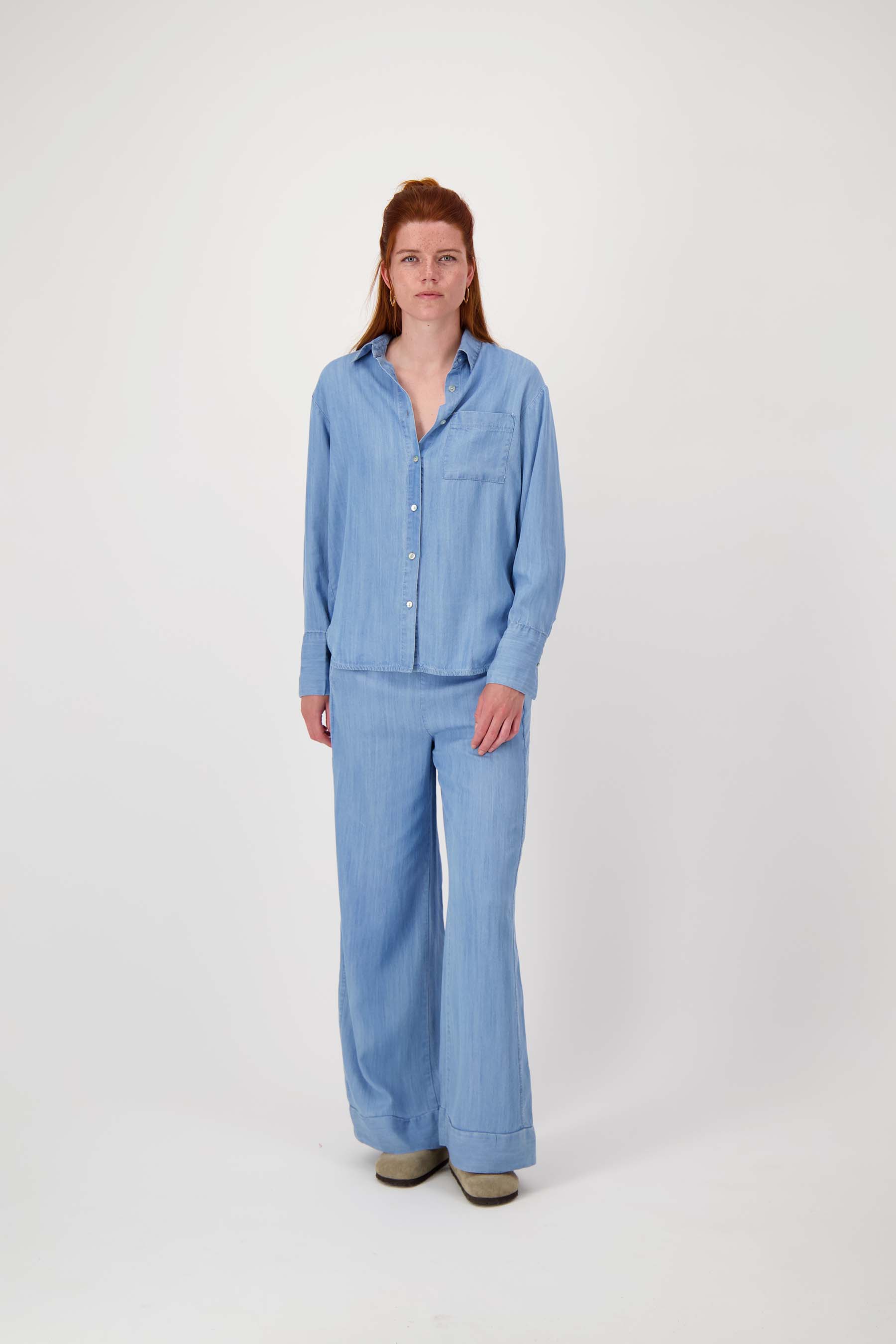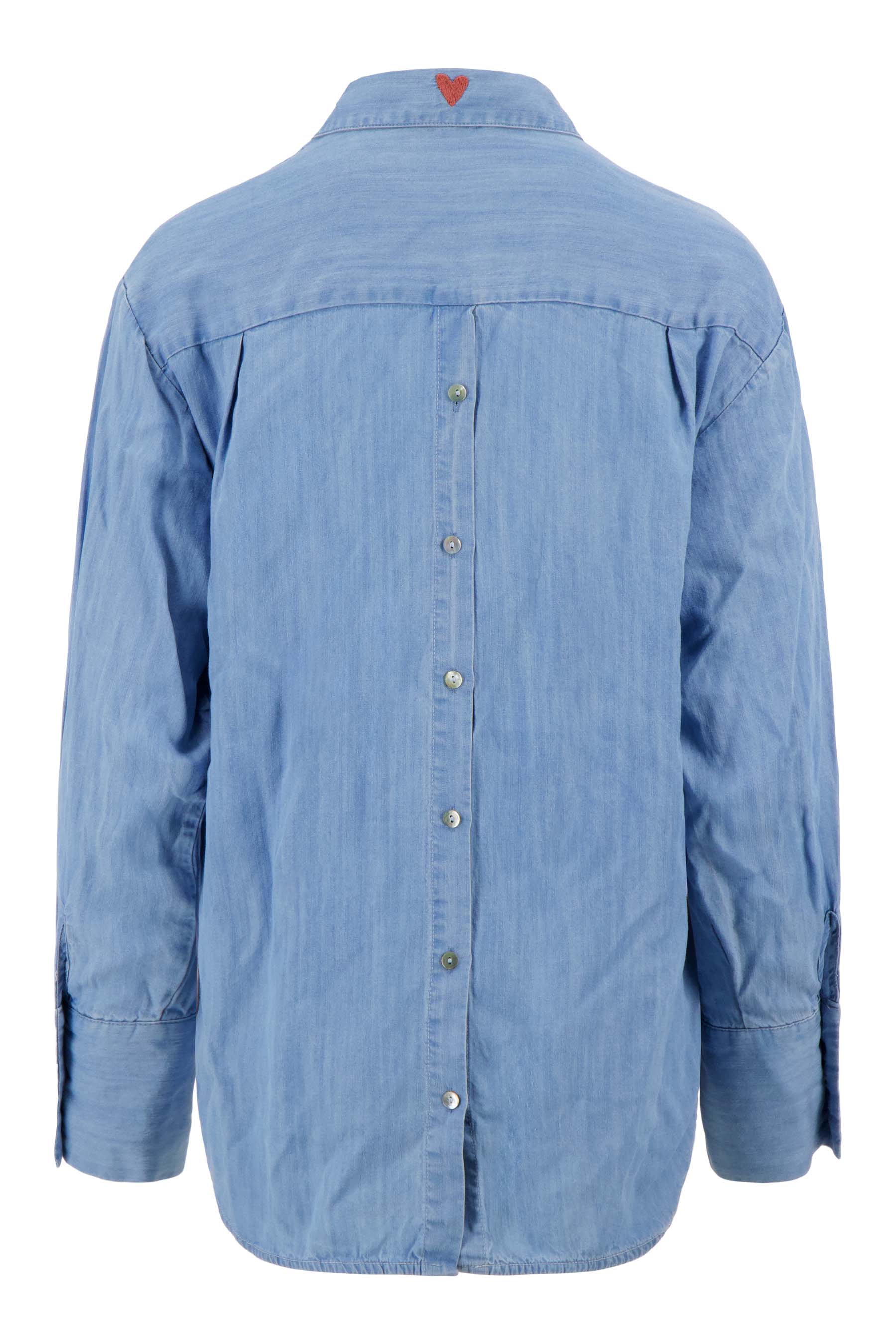 Deze lange denim blouse van Zusss is een must-have in je garderobe. De lange denim blouse komt in een tijdloze light blue denim kleur en heeft een relaxte pasvorm met een klassieke kraag en knoopsluiting. De blouse valt lang en stijlvol, perfect voor casual dagen of als laagje over je favoriete basics. Combineer deze denim blouse met een van onze armbanden of tassen voor een leuke look.