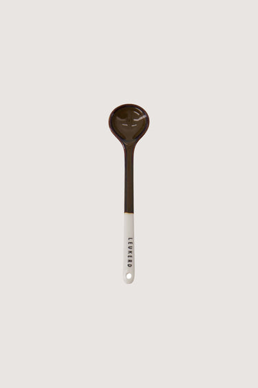 This Zusss ceramic spoon is a must-have kitchen accessory for anyone who loves style and functionality. The ceramic spoon combines a warm brown color with a white handle and the word 'Leukerd' subtly printed on it. Made from high-quality ceramic for durability and a luxurious look. With a compact size of approximately 14 cm, this ceramic spoon fits perfectly with other kitchen accessories from Zusss. Add this ceramic spoon to your collection for a cozy and contemporary kitchen style.