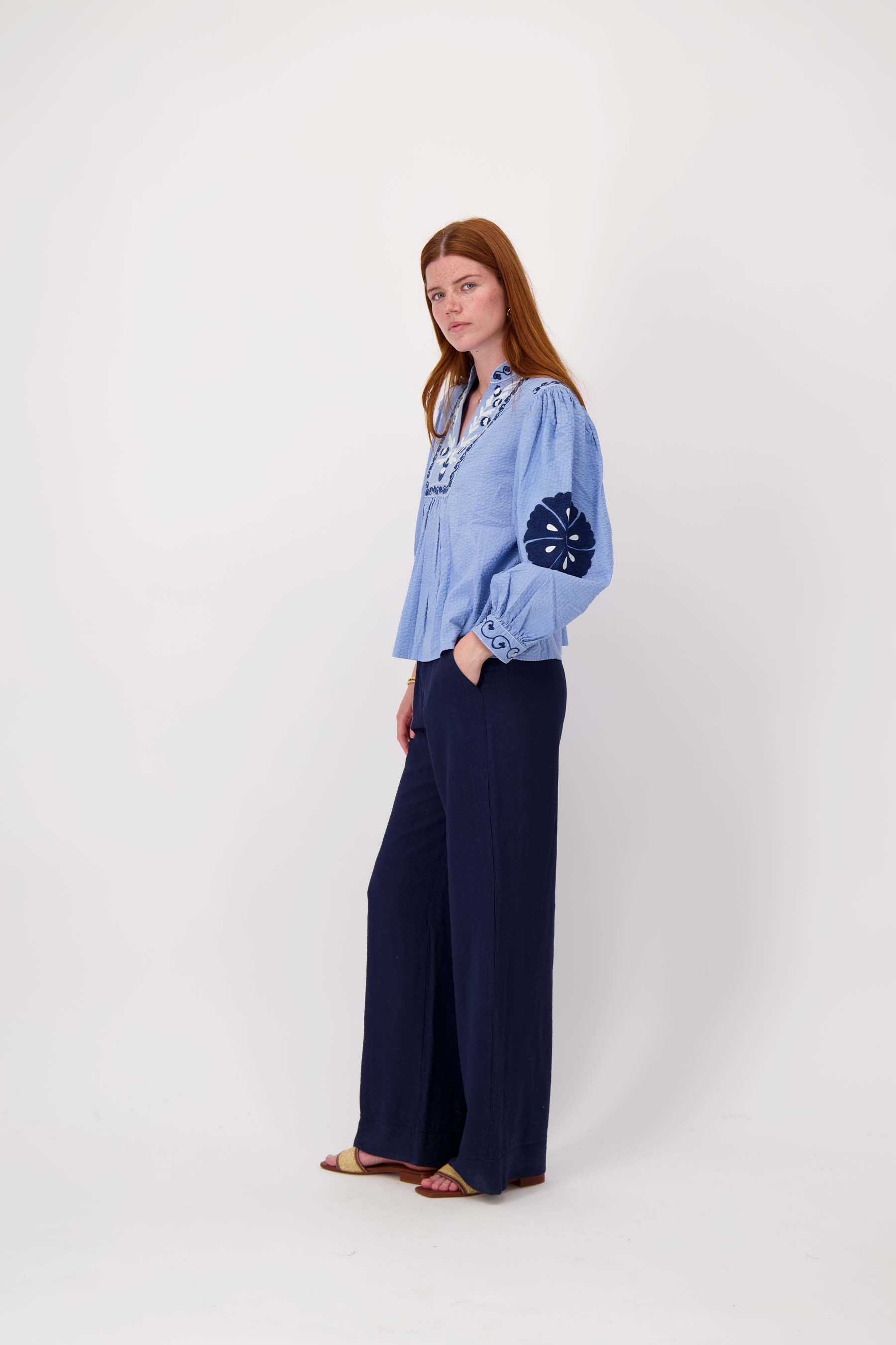 De Zusss linnenlook broek is perfect voor een luchtige, zomerse outfit. Met de navy kleur straalt deze linnenlook broek eenvoud en stijl uit. De broek heeft een wijde pasvorm, ideaal voor comfort en een nonchalante uitstraling. Combineer deze broek met een blouse of top voor een complete look. Dankzij de linnenlook voelt deze broek heerlijk koel aan tijdens warme dagen. De Zusss linnenlook broek is een must-have voor jouw zomer garderobe!