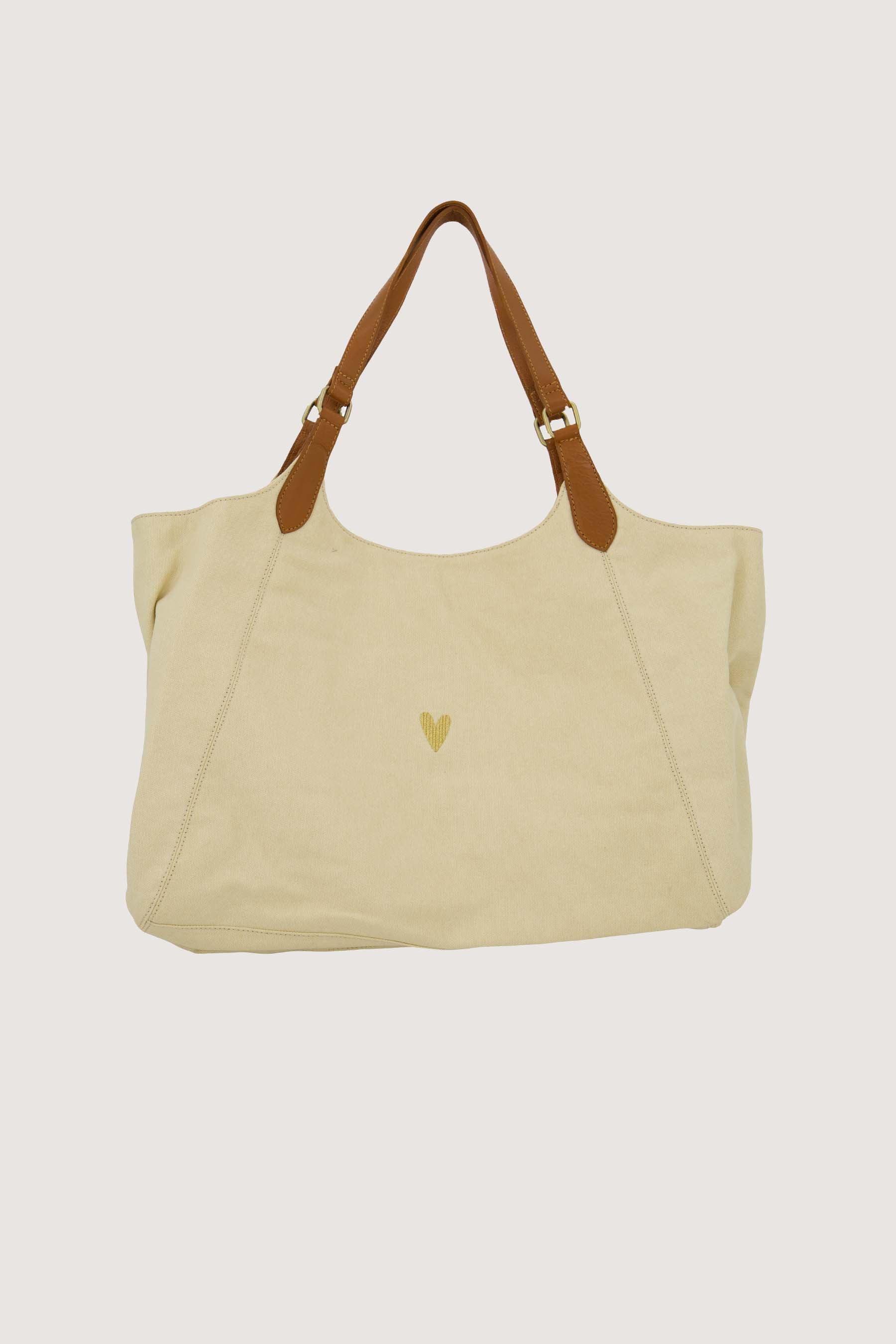 De Zusss tote bag met leren details is jouw perfecte stijlvolle metgezel. Deze tote bag combineert een zachte, kitkleurige stof met bruine leren handvatten voor een warme uitstraling. De ruime tas heeft een subtiel geborduurd hartje voor een liefdevolle touch. De Zusss tote bag met leren details biedt genoeg ruimte voor al je essentials, ideaal voor werk of een dagje uit. Dit tijdloze accessoire is een must-have voor elke garderobe. Combineer de tote bag met een van onze wenskaart sleutelhangers.