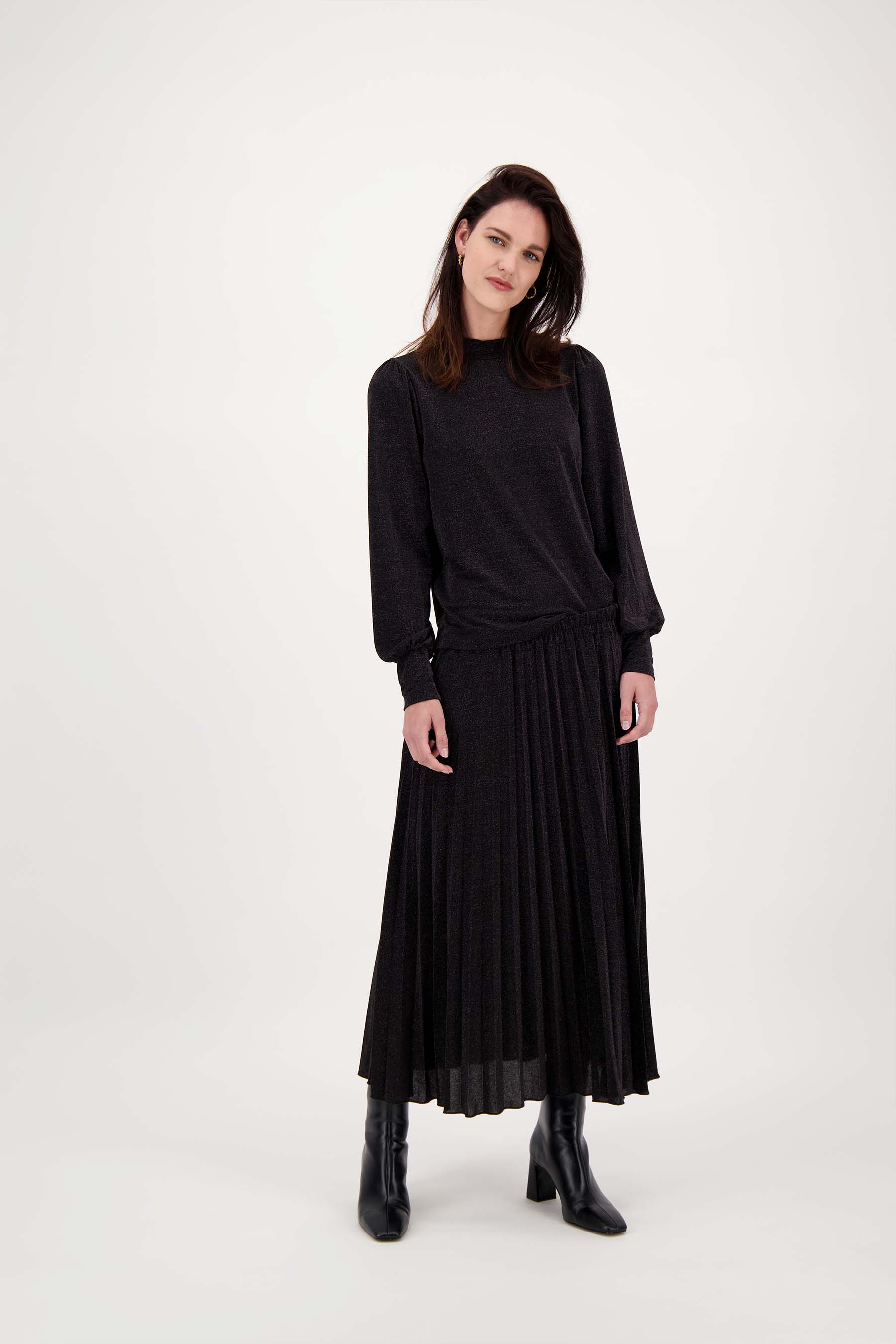 With this fine Zusss top you can go either way! The top is black in color and the lurex a beautiful look. Combine it with a cool skirt or fine Zusss pants. This top is a perfect item for during the holidays! The top has a high neck, long balloon sleeves and closes with two buttons in the neck. This item is made of 40% polyester, 30% lurex, 22% viscose and 8% elastane. Also check out the Zusss mooimakers! Which item is your favorite?