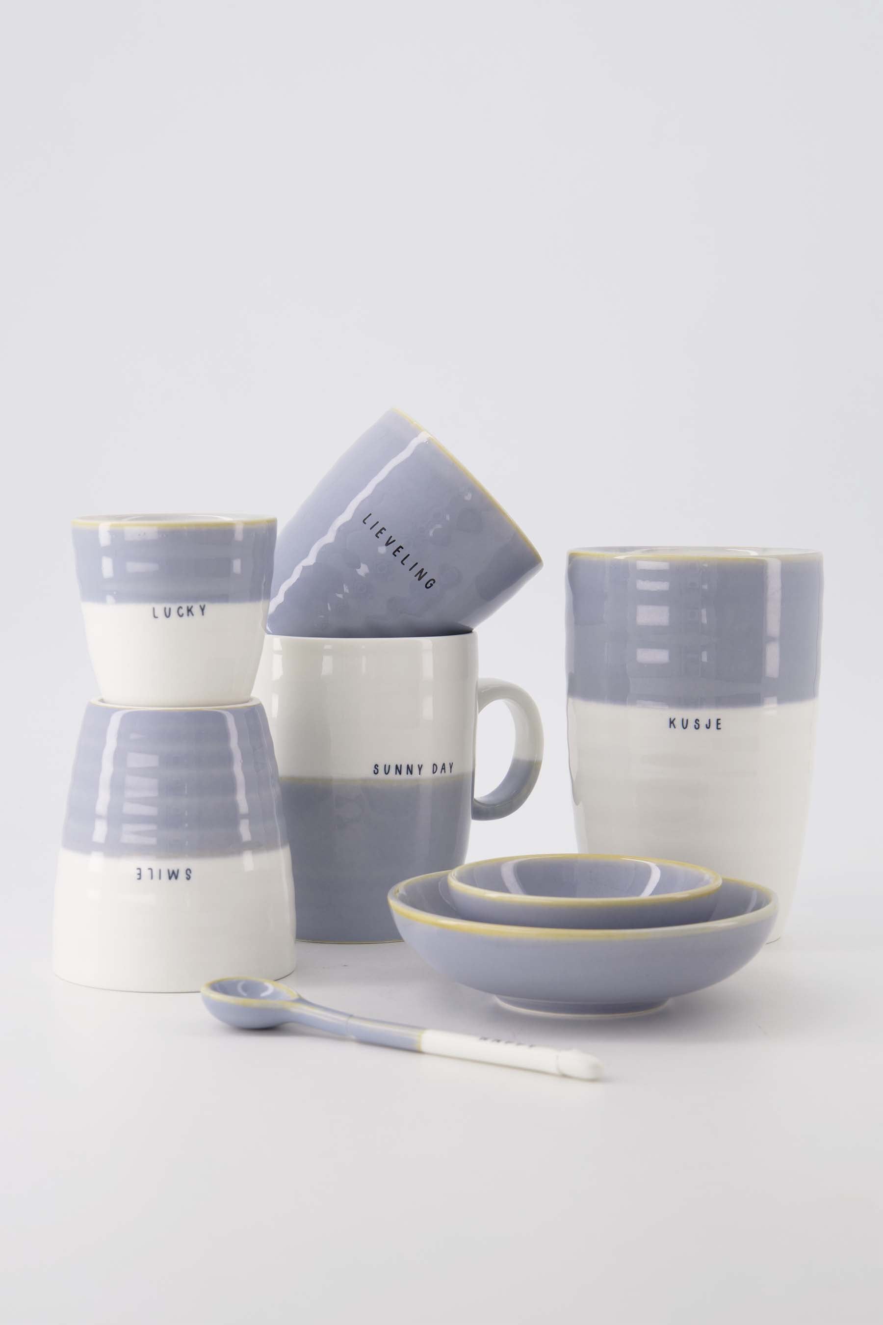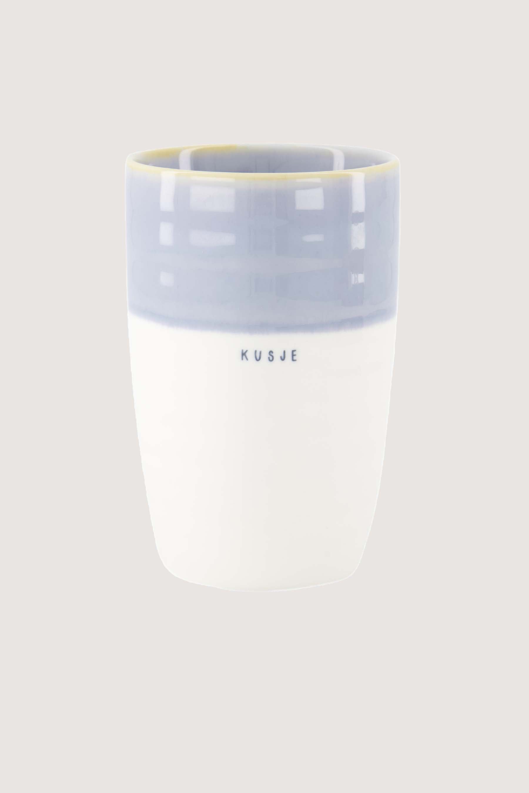 The Zusss L kiss mug is a beautiful addition to your tableware collection. This kiss mug is made of high-quality ceramic and combines a soft white bottom with a light blue top edge. With a height of approximately 10 cm, this mug is perfect for your favorite hot drinks. The subtle text 'KUSJE' (kiss) makes it extra sweet and personal. Discover more beautiful items in our kitchen textiles collection for a complete, warm atmosphere in your home.