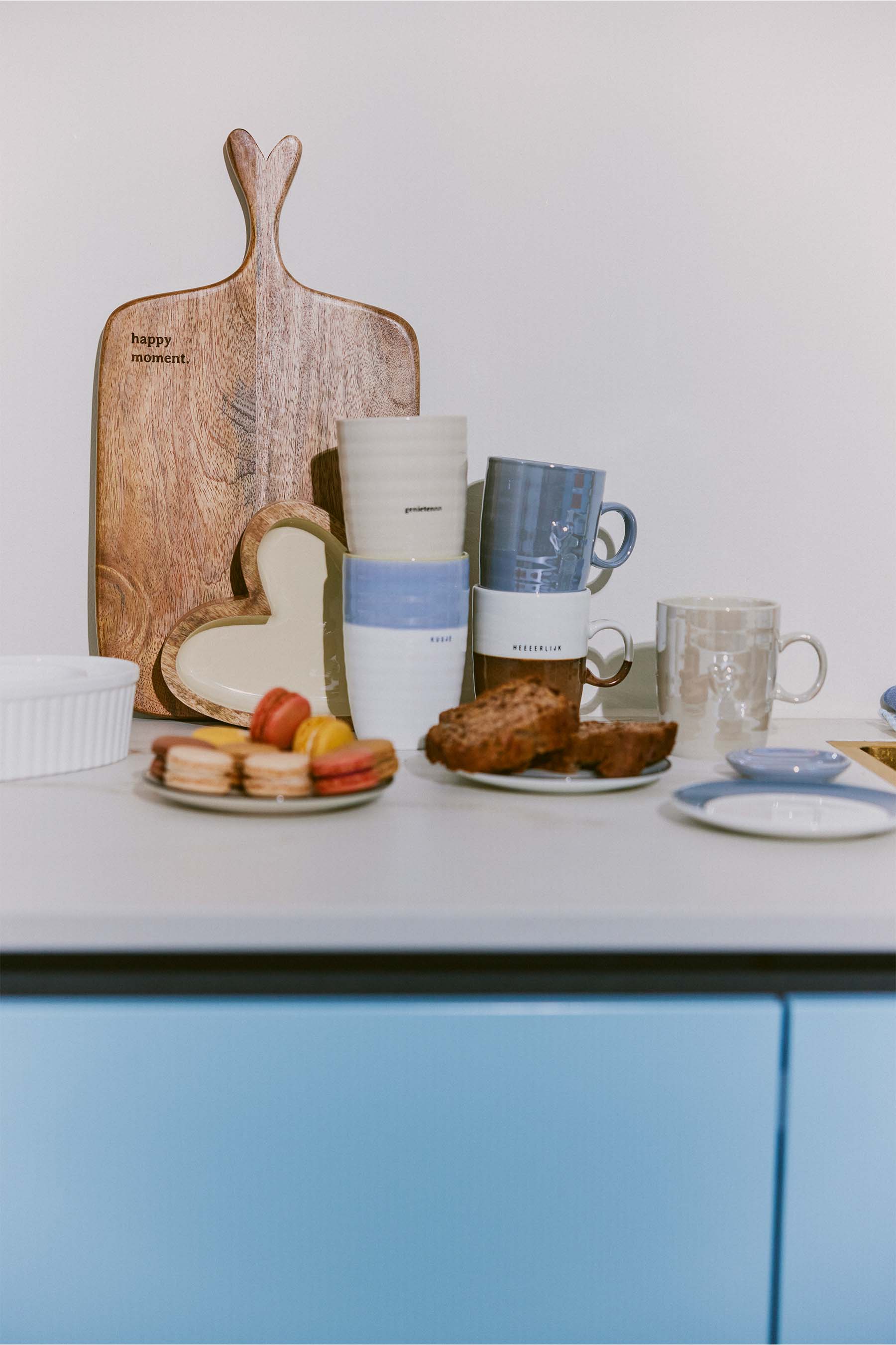 The Zusss L kiss mug is a beautiful addition to your tableware collection. This kiss mug is made of high-quality ceramic and combines a soft white bottom with a light blue top. With a height of 8.5 cm, this mug is perfect for your favorite hot drinks. The subtle text 'KUSJE' (kiss) makes it extra sweet and personal. Discover more beautiful items in our kitchen textiles collection for a complete, warm atmosphere in your home.