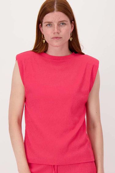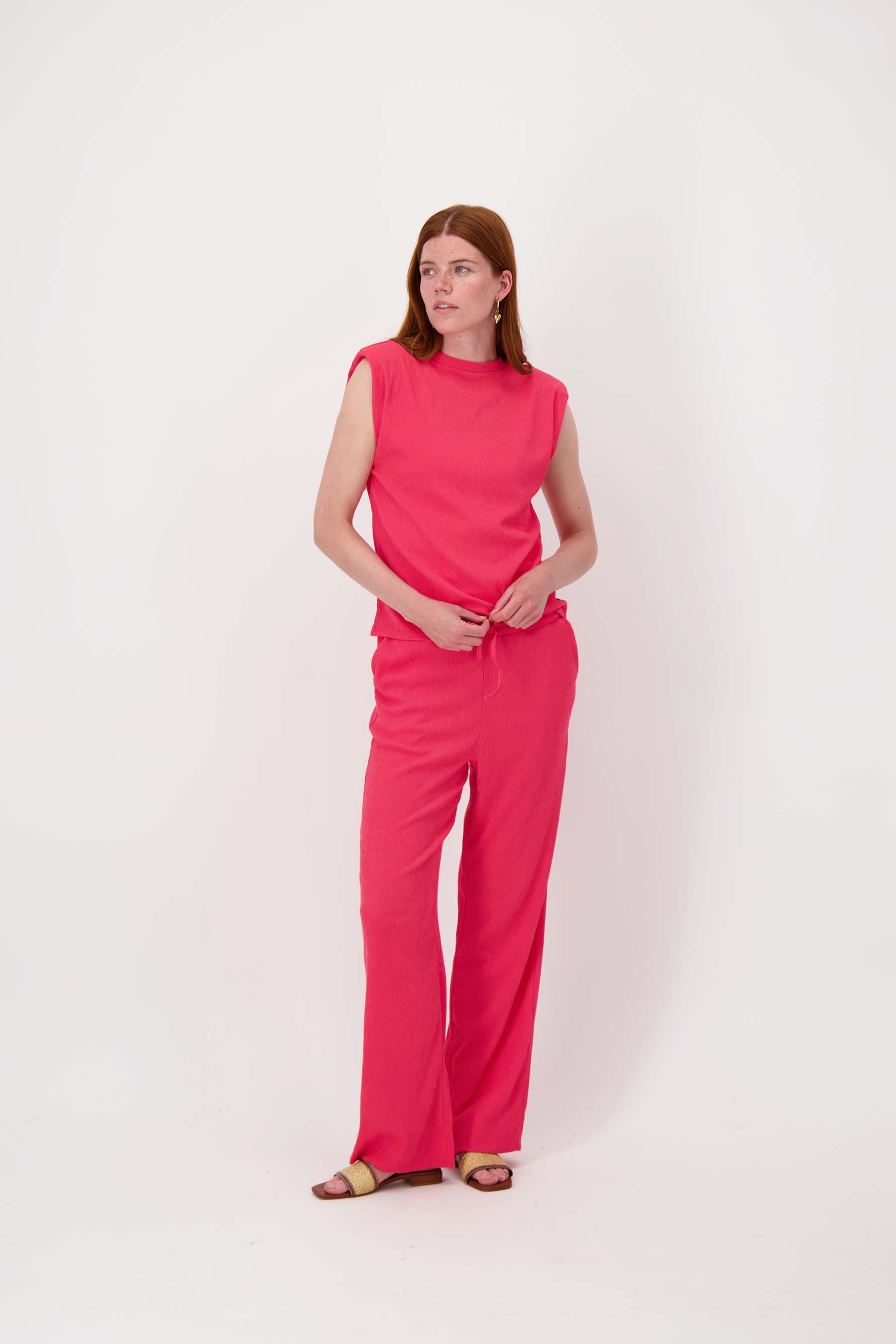 De Zusss mouwloze top met crincle structuur is perfect voor warme dagen. Deze mouwloze top heeft een frisse raspberry kleur die direct in het oog springt. De crincle stof geeft de top een speels en luchtig gevoel, ideaal voor een casual en comfortabele look. Combineer deze top met bijpassende items uit onze shorts voor een complete zomeroutfit. De Zusss mouwloze top met crincle structuur is een echte musthave voor jouw garderobe deze zomer.