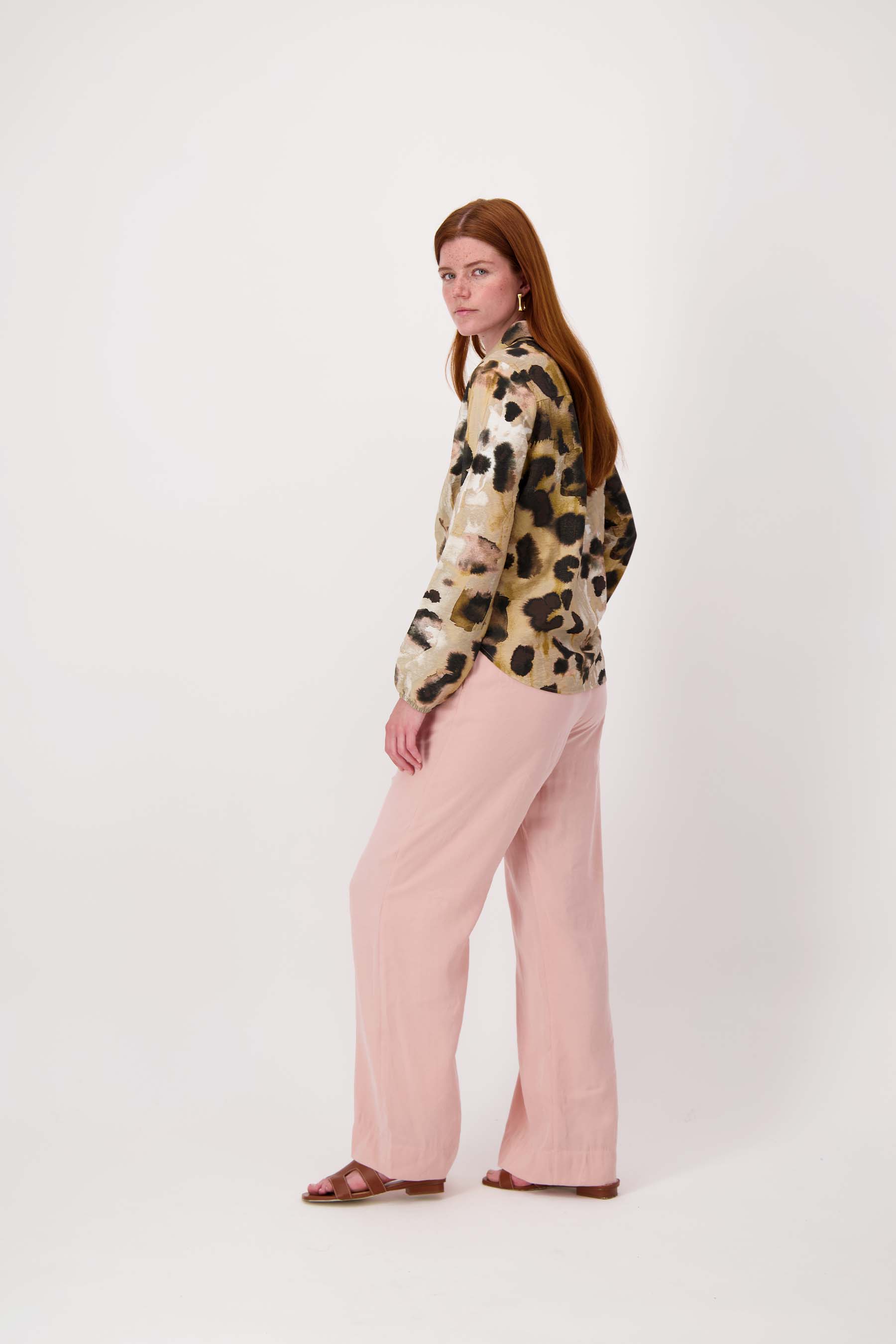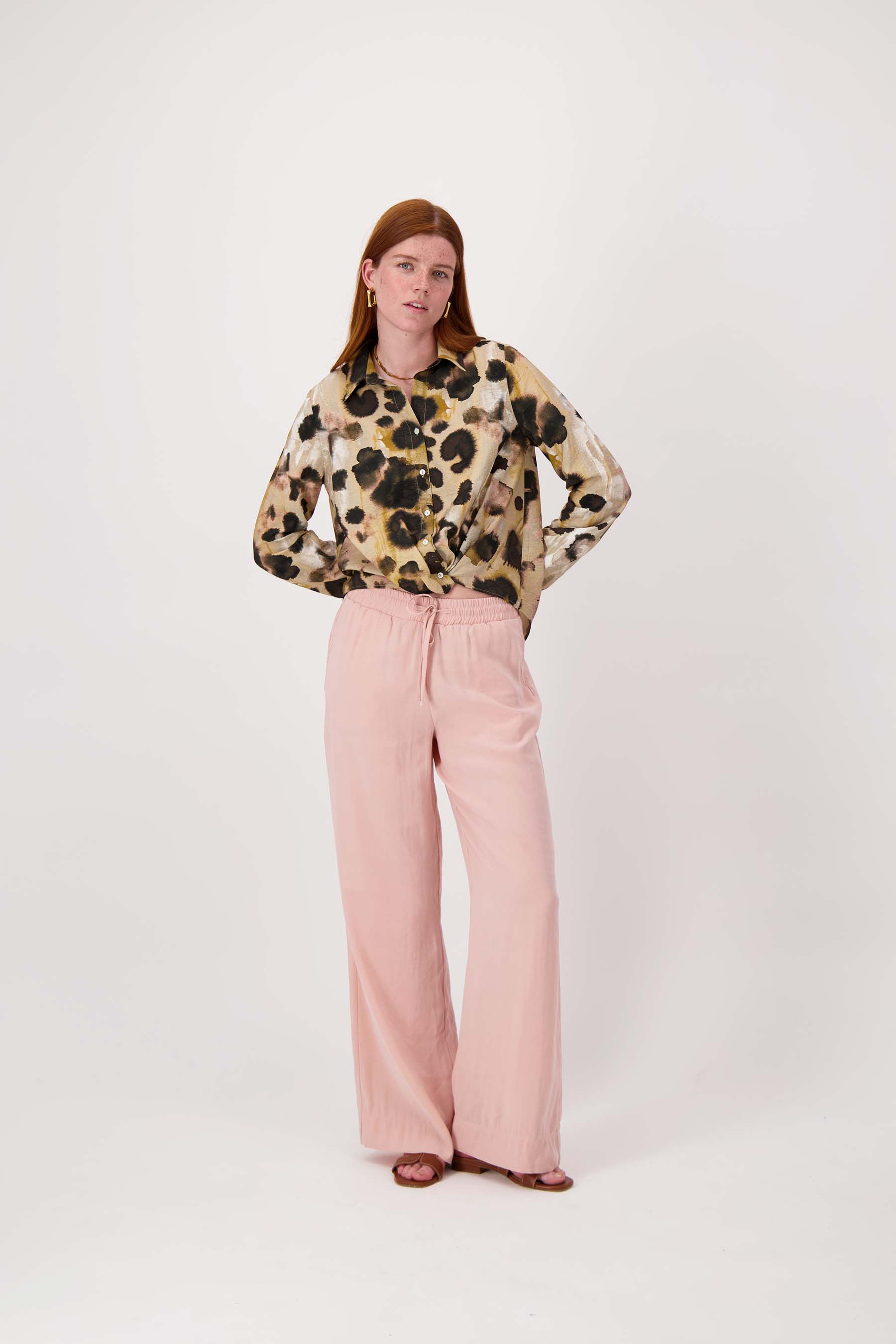 The Zusss printed blouse is a real eye-catcher for your wardrobe. This faux wrap blouse combines a playful print with a contemporary look. The blouse has a unique twist at the front, which ensures a flattering fit. The beautiful color combination of chocolate, sand, and light pink makes it easy to combine. The soft fabric makes this blouse wonderfully comfortable. Pair it withjeans for a complete look.