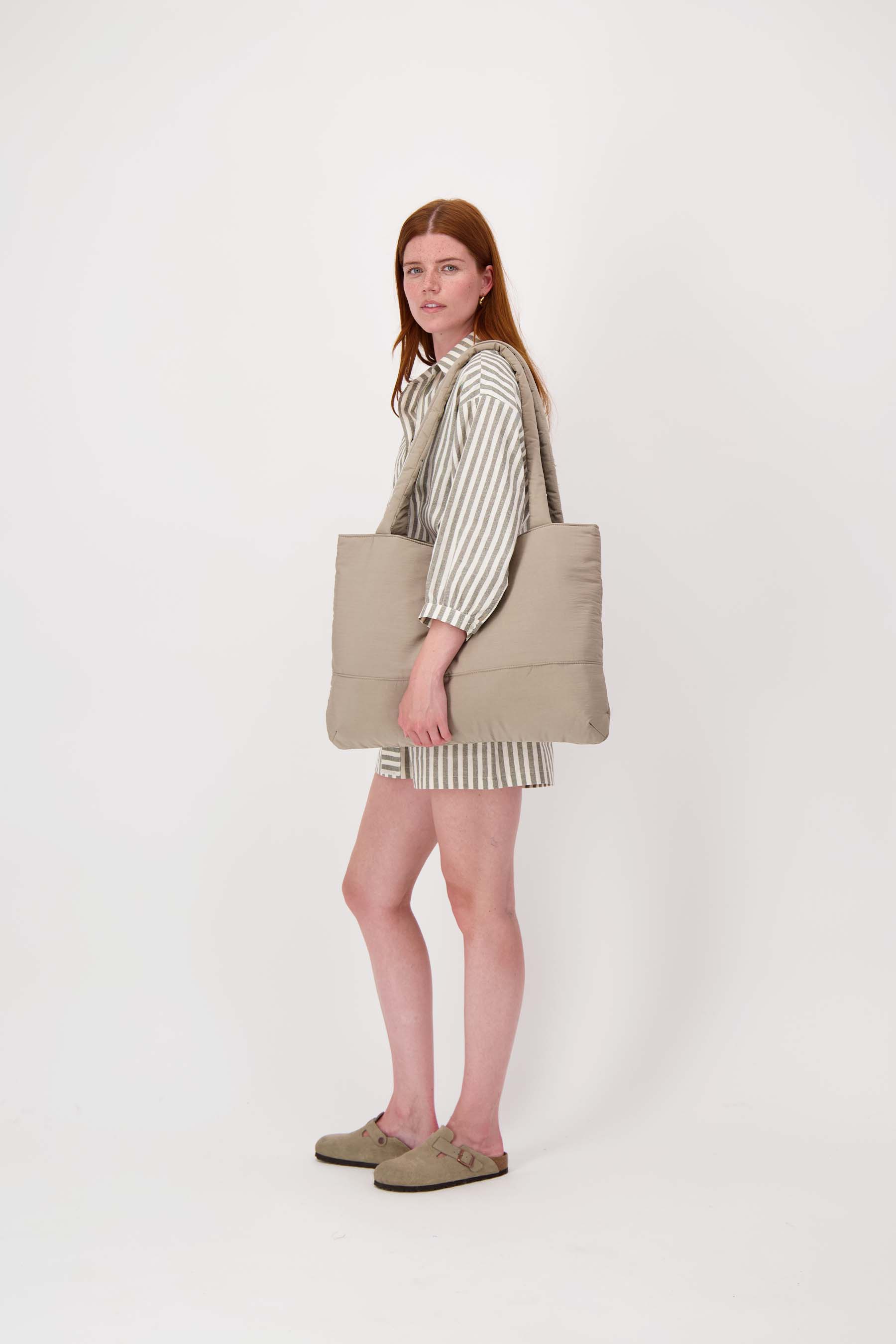 The Zusss nylon shopper bulky is a must-have item. This nylon shopper bulky combines comfort and functionality with a trendy look. The bag comes in a soft sand color, perfect for any outfit. Thanks to its spacious size and soft, padded shoulder straps, this nylon shopper bulky is easy to carry, whether you're doing your shopping or going out for the day. Combine the shopper with one of ourkey rings to complete the look of your bag.