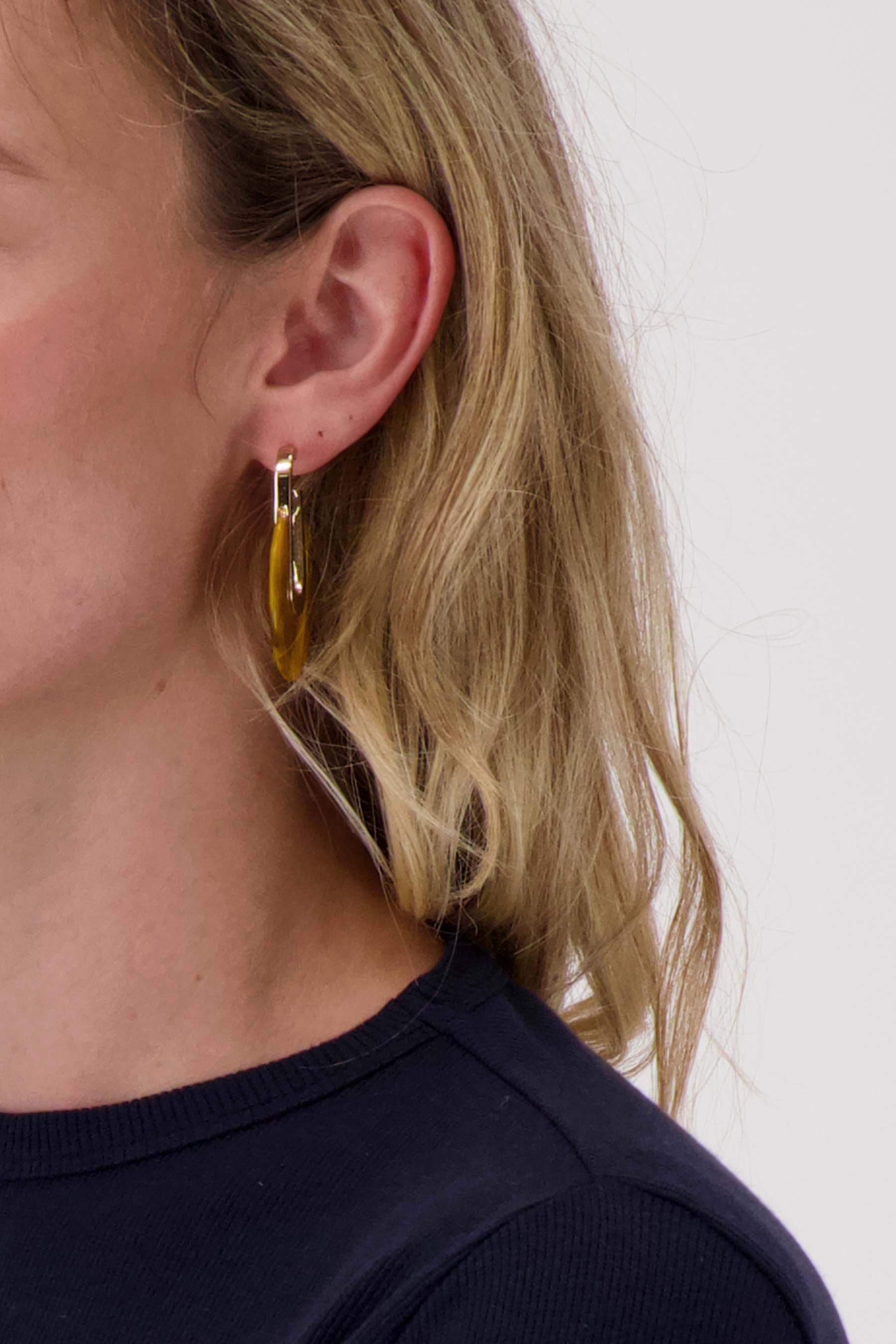 The Zusss earrings with resin round are your new favorite accessory with a warm mid brown pattern. These subtle earrings with resin round radiate a natural and cool look through the playful design and stylish shape. Perfect for adding that extra touch to a basic look without being overpowering. The combination of gold details and the resin rounds makes them special and wearable.
