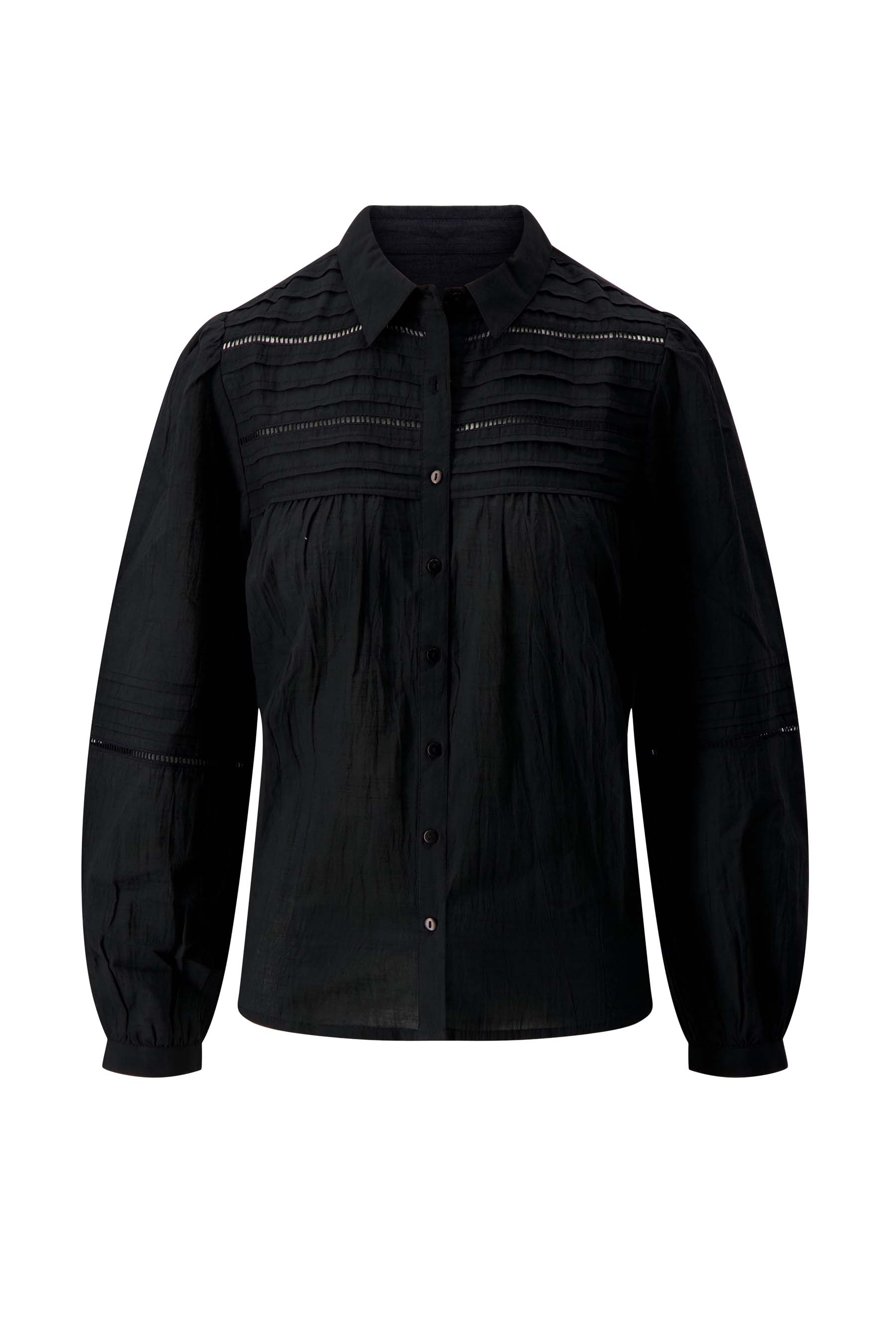 The Zusss pleated blouse is a fine basic in your closet, perfect thanks to its subtle pleats and light, black material. This blouse combines a classic collar with elegant details between the pleats, creating a playful and feminine look. Wear the pleated blouse on jeans for a casual day out or stylish to the office. The black color makes it easy to combine with other items from the collection, so you're always creating something new. Discover this basic that brings just that little bit extra to your outfit.