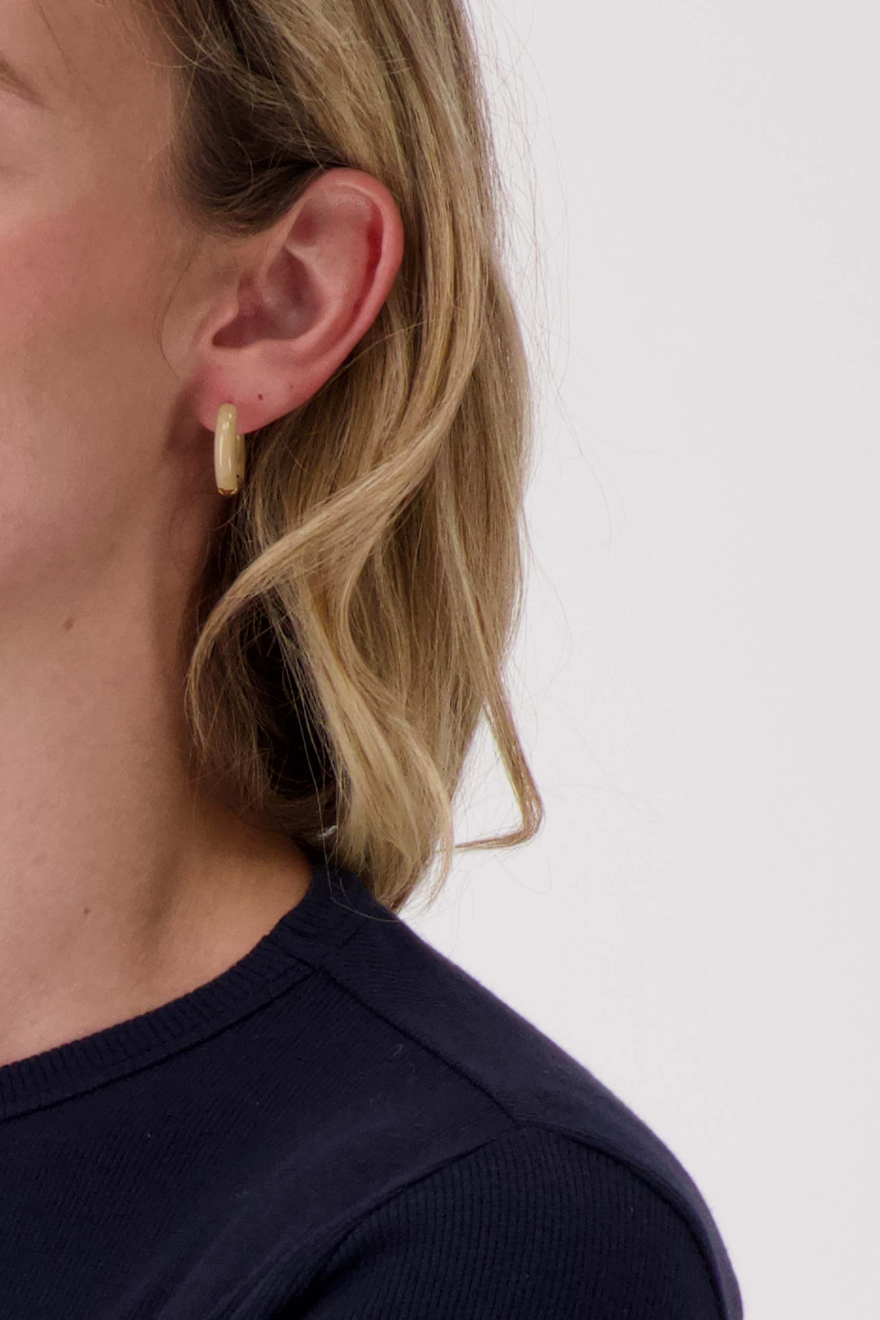 The Zusss ring earrings are a sophisticated addition to your jewelry collection. These earrings combine a soft beige hue with a subtle gold finish, creating a warm and natural look. The compact design makes them perfect for everyday wear, but they are also elegant enough for special occasions. The ring earrings effortlessly match a variety of styles and enhance your outfit with a modest shine.