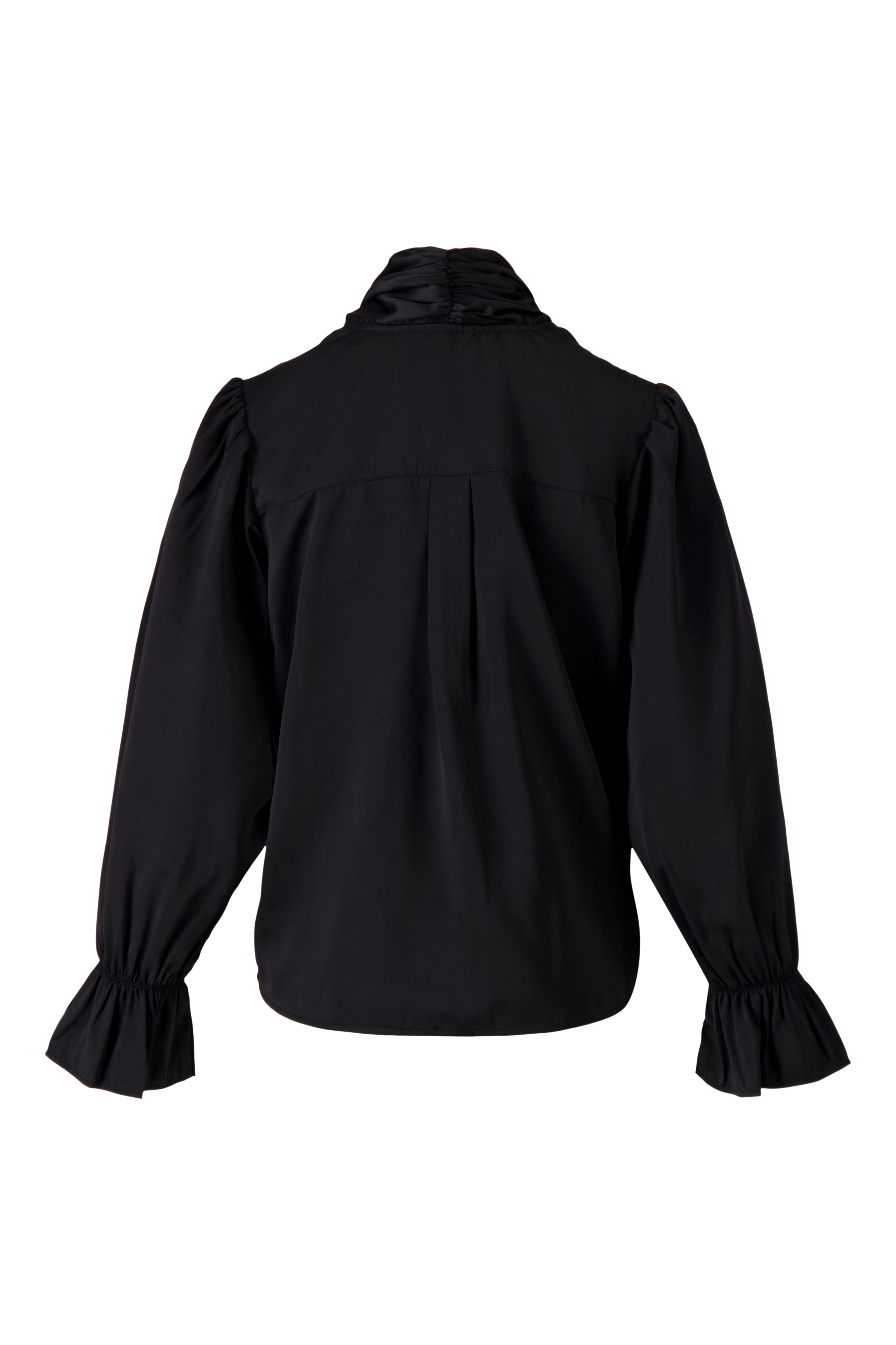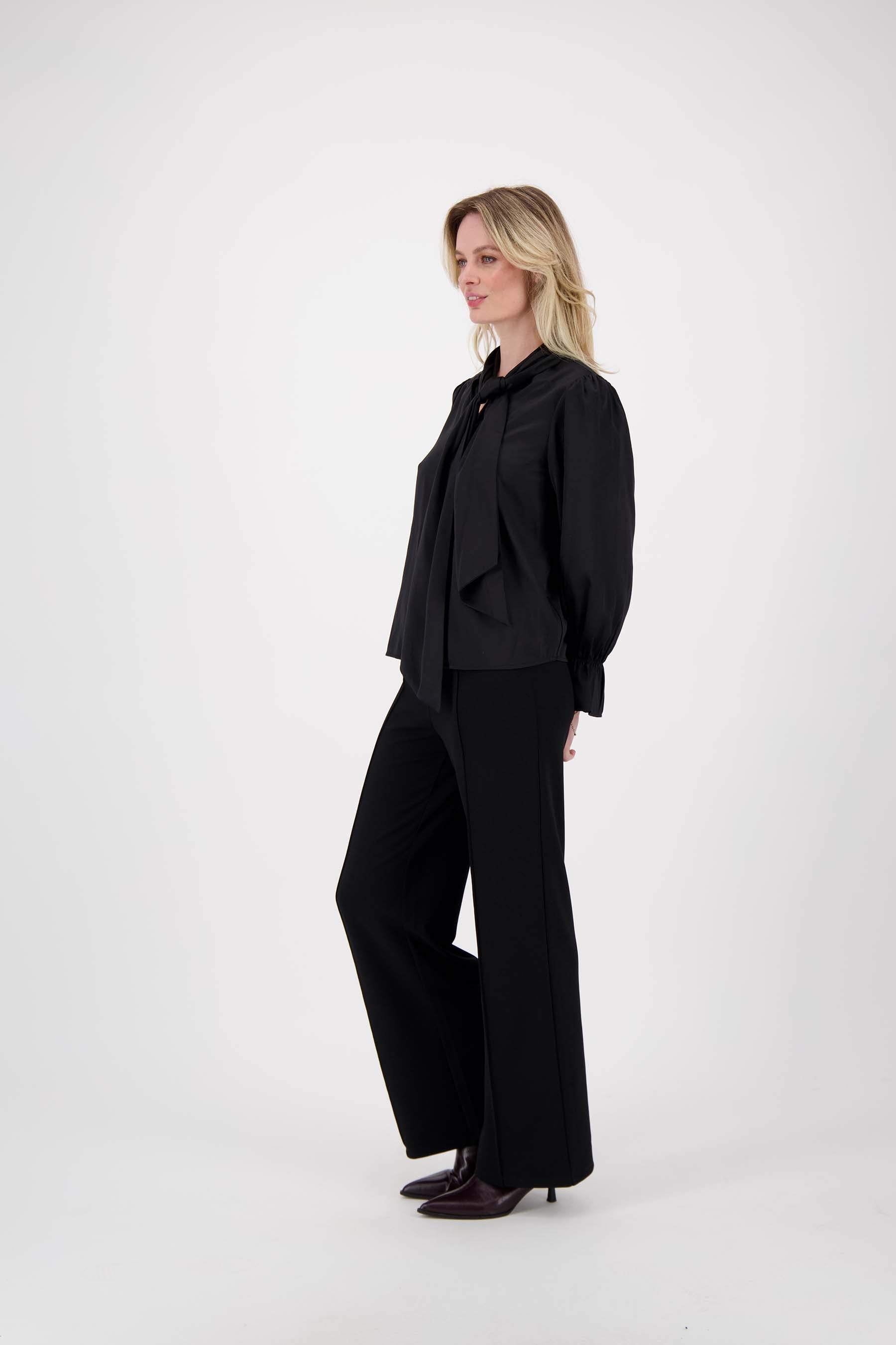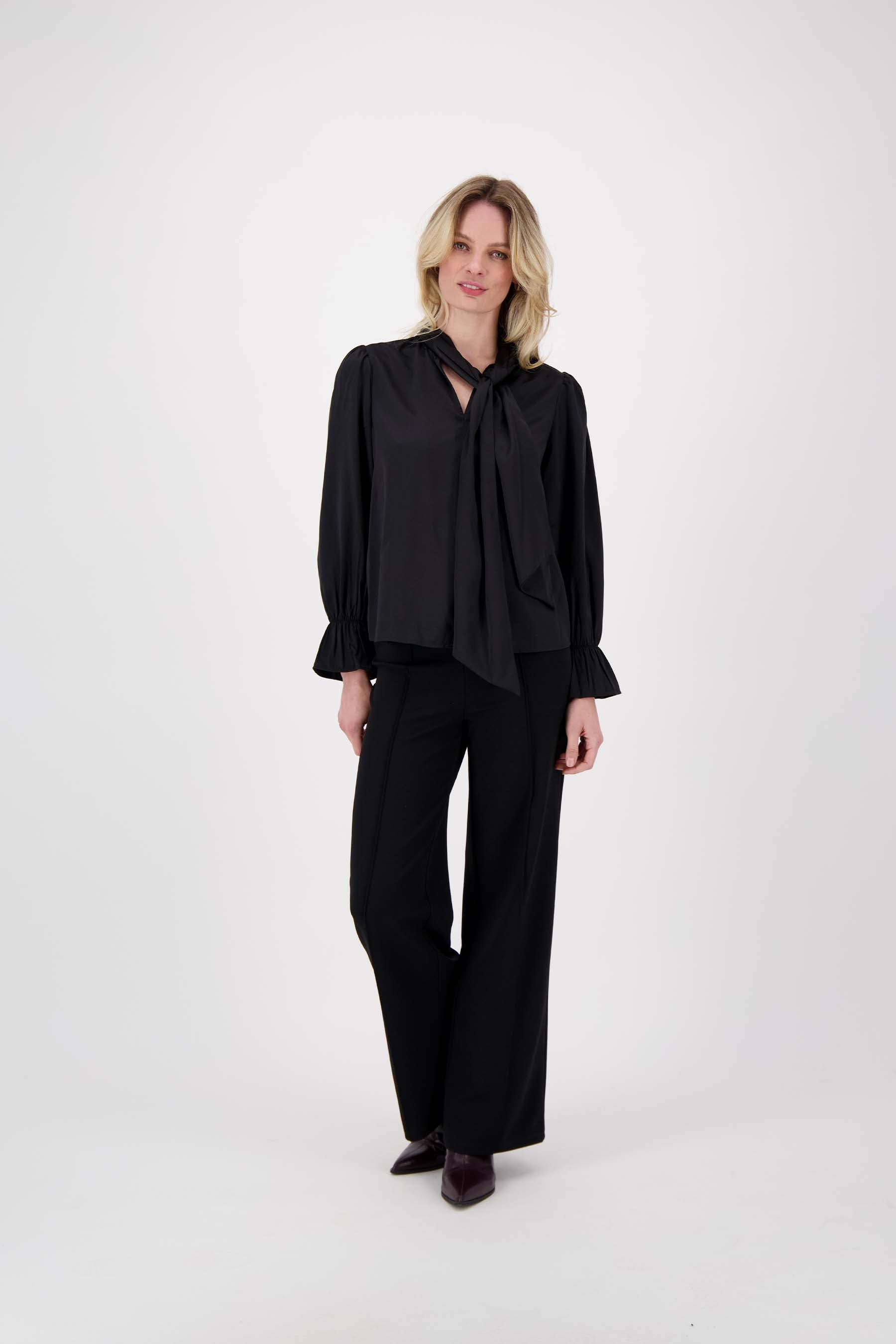 Zusss' satin top is a must-have for your wardrobe, with its soft, shiny fabric and a subtle bow that adds an elegant touch. In a timeless black color, this top offers comfort and style for everyday outfits. Perfect for those who love basic designs with a unique twist, discover more in our collection of blouses and topshere. Satin top details make it versatile and easy to combine.