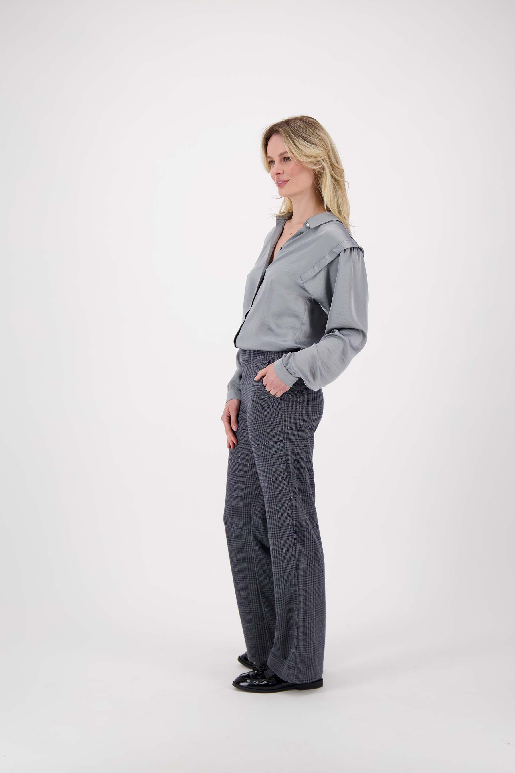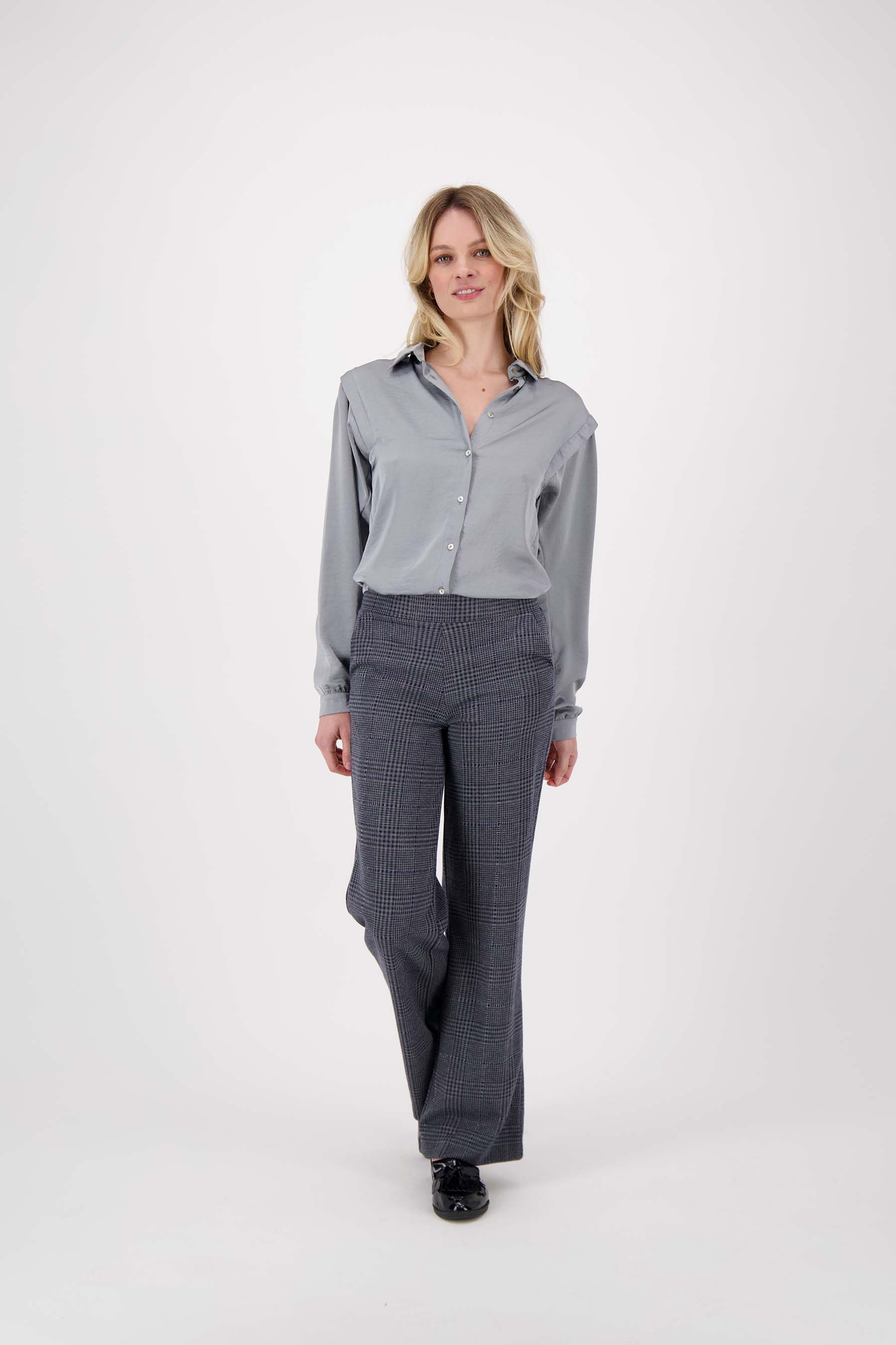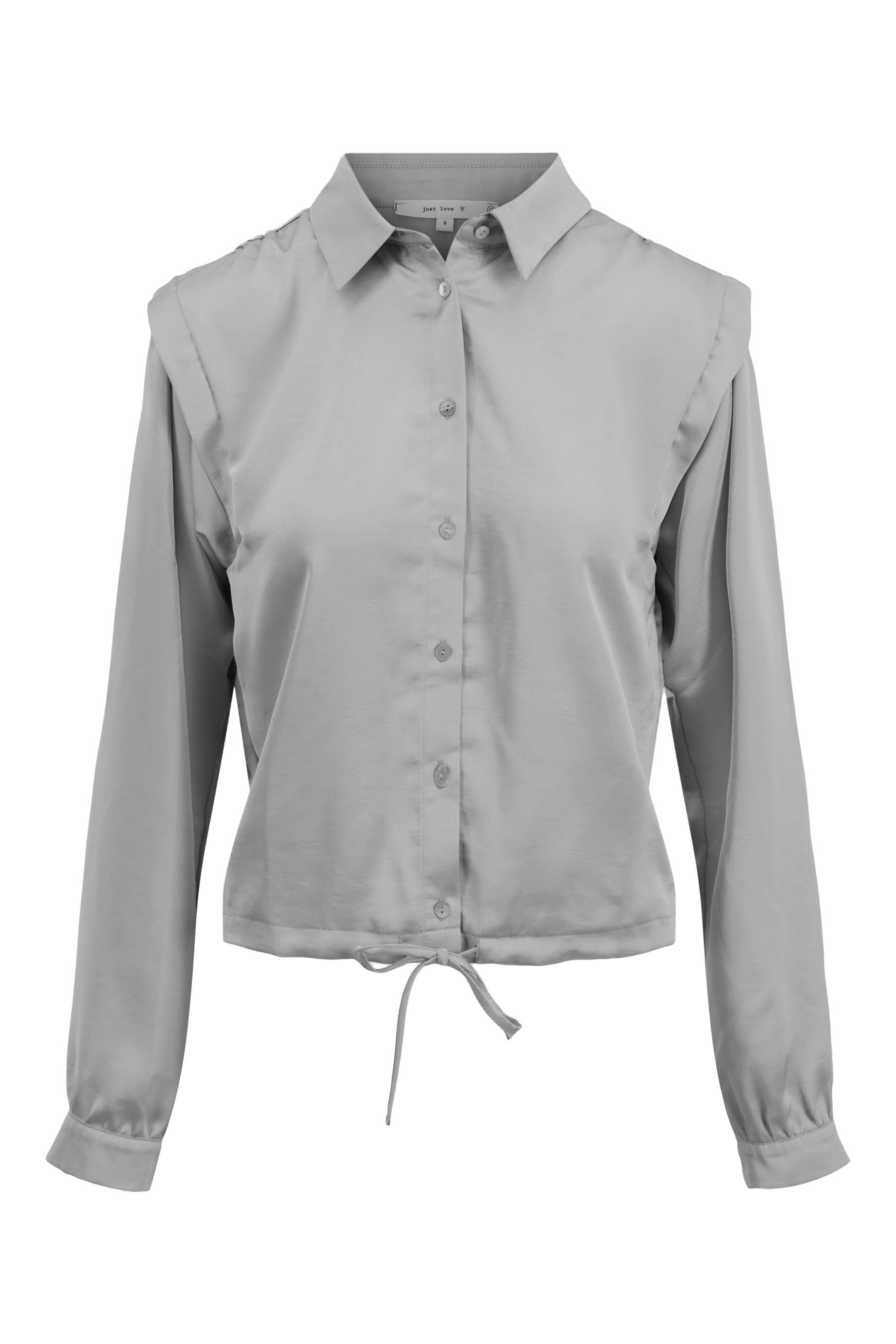 This Zusss satin blouse with shoulder detail is a stylish addition to your wardrobe. The soft shiny fabric and the anthracite gray provide a calm, sophisticated look. The button closure and bow detail at the bottom give the blouse a playful touch. The long sleeves with cuffs finish it off. A great item to combine with other basics from the collection for a timeless look.