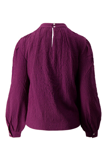 This seersucker blouse from Zusss is a soft and breezy addition to your wardrobe. The blouse in the color soft eggplant has a fine relief in the fabric, providing a playful texture and a comfortable fit. With subtle pleats at the neckline and buttons at the cuffs, this blouse exudes rusticity and femininity. The seersucker fabric makes this item suitable for both casual and slightly dressier occasions.