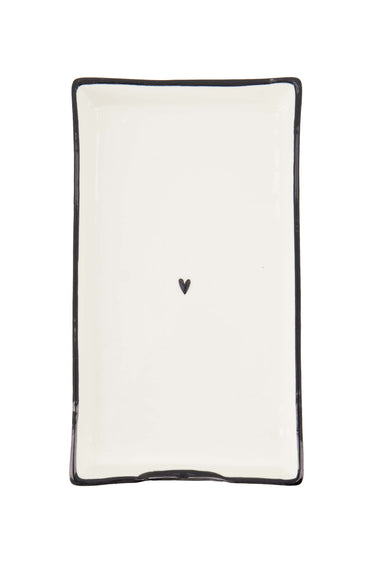 The Zusss ceramic napkin holder in white is an elegant addition to your tableware collection. This napkin holder is made of high-quality ceramic and has a sleek, rectangular shape with a refined black rim. The white surface with a small black heart in the center gives it a charming look. Measuring 19 cm by 11 cm, this napkin holder fits perfectly on any table. Combine it with our cute napkins.