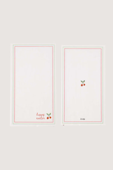 These Zusss napkins for Easter in off-white are perfect for adding a festive touch to your spring table. The napkins are made of paper, measure 25x38 cm, and feature a subtle green and gold border. At the bottom, you will find the sweet "happy Easter" text with a cheerful cherry, which creates a cheerful atmosphere during Easter breakfast. Combine these napkins with other accessories from our kitchen and home collectionfor a complete look. The Zusss napkins are ideal for a stylish Easter celebration.
