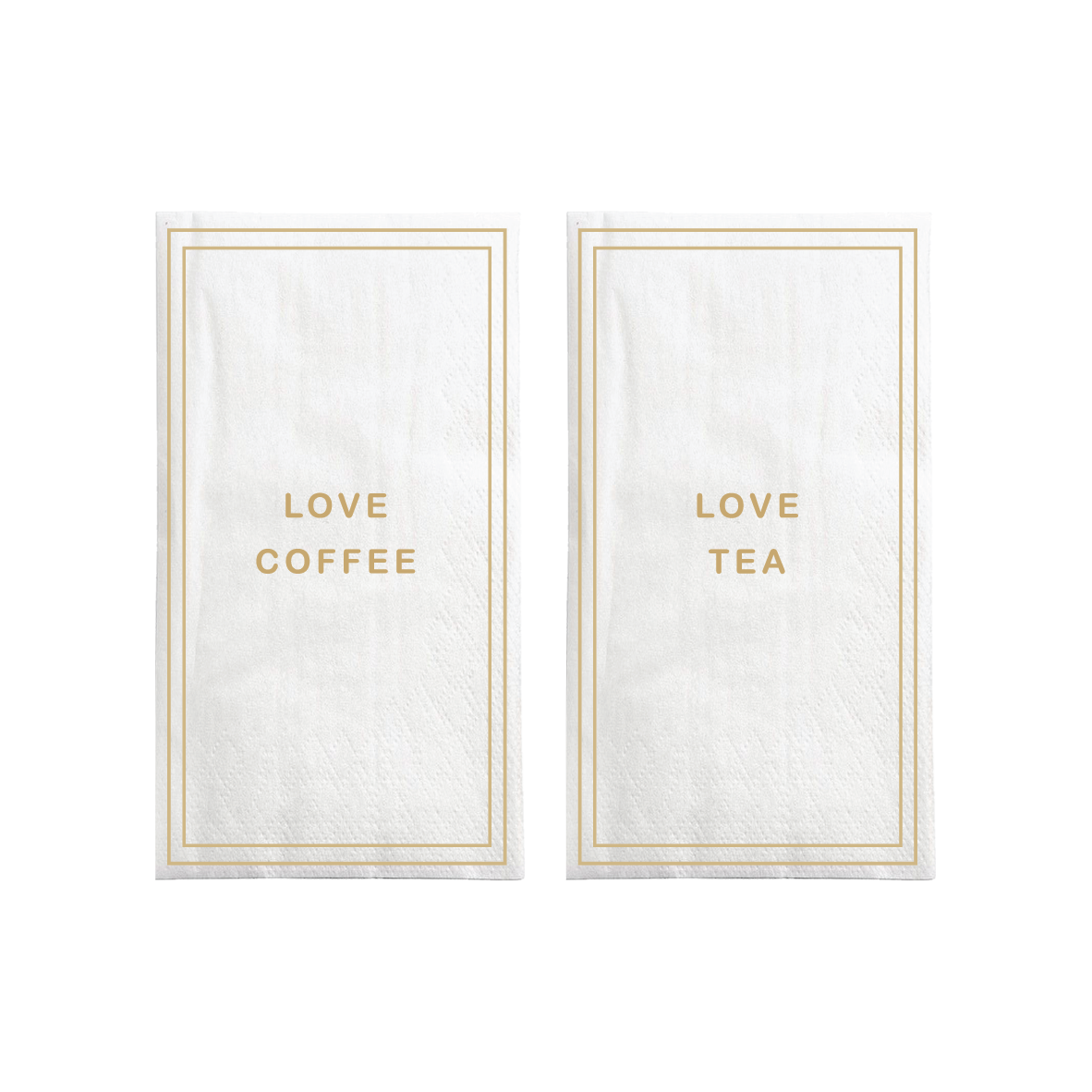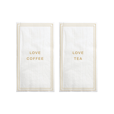 Deze Zusss servetten brengen sfeer aan elk coffee- en tea-moment. De servetten, gedrukt met de woorden love coffee en love tea, geven een warme uitstraling aan je tafel. Het subtiele goudkleurige randje zorgt voor een elegante touch, terwijl de frisse witte kleur voor sfeer zorgt zonder te overheersen. Ideaal voor kleine koffiepauzes of gezellige theemomenten met vrienden. Met deze Zusss servetten voeg je stijl en praktisch gemak toe aan je dagelijkse ritueel, zonder poespas maar met veel warmte en liefde voor het moment.