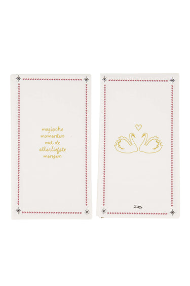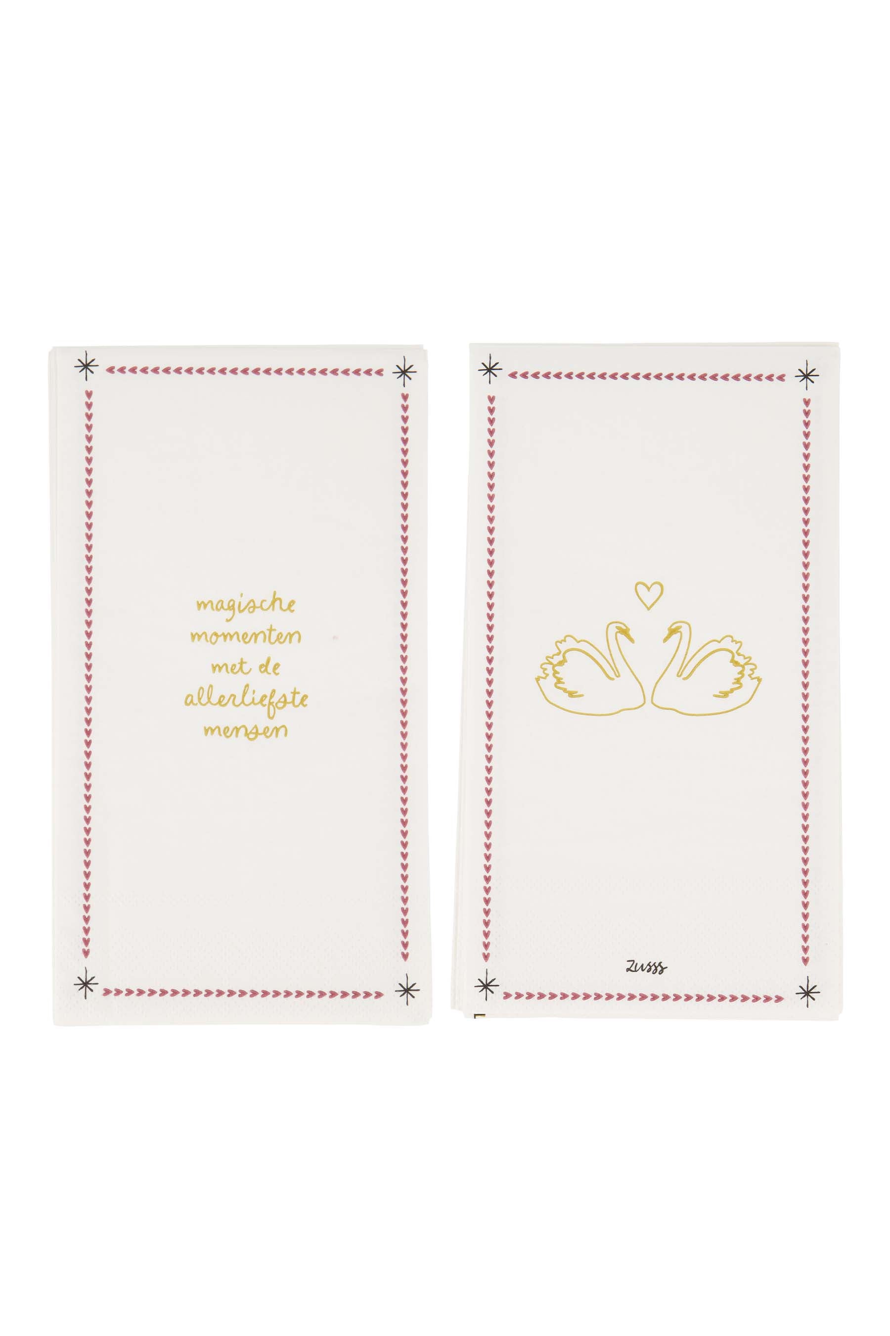 The Zusss napkins magic moments give you and your loved ones a special look at dinner. These napkins magic moments are tailored to cozy table moments, with a loving design in white with dark red. Their size is rectangular and they are perfect for giving the table that extra bit of warmth. Combine them easily with other sister accessories to complete your home style.