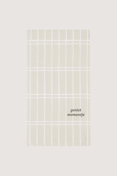 The Zusss sand-colored napkins with "enjoy the moment" make every moment special. These sand-colored napkins feature a stylish diamond pattern and the text "enjoy the moment" for an extra atmospheric touch. Made from high-quality sturdy paper, the sand-colored napkins are easy to use and add style to your table. They are rectangular in shape and practical for any occasion. Combine these Zusss sand-colored napkins with 'geniet momentje' with our otherkitchen textiles for a complete and cozy table setting.